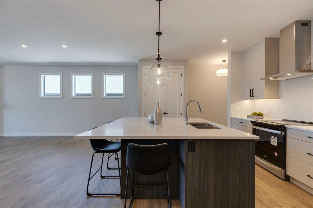 Welcome to THE IVY, nestled along the peaceful WEST NOSE CREEK. Surrounded by natural beauty yet close to everyday conveniences, The Grove offers immediate access to STONEY TRAIL and nearby shopping, dining, and services. Built by LUPI LUXURY HOMES, this villa showcases elevated design and thoughtful details throughout. The main floor spans 1,212 SQ. FT., featuring a well-planned open layout with a generous kitchen island with seating for four, a bright great room with a WOOD MANTLE, and a spacious dining area. The private primary suite includes a walk-in closet and a beautifully appointed ensuite with a DOUBLE VANITY and 10 MM GLASS SHOWER DOOR. Premium finishes are found throughout, including LUXURY VINYL PLANK FLOORING, QUARTZ COUNTERTOPS, SLEEK ZONAVITA CABINETRY, WHIRLPOOL STAINLESS STEEL APPLIANCES, DESIGNER LIGHTING, CUSTOM CLOSET SYSTEMS, TRIPLE-PANE WINDOWS, and a HIGH-EFFICIENCY FURNACE. The 1009 SQ. FT. WALK-OUT BASEMENT adds impressive versatility, with two spacious bedrooms, a full bathroom, and a flexible recreation area that opens to a COVERED PATIO. Set on a HIGHER-ELEVATION LOT with ENHANCED PRIVACY and a view of WEST NOSE CREEK, this residence offers both beauty and function. Please note: all RMS measurements are based on builder blueprints.