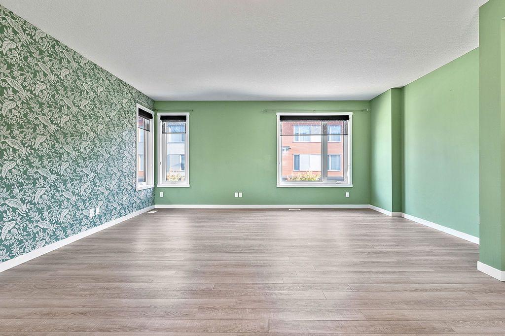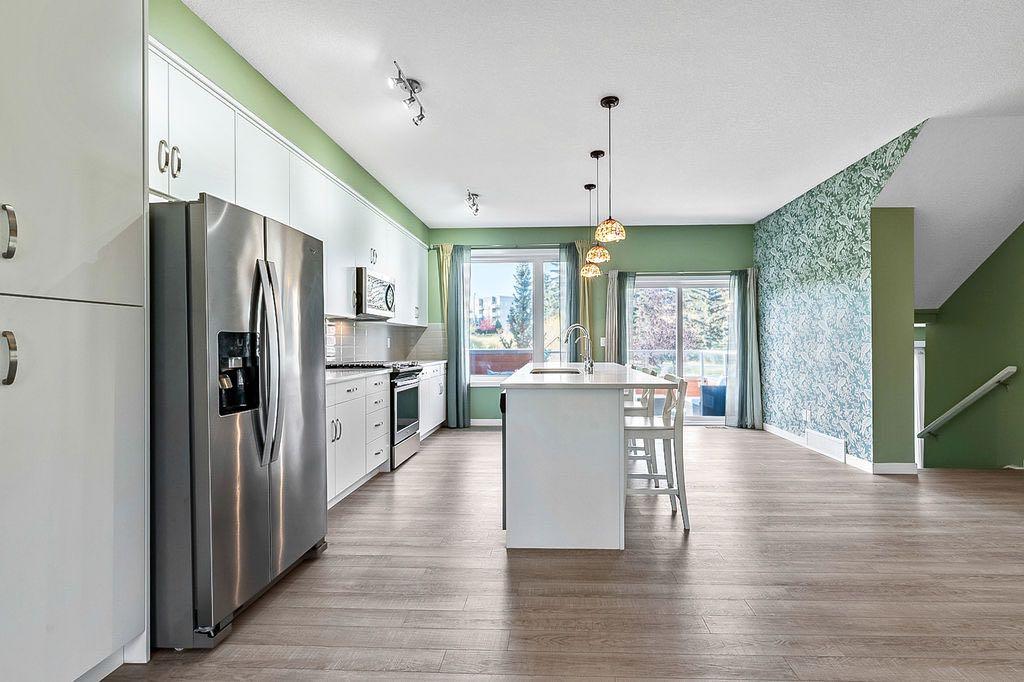Discover this stunning 2019 townhome in the desirable Fish Creek Shawnee Park neighbourhood. This two-story, End-unit residence features an open-concept design with luxury vinyl plank flooring throughout all levels, creating a sleek and modern feel. The bright and spacious layout is perfect for entertaining, with a convenient kitchen island, central dining space, and adjoining living area. Step outside to a large balcony offering terrific views of green space and a playground — ideal for outdoor gatherings.