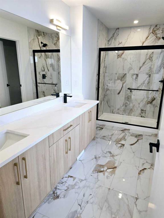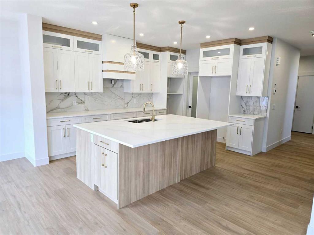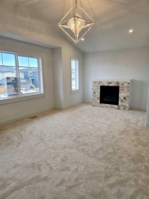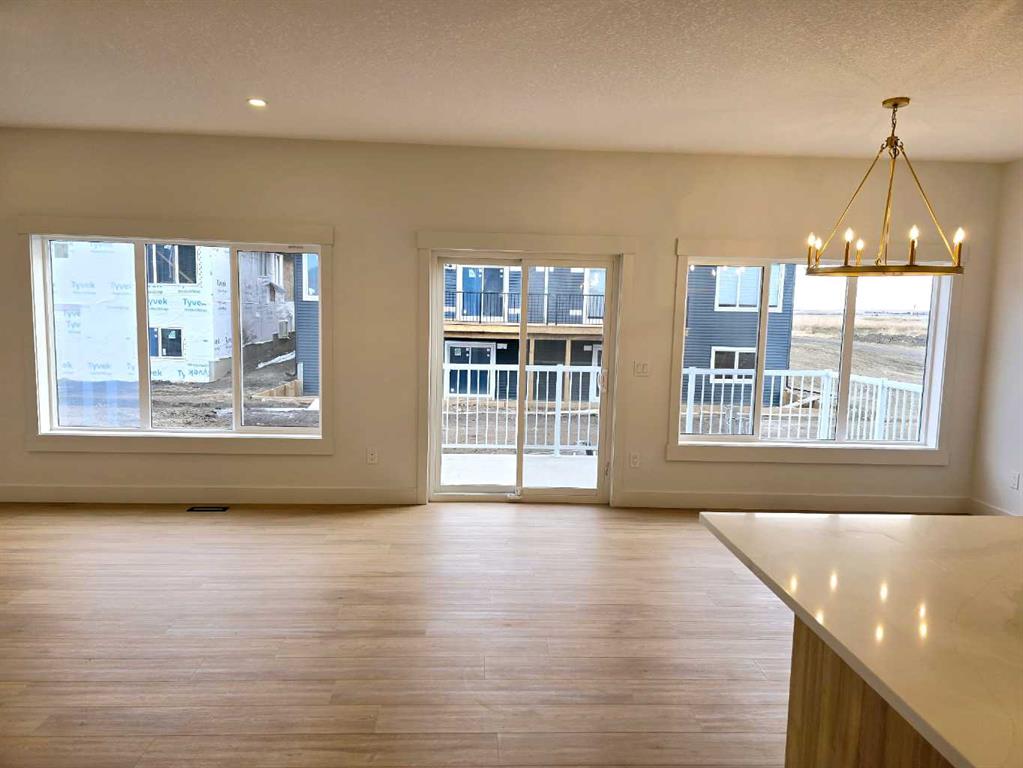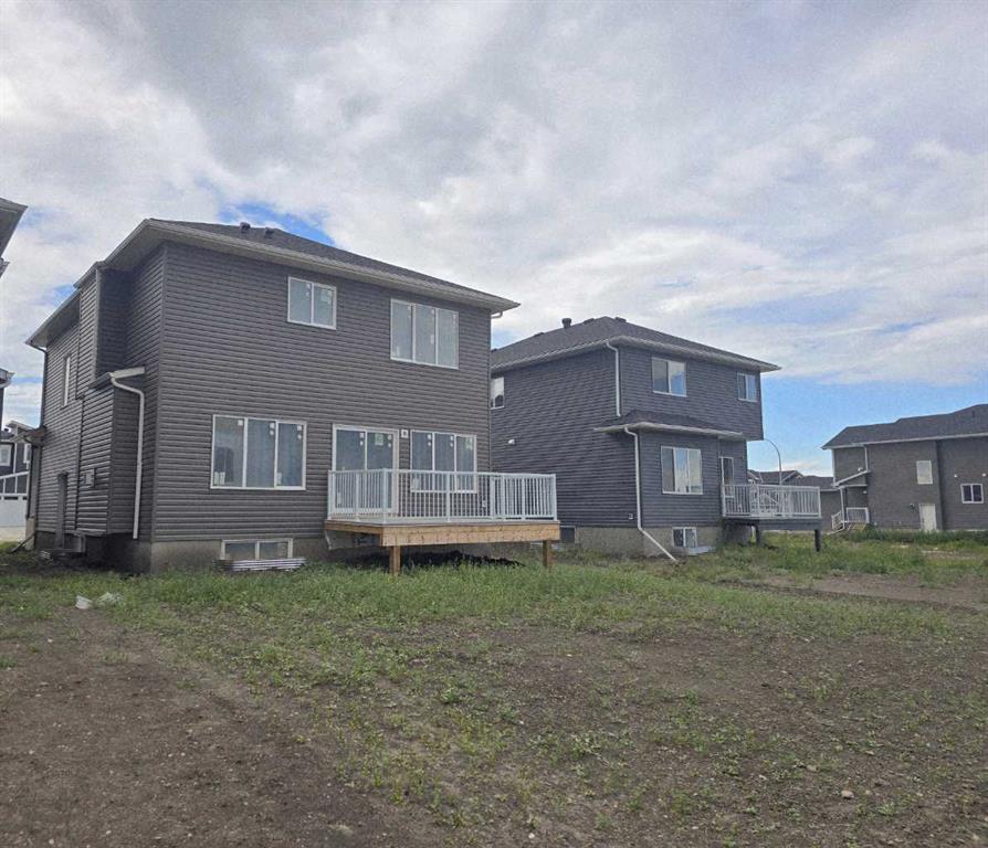 BRAND NEW, built in 2025, this stunning two-storey offers 2,413 sq.ft. of living space, a triple garage (28′ x 26’6″), and a spacious 135’ south-backing lot with 44’ frontage. Quick possession is available. The bright, open main floor features a dining nook, modern kitchen with island, walk-through pantry (wood shelving), and a spacious mud room with bench and shelves. The family room includes built-in shelving and a cozy fireplace, while a private work-from-home office, two-piece bath, and open cathedral entry complete the main level. Upstairs hosts three bedrooms, including a generous 15′ x 13’6″ primary suite with tray ceiling, large walk-in closet (wood shelving), and a luxurious 5-piece ensuite with double vanity. A vaulted bonus room with fireplace, laundry room, and 4-piece main bath provide extra convenience. The bright, side-access walk-up basement is undeveloped with high-efficiency mechanical, roughed-in bath plumbing, and large windows for natural light. Quality finishes include ceiling-height cabinets, quartz countertops, upgraded lighting, vinyl plank, tile and carpet flooring, wood shelving in closets, and exterior stonework. Added value includes GST (rebate to seller), new home warranty, a rear deck (8′ x 16′) with vinyl cover, front sod and tree, and a $5,000 appliance allowance. Located in the family-friendly Scarlett Ranch community, just steps from schools, parks, and a pond, with quick access to Airdrie, Calgary, CrossIron Mills, and Didsbury Hospital—a little drive, a lot of savings!