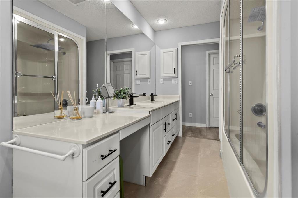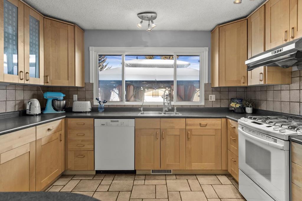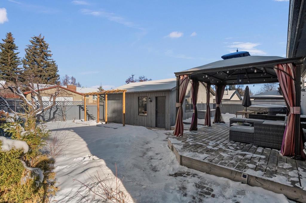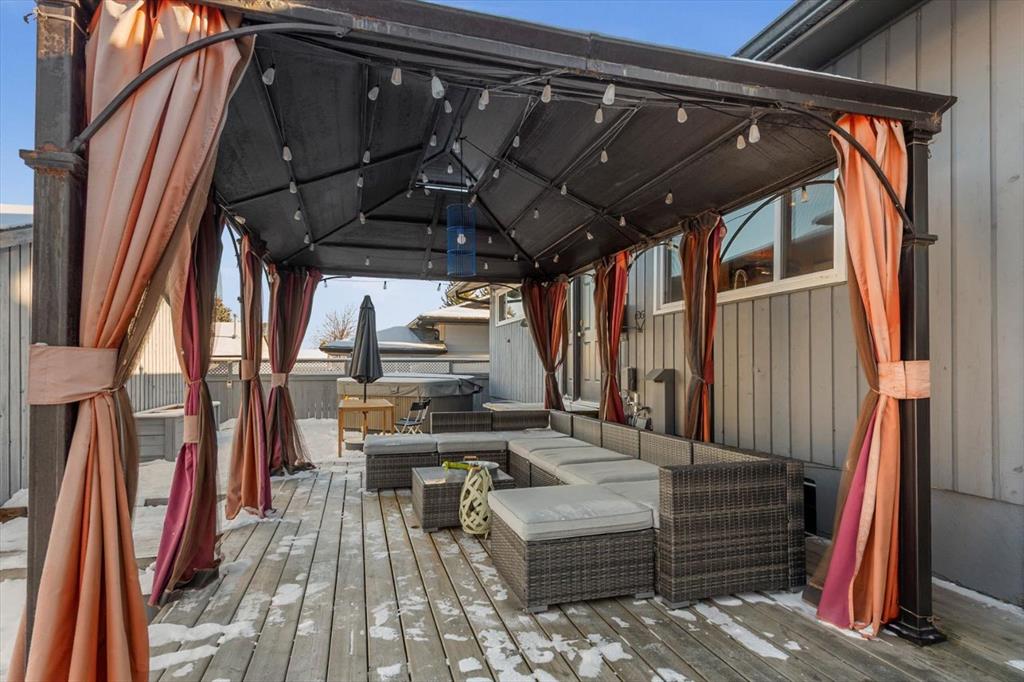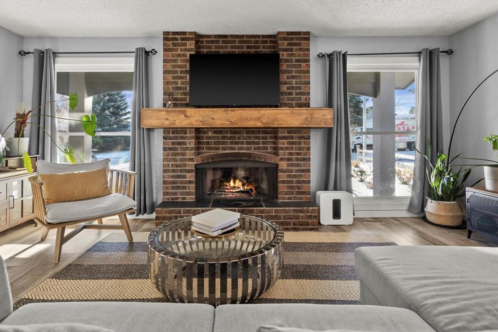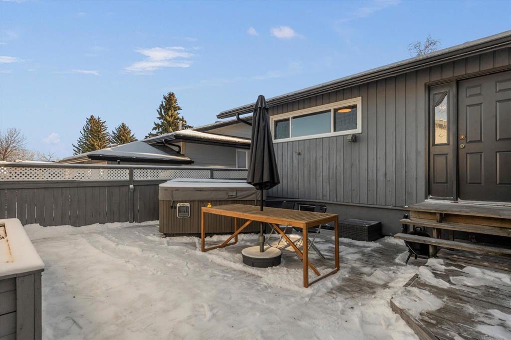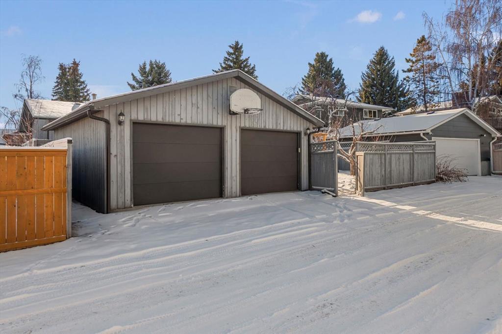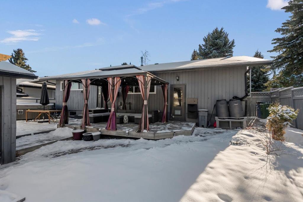 Are you looking to live close to Fish Creek Park? What about in a spacious bungalow with a mature yard complete with an oversized double detached garage, expansive deck and hot tub? Welcome home to one of the best streets in Parkland – ‘Pig Street’, where neighbours gather each year for a Pig Roast and community building activities. Entering the home, you’ll note the airy living room stretches out and is centered by a statement wood fireplace with gorgeous brick hearth and wood mantle. The attached dining room sits in front of a large picture window and has room for a large family dining table, and hutch or coffee bar. The kitchen sits at the rear of the home and overlooks the deck and yard. There is ample storage, an eat up island and a gas range. Down the hall, you’ll find the primary suite with a cheater ensuite. This washroom has storage a plenty, dual sinks and a makeup vanity. A unique feature is connecting to the deck area for direct access to the hot tub; they are hooks for your tub robes and never track wet through the house again! This wing is completed with two additional bedrooms. Headed towards lower level, the rear entrance leads out towards your double detached garage and into the yard. Downstairs, you will find a large rec room with space for a home gym area, gaming center or billiards, and a second living room with wood accents and brick fireplace with a gas insert. The basement also features updated laundry, a recently renovated 3-piece bathroom and a fourth bedroom. There is also a storage room/pantry space and an office/den, and updated flooring. Outside this yard has plenty of room for activities and is the ultimate summer hosting spot. Mature landscaping and an apple tree, plus a 2-tier deck surrounding the hot tub with a gazebo and room for all the BBQs you desire! This home has had numerous updates over the years and include main floor windows, the furnace and hot water tank, and shingles. The alley behind this home offers direct access to the walking trails of Fish Creek Park and stunning mountain views. Great for running, walking the dog and just enjoying the neighbourhood. Homes in Parkland are in short supply, book a private showing with your trusted agent before She Gon’!