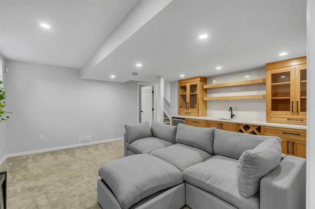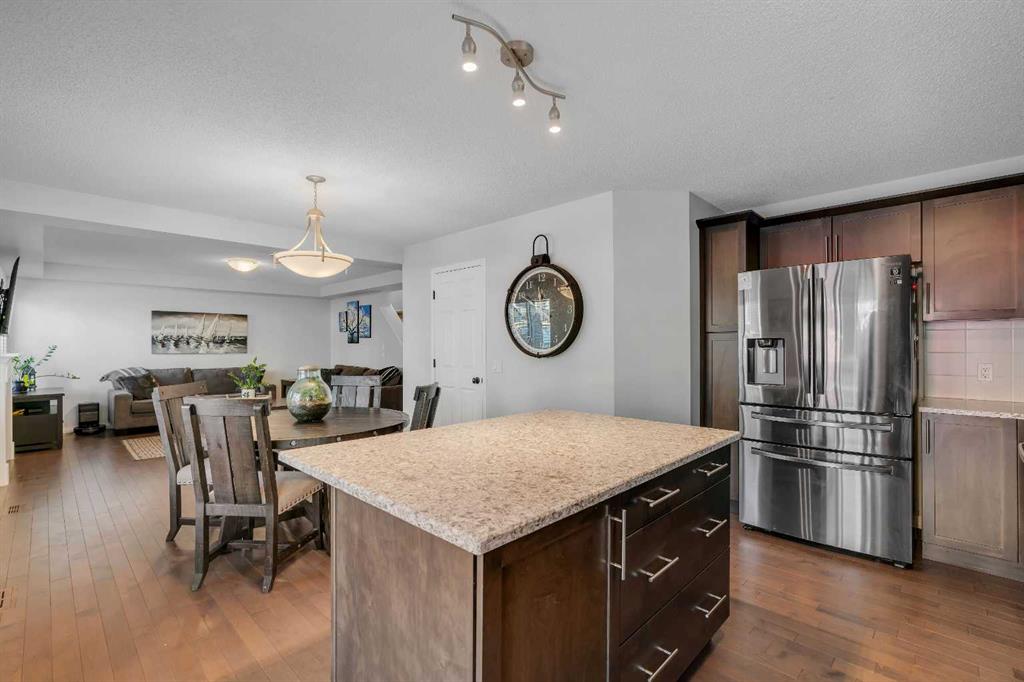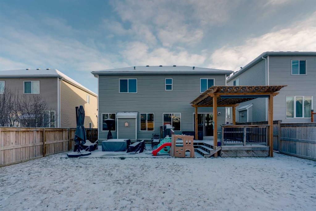 Welcome to 136 Viewpointe Terrace, a beautifully maintained family home located on a quiet front street in the desirable Lakepointe community of Chestermere. Offering over 2,500 sq. ft. of fully developed living space, this home combines comfort, functionality, and strong curb appeal. The pleasant front elevation and Gemstone exterior lighting set the tone as you arrive. Step inside to a main floor designed for easy living, featuring hard surface flooring throughout, a cozy gas fireplace, and large windows that flood the home with natural light. The kitchen is both stylish and practical, with full-height cabinetry, a pantry, an island with a breakfast bar, granite countertops, black appliances, and plenty of storage, flowing seamlessly into a bright and open dining area—perfect for family meals and entertaining. Upstairs, you’ll find a spacious bonus room offering flexible space for a playroom, media area, or home office. The primary bedroom is a true retreat with a walk-in closet, double-sink vanity, and a shower/bath. Two additional generously sized bedrooms, a full bathroom, and a convenient upper-floor laundry room with separate storage room complete this level. The fully finished basement adds even more living space, featuring a fourth bedroom, full bathroom, a dedicated workspace/den, and an inviting recreation room built for movie nights and hosting—complete with custom built-ins and a wet bar with beverage center. Outside, enjoy the huge backyard with a large deck and pergola, ideal for summer BBQs and relaxing evenings. Additional highlights include central air conditioning and a double attached garage. Lakepointe is a welcoming, family-focused community with walking and biking paths, playgrounds, and easy access to Chestermere Lake—just a short walk away. Whether it’s bike rides with the kids, summer days by the water, or quiet weekend strolls, this location offers a lifestyle you’ll love.