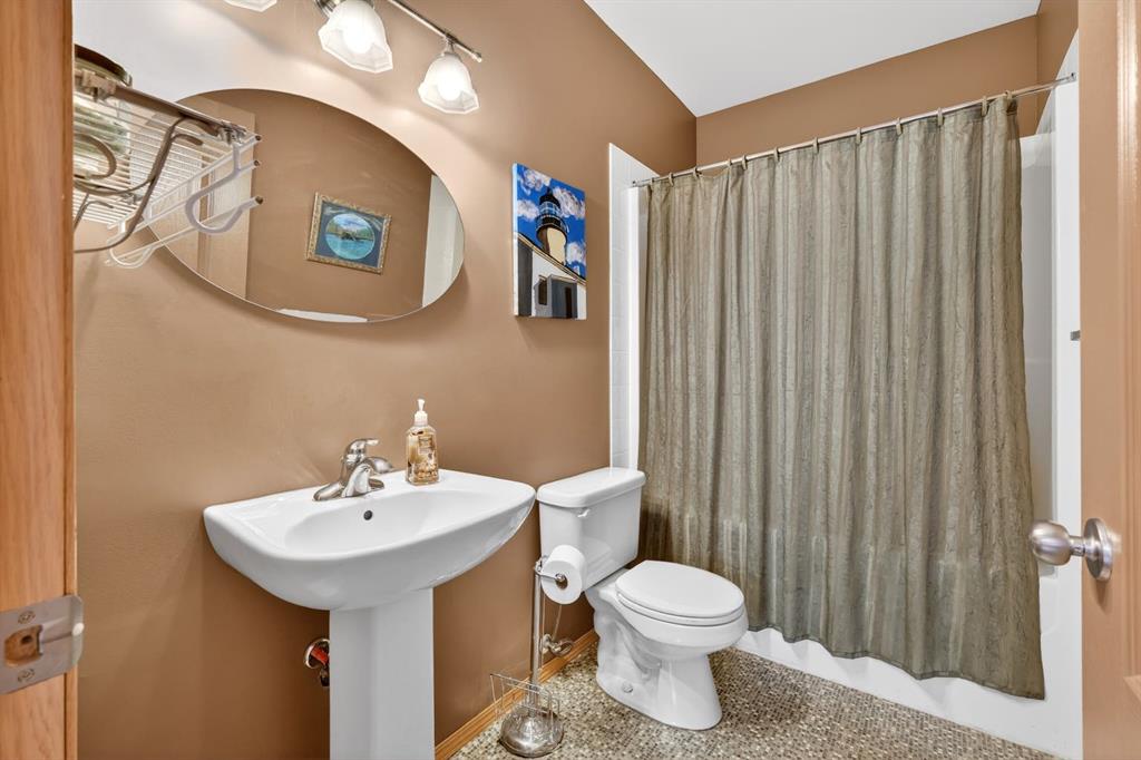 **OPEN HOUSE Sunday May 3rd 1:00pm – 4:00pm ** There are homes – and then there are places that quietly change how you feel the moment you arrive. Welcome to this beautifully maintained walkout bungalow in West Creek. Built in 2003 and set on a 5,297 sq ft lot, this west-facing home backs directly onto West Creek Pond – offering a rare blend of privacy, light, and natural beauty. Here, life slows down. Sunlight dances across the water, and the only sound you’ll notice is birdsong. Step inside and feel the openness immediately. A spacious foyer with vaulted ceilings leads into an airy, open-concept main floor finished with hardwood flooring throughout the primary living areas. The expansive living room window perfectly frames uninterrupted pond views – your backdrop, morning to night. A gas fireplace adds warmth, while the seamless flow between kitchen, dining, and living spaces makes everyday living and entertaining feel effortless. The kitchen is thoughtfully designed with ample cabinetry, generous counter space, and a walk-in pantry. Just off the living room, step onto your elevated balcony and take in the full pond view – an ideal setting for morning coffee or quiet evenings that seem to last a little longer. The main floor also features a private office with a west-facing window, a functional laundry room with added storage, and a spacious primary retreat complete with a walk-in closet and a 5-piece ensuite. A convenient half bath completes the level. Downstairs, the fully developed walkout basement offers a private entrance and additional living space, including two bedrooms, a full bathroom, and a large recreation area. Comfort is elevated year-round with in-floor hot water heating throughout the entire lower level – creating a warm, consistent atmosphere you’ll feel the moment you step downstairs. A dedicated utility room provides extra storage along with a workshop setup and built-in shelving. Outside, the backyard is designed for low maintenance with decorative stone landscaping – so your time is spent enjoying, not maintaining. An attached double car garage adds everyday practicality. Situated on a quiet street and just minutes from nearby shopping and amenities, this home offers the perfect balance of retreat and accessibility. For the buyer who’s no longer chasing noise – but choosing calm. Who values light, space, and stillness. Because sometimes, the true luxury isn’t what you add… it’s what you no longer need. A retreat, without leaving home.
