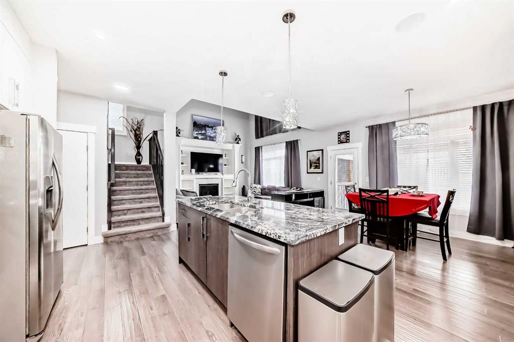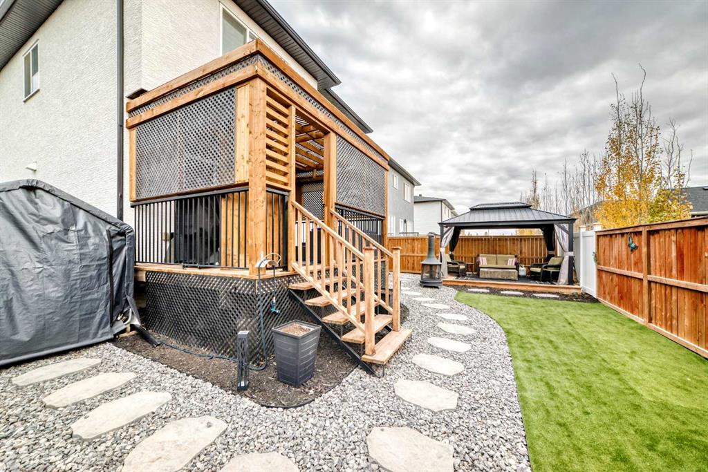 APPLIANCES and a MASSIVE ISLAND with BUILT IN GARBURATOR, perfect for casual meals or entertaining. Enjoy cozy winter evenings by the GAS FIREPLACE in the spacious living room, complete with a STUNNING TV SURROUND with tile and contemporary shelving. It comes with with built-in kitchen and primary bedroom CEILING SPEAKERS roughed in for your future hidden sound system. FRENCH DOORS lead to a versatile main floor office/extra bedroom, offering flexibility for your lifestyle. Upstairs, the OVERSIZED PRIMARY SUITE boasts a SPA LIKE 5-piece ensuite, also with GRANITE COUNTERS, a JETTED TUB, and a TILED SHOWER. Two additional bedrooms, a full bathroom, and a wonderful BONUS ROOM for your extra large screen tv to provide a special space for family living. Step outside into your MAINTAINENCE FREE back yard retreat, featuring a STUCCO EXTERIOR, PERGOLA COVERED DECK, a separate METAL GAZEBO and a cozy CORNER SWING, for those summer parties. All this, surrounded by ARTIFICIAL GRASS and decorative paving stones for easy upkeep. There’s ample storage space including a DOG RUN along the extra large side yard, with a SEPERATE BASEMENT ENTRANCE, offering the possible development of a secondary suite (upon town of Carstairs approval and permitting) for future income. Car enthusiasts will be thrilled with the TRIPLE CAR, HEATED GARAGE, a true stunner with room for vehicles, tools, and or exercise equipment. A five minute walk to schools, parks, medical offices and the library, included in Carstairs’ many amenities. THIS HOME HAS IT ALL, with Calgary just 30 minutes away, you’ll enjoy the perfect balance of small-town charm and city convenience. Remainder of builder warranty included. SCHEDULE YOUR SHOWING TODAY.