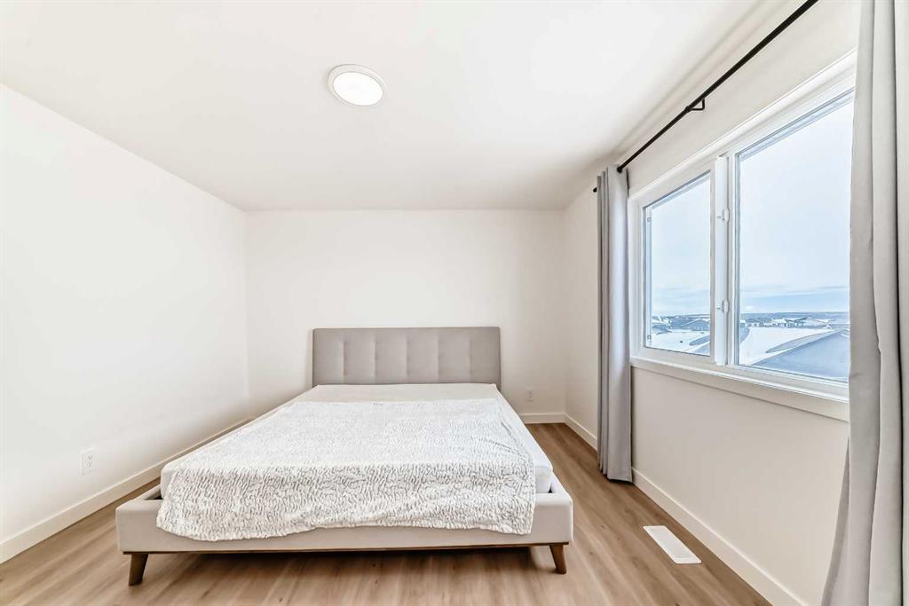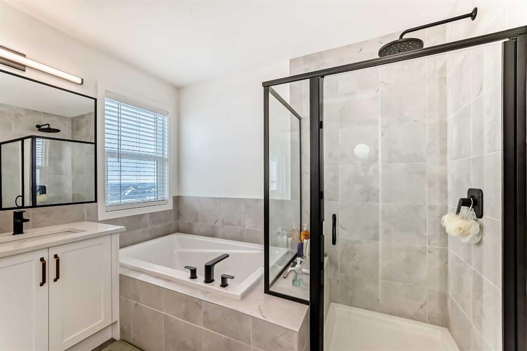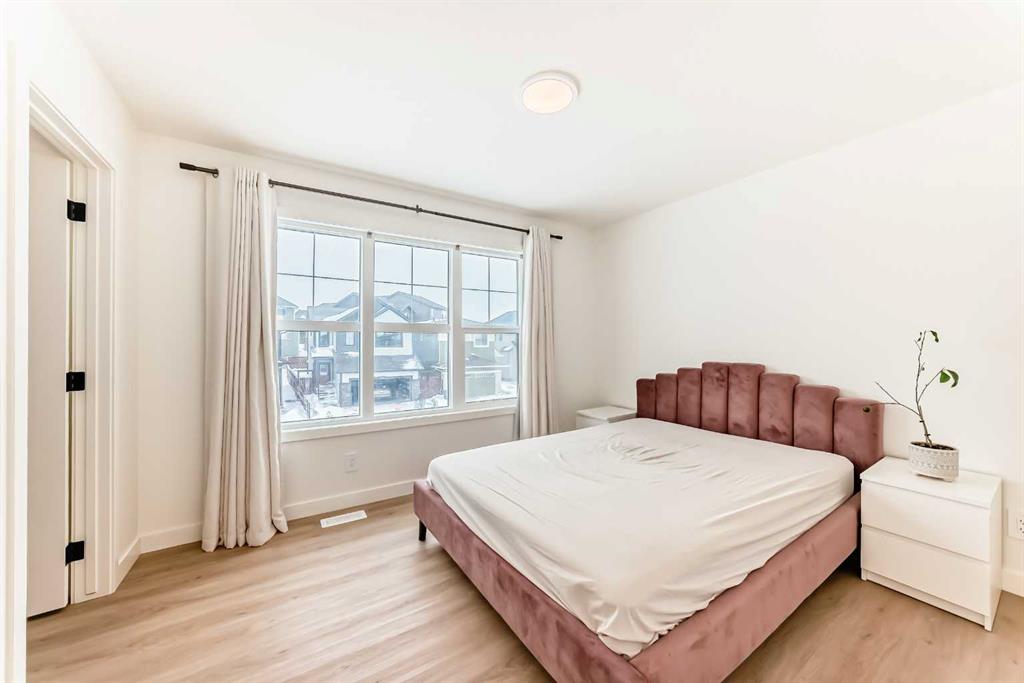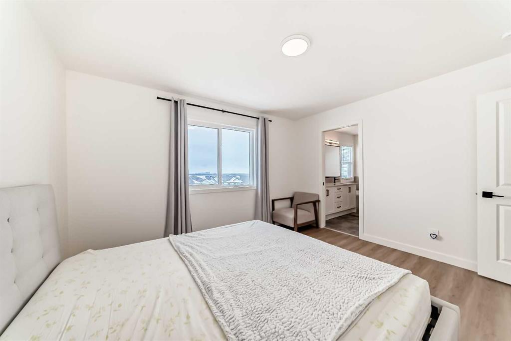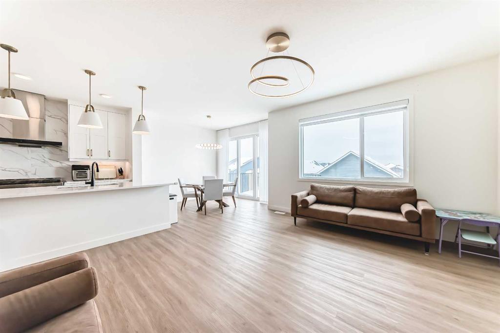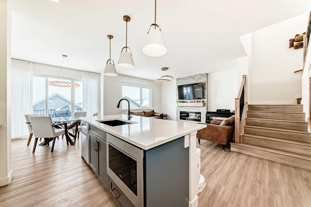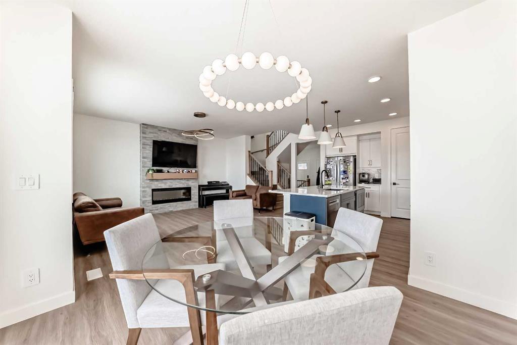 Welcome to this beautifully upgraded walkout home in the highly desirable, family-friendly community of Vermilion Hill in Alpine Park. Offering over 2,100 sq.ft. of thoughtfully designed living space, this home features over $150,000 in upgrades and showcases quality finishes throughout, including full flooring upgrades, upgraded lighting, and full-height lacquered kitchen cabinetry with adjustable LED cabinet lighting. The bright and spacious main level is filled with natural light and features a cozy fireplace, a stunning quartz island with sink and gold accents, high-end stainless steel appliances, a 36″ KitchenAid cooktop with 23,000 BTU, a 36″ 1300 CFM hood fan, Bosch 800 Series dishwasher, and a 3-piece bathroom. The dining and living area opens to a large rear deck, perfect for entertaining or relaxing outdoors. Upstairs, including the generous bonus room, convenient laundry, two additional good-sized bedrooms, a full 5-piece bathroom, and a spacious primary retreat with a luxurious 5-piece ensuite, and beautiful views of downtown and the Rocky Mountains. The 9-ft walkout basement offers excellent future potential. Additional features include a whole-home water softener and fully completed landscaping with concrete walkway and patio. Conveniently located close to schools, shopping, transit, and amenities, this exceptional home is one you do not want to miss.