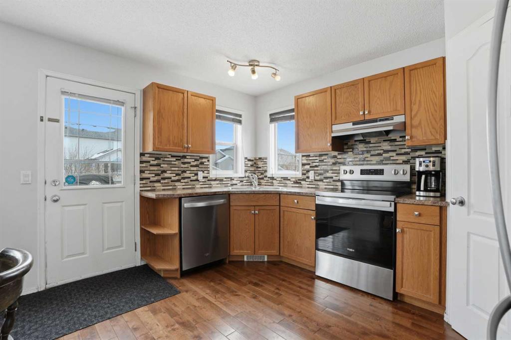 Quiet Cul-de-Sac | Incredible Location | RV Parking | Rear Lane | 1,322 SqFt | 4 Bedrooms | 2.5 Bathrooms | Great Living Space | Bright with Natural Light | Open Floor Plan Kitchen & Dining | Stainless Steel Appliances | Corner Pantry | Main Level Laundry | 3 Upper Level Bedrooms | Finished Basement with Bedroom, 3pc Bath & Room | Ample Storage | Spacious Fully Fenced Backyard | Deck. Welcome to this beautifully maintained, fully finished family home located on a quiet cul-de-sac in desirable Creekside. The bright and inviting main floor features fresh paint and hardwood flooring throughout, with a spacious south-facing living room that fills the home with natural light. The kitchen and dining area overlook the backyard and provide direct access to a large deck—perfect for summer BBQs and entertaining. The kitchen is outfitted with stainless steel appliances, a dual basin sink, laminate countertops and ample cabinet storage. The corner pantry is a great bonus to your dry goods storage. A convenient main-floor laundry in the 2pc powder room completes the level. Upstairs you’ll find three generously sized bedrooms. The primary bedroom is paired with a walk-in closet. The upper level bedrooms share the 4pc bath with a tub/shower combo. The fully finished basement offers a fourth bedroom and additional bathroom—ideal for guests, teens, or extended family. Outside, enjoy a large yard with rear lane access and plenty of space for outdoor living. Located close to parks, schools, shopping, and amenities, this move-in-ready home is perfect for families looking for space, comfort, and convenience. Hurry and book your showing at this gorgeous family home today!