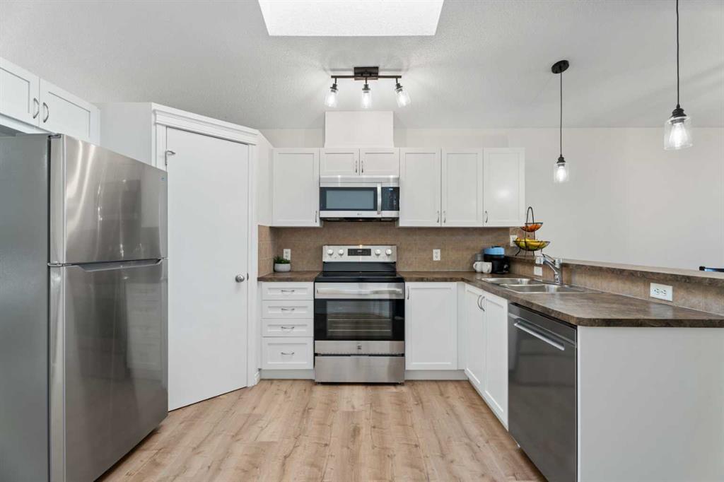 Lake Living Awaits in Auburn Bay! Fall in love with this bright and stylish lake-access bungalow featuring vaulted ceilings, large windows, and a fresh, modern feel. Recently updated with new flooring (Oct 2025), new kitchen appliances (fridge, stove, microwave hood fan – Oct 2025), and freshly painted, inviting, and ready to enjoy. The open concept layout is perfect for entertaining with seamless flow between the kitchen, dining, and living area, ideal for gathering with friends and family. You’ve got two bedrooms on the main level or use one as an office if you work from home. Downstairs you will find a finished basement offering offers a spacious family room with a wet bar, two additional bedrooms, a storage room, laundry/furnace room – new hot water tank and a 4-piece bathroom. The fenced backyard offers a spacious deck for gatherings or relaxing in the sun, plus plenty of room to build your dream garage. Enjoy Auburn Bay’s four season lake lifestyle: swim, paddleboard in the summer, skate and join community events in winter. Close to the South Health Campus, movie theatre, shops, top restaurants, and the off leash dog park. This is the one you’ve been waiting for—fresh, move-in ready, and full of charm. Welcome home to Auburn Bay!