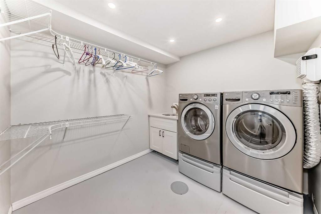 The lower level offers newer carpet, a large developed rec room with a 3-piece bathroom, a generous furnace and storage room, and a spacious laundry room complete with a sink, cabinetry, convenient hanging racks, and additional storage under the stairs.