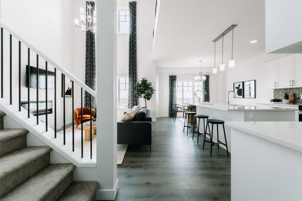 Your new home awaits in one of Cochrane’s most sought-after communities, Heartland! With its tree-lined streets, mountain views, parks, pathways, and naturalized amenities, this neighbourhood truly has it all. The Fulton by Akash Homes offers over 2,200 sq. ft. of stylish, functional living with 9-ft ceilings, quartz countertops, and modern fixtures throughout. This contemporary two-storey features an open-concept main floor with a den for added versatility and an open-to-below concept that fills the home with light and architectural flair. Enjoy a convenient upstairs laundry and threespacious bedrooms, including a primary suite with a 5-piece ensuite and walk-in closet. The double attached garage adds convenience, while the SEPARATE SIDE ENTRANCE offers flexibility for future development. Plus, receive a $5,000 BRICK CREDIT to personalize your space. **PLEASE NOTE** PICTURES ARE OF SHOW HOME; ACTUAL HOME, PLANS, FIXTURES, AND FINISHES MAY VARY AND ARE SUBJECT TOAVAILABILITY/CHANGES. HOME IS COMPLETE.