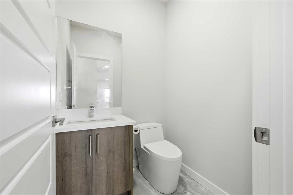 This beautifully designed home features a modern open-concept main floor with a spacious living area, a double door entrance to main-floor office/or den, that flows seamlessly into a well-appointed kitchen and dining space, perfect for everyday living and entertaining. A functional foyer and convenient two-piece bathroom complete the main level. The upgrade list includes: fire place in living room, gas stove, chimney hood, cabinets to ceiling height, gas line garage, plumbing rough ins in garage, iron railing, big windows.