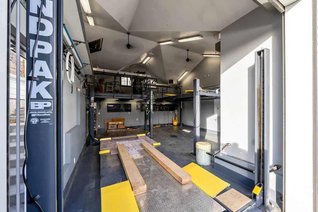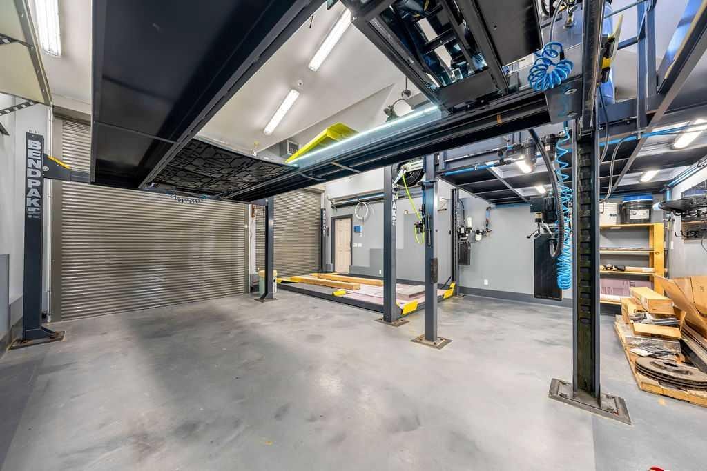 THE OVERSIZED MECHANIC’S DREAM GARAGE IS TRULY ONE-OF-A-KIND! featuring a mezzanine and massive 9’x10′ oversized doors large enough to accommodate an RV plus a fully outfitted workspace complete with compressed air lines, fixed machinery & equipment, a 9000 LB 4-POST LIFT, 14,000 LB 4-POST LIFT, and an 80-GALLON AIR COMPRESSOR. With the installed lifts, UP TO 4 VEHICLES CAN BE PARKED INSIDE, an exceptional opportunity for mechanics, collectors, hobbyists, or anyone needing serious functional space.