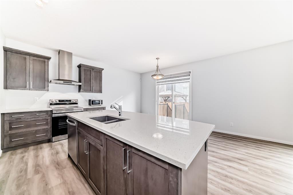 Best priced home in the area with double attached garage!! Priced to sell! Welcome to your new home in the vibrant and sought-after community of Carrington! This exquisite two-storey residence showcases modern, sleek finishes that cater to today’s discerning buyer. The living area is perfect for family gatherings or entertaining guests, while large windows fill the space with natural light. The heart of the home is the gourmet kitchen, equipped with top-of-the-line built-in appliances, stunning quartz countertops, and full-height cabinets. Adjacent to the kitchen, the dining area provides ample space for family dinners and special occasions. Upstairs, you’ll find three generously sized bedrooms, each designed with comfort in mind. The master suite is a serene retreat, complete with a luxurious ensuite bathroom featuring elegant finishes and fixtures. The additional bedrooms are perfect for family members or guests and are serviced by a well-appointed second bathroom. The bonus room offers versatile space that can be used as a home office, playroom, or entertainment area, giving you endless possibilities to tailor the home to your lifestyle. This property also boasts numerous upgrades, including stylish tile in the bathrooms and modern knock-down ceilings throughout. A separate side entrance leads you to a spacious unfinished basement, ready for your creative ideas. With rough-in plumbing for a future bathroom, this space is primed for customization, whether you envision an additional living area, or more bedrooms. As an added benefit, this home comes with a builder warranty and a new home warranty, providing you with peace of mind for years to come. Conveniently located near a shopping plaza and with easy access to Stoney Trail, this property offers the perfect blend of luxury and practicality. Don’t miss your opportunity to own this remarkable home in Carrington! Call your favourite realtor today to schedule your private viewing before it’s gone!