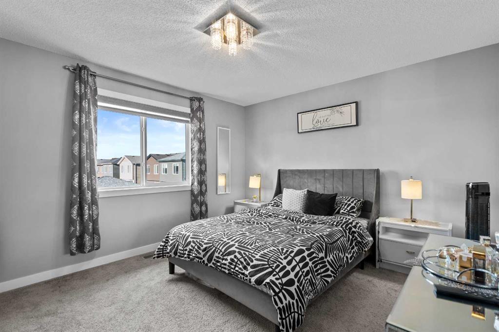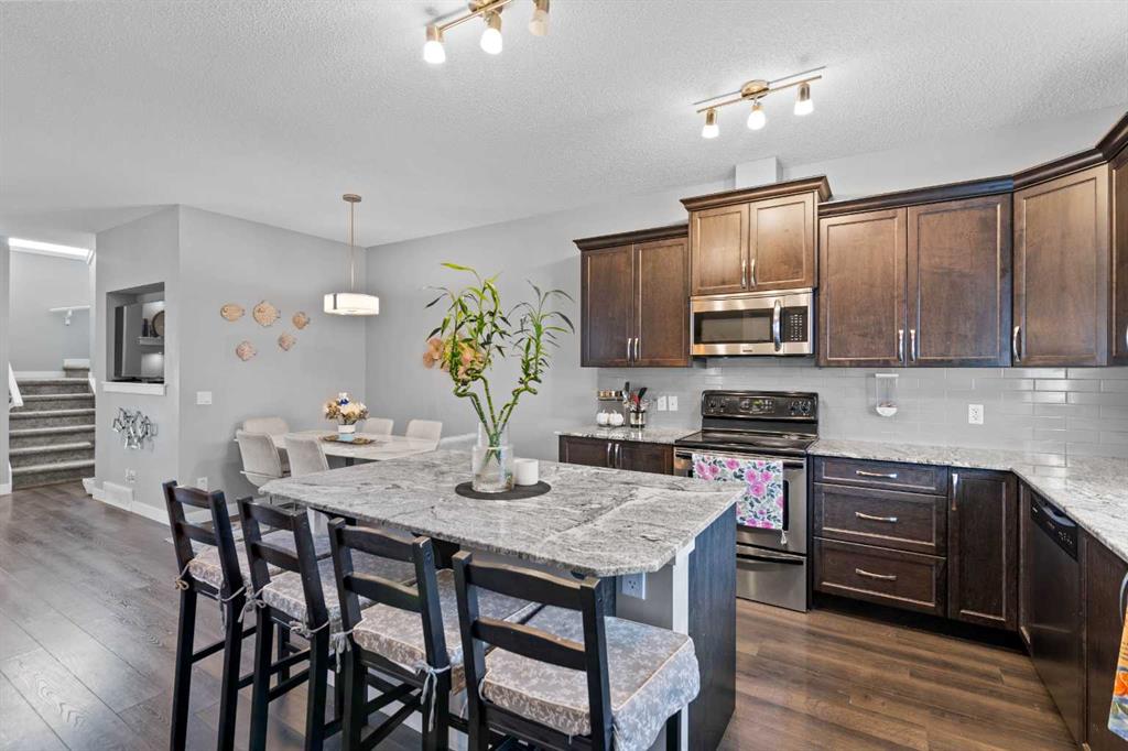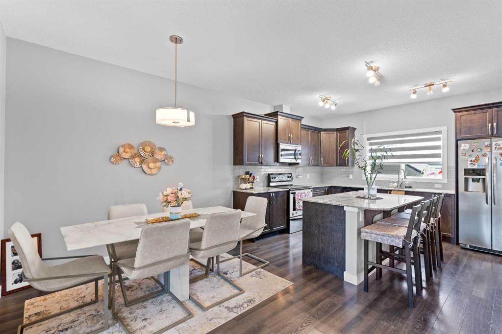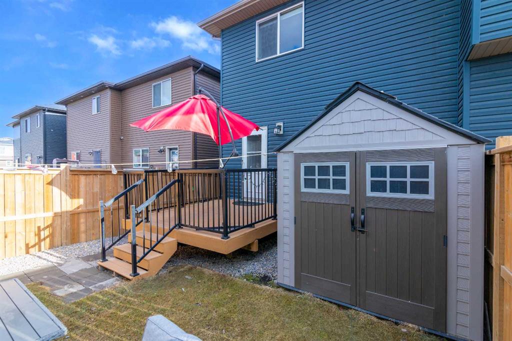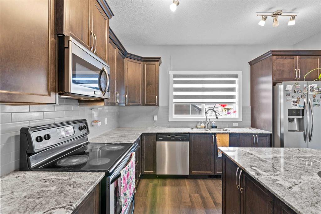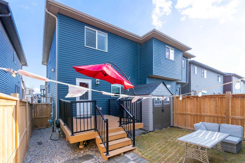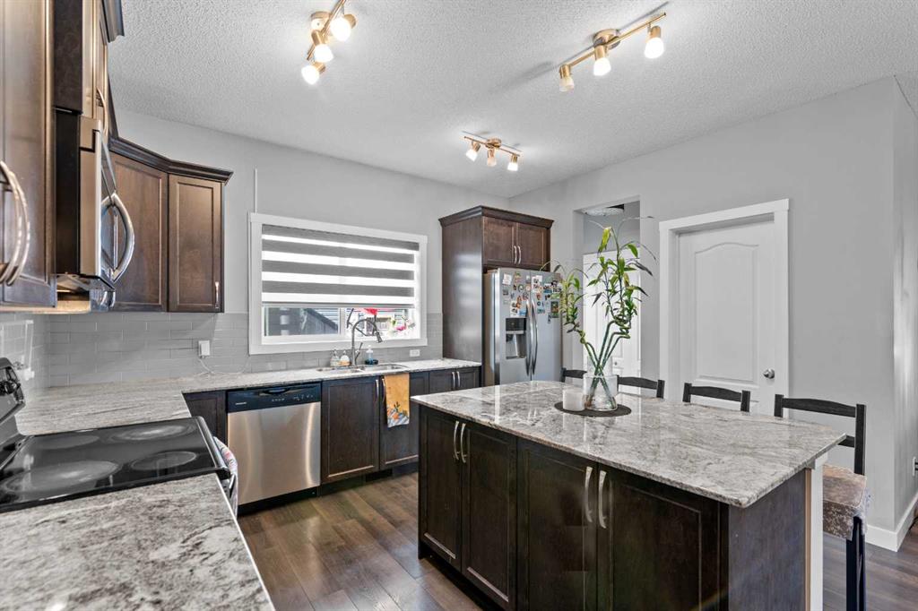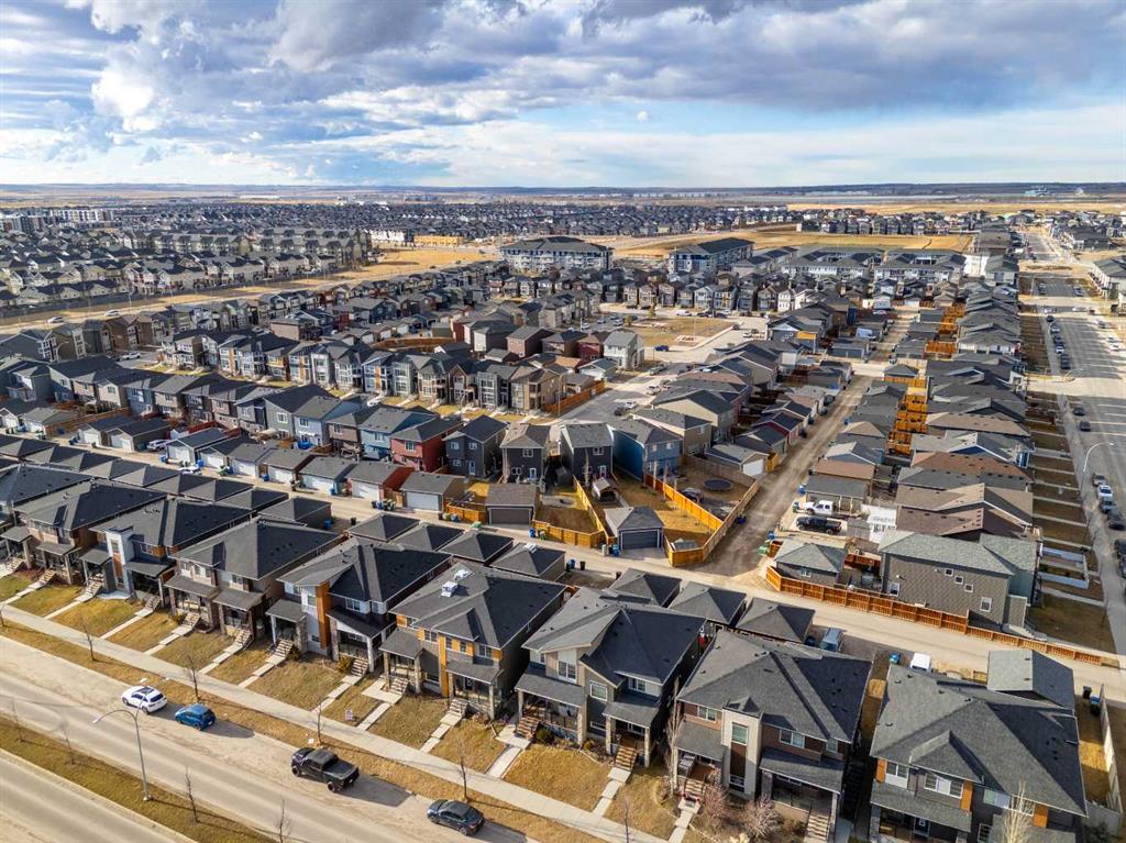 Welcome to your new home! This beautifully maintained property offers the perfect blend of comfort, style, and convenience. Featuring a bright and open floor plan, modern finishes, and ample natural light throughout, every detail has been thoughtfully designed This fully loaded home features a developed basement, double detached garage, fenced & landscaped yard, shed, 2 laundry areas, 4 bedrooms, 3.5 baths, central A/C, and many upgrades. Enjoy a charming verandah, rear deck, newer roof, storm doors, phantom screen, and mostly new appliances. Over 2,000 sq. ft. of total living space with a bright tiled foyer, luxury vinyl plank floors, spacious dining area, and chef’s kitchen with granite counters, tall maple cabinets, walk-in pantry, and 4-seat island. Upstairs offers 3 large bedrooms, 2 full baths (granite vanities), and upper laundry with new washer/dryer. The finished basement includes a rec room, 4th bedroom, full bath, second laundry, and plenty of storage. Located in vibrant Cornerstone with quick access to Stoney Trail, schools, shopping, parks, airport & more. Built by award-winning Shane Homes – move-in ready!