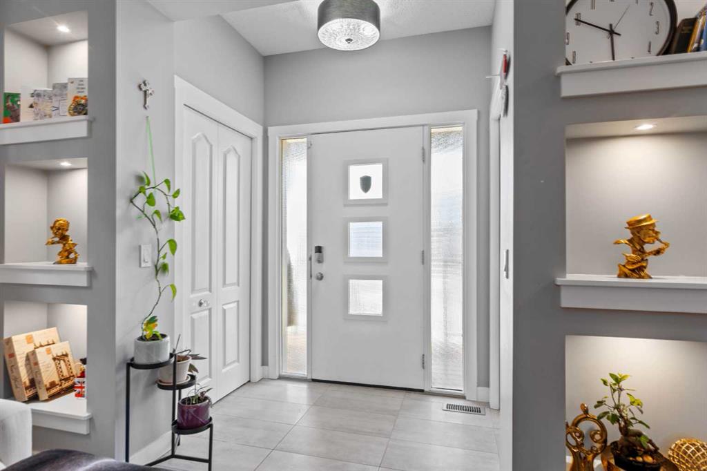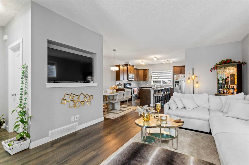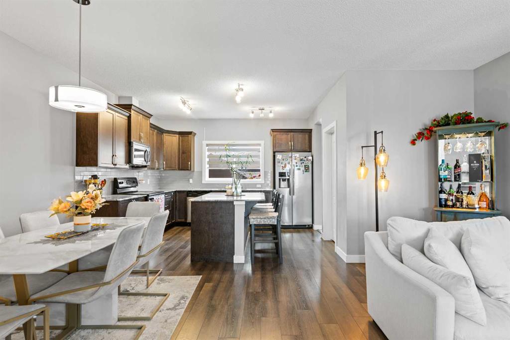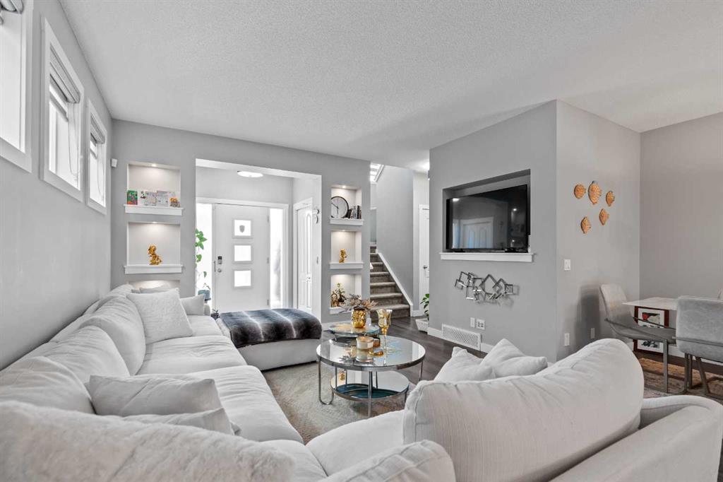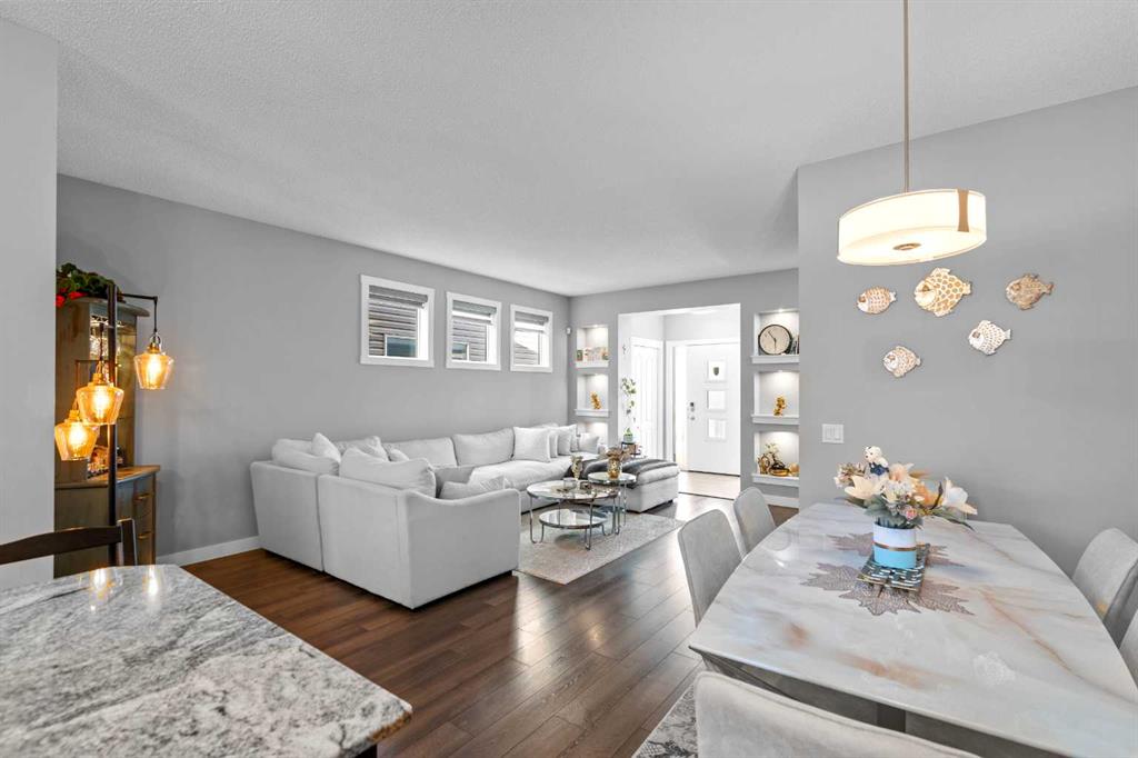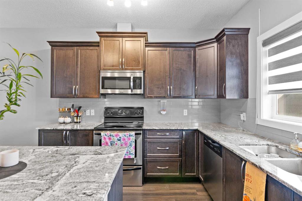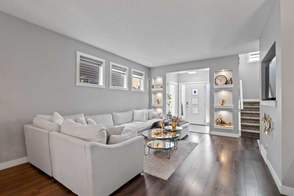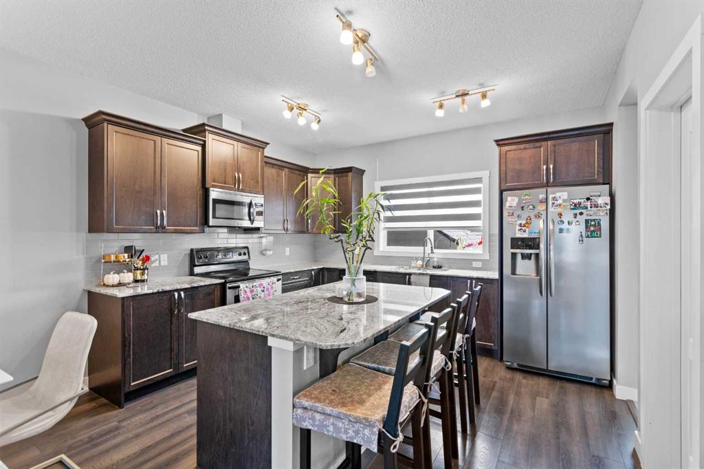 Welcome to your new home! This beautifully maintained property offers the perfect blend of comfort, style, and convenience. Featuring a bright and open floor plan, modern finishes, and ample natural light throughout, every detail has been thoughtfully designed This fully loaded home features a developed basement, double detached garage, fenced & landscaped yard, shed, 2 laundry areas, 4 bedrooms, 3.5 baths, central A/C, and many upgrades. Enjoy a charming verandah, rear deck, newer roof, storm doors, phantom screen, and mostly new appliances. Over 2,000 sq. ft. of total living space with a bright tiled foyer, luxury vinyl plank floors, spacious dining area, and chef’s kitchen with granite counters, tall maple cabinets, walk-in pantry, and 4-seat island. Upstairs offers 3 large bedrooms, 2 full baths (granite vanities), and upper laundry with new washer/dryer. The finished basement includes a rec room, 4th bedroom, full bath, second laundry, and plenty of storage. Located in vibrant Cornerstone with quick access to Stoney Trail, schools, shopping, parks, airport & more. Built by award-winning Shane Homes – move-in ready!