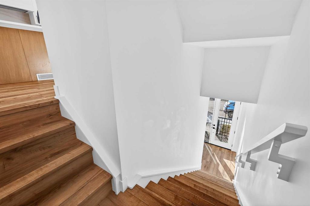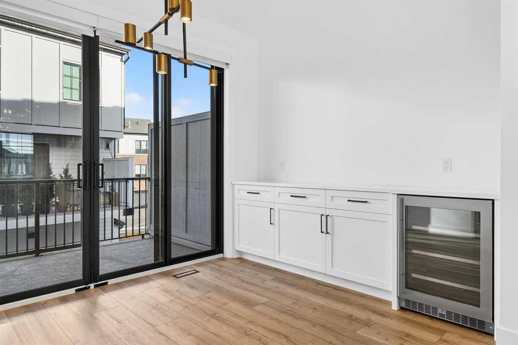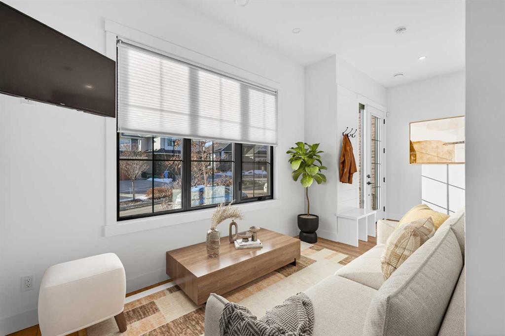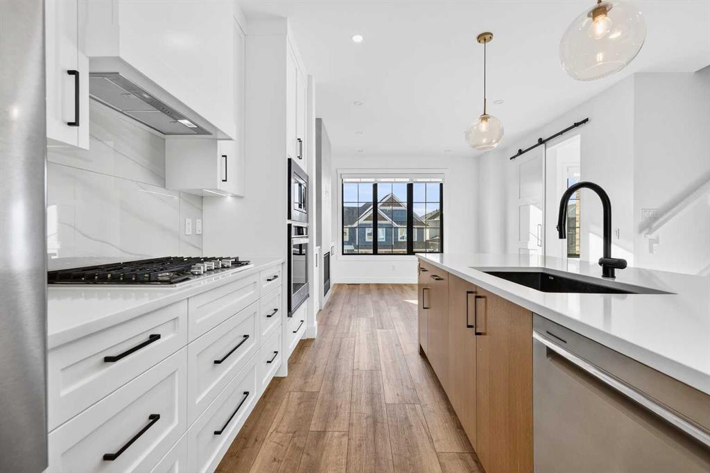 For those who crave both modern design and instant access to the outdoors, this Truman built corner-unit townhouse in Discovery Ridge delivers the best of both worlds. Set just steps from Griffith Woods, you’ll wake up to valley views, fresh air, and endless kilometres of walking and biking trails—perfect for morning runs, evening rides, or unplugging after a busy day. All this, while still being only 5–10 minutes from Westhills shopping, great restaurants, groceries, schools, and LRT access for an easy commute downtown. With over 1,700 sq. ft., 3 bedrooms, and 3 bathrooms, this home is designed for a dynamic, modern lifestyle. The oversized double attached garage comfortably fits a large SUV and a second vehicle, with room for bikes and gear. The entry-level flex space adapts effortlessly to your life—ideal as a home gym, gear room, creative studio, or secondary office. The main living level is bright, open, and made for entertaining. A chef-inspired kitchen features built-in appliances, designer tile backsplash, and a large island with breakfast bar—perfect for casual meals or hosting friends. The space flows into the living room, where a gas fireplace with custom built-ins creates a warm focal point, and the dining area is elevated with a custom buffet offering smart storage and style. A private, enclosed office provides a quiet work-from-home solution without sacrificing living space. Step outside through expansive sliding doors to the west-facing balcony, where you can unwind with sunset views, host summer BBQs, or enjoy a post-adventure drink as the day winds down. A powder room and thoughtfully designed storage complete this level. Upstairs, the primary suite feels like a retreat after a long day on the trails, featuring vaulted ceilings, oversized windows overlooking the ravine, a walk-in closet, and a spa-like 5-piece ensuite with dual vanities and a soaker tub. Two additional bedrooms, a full bathroom, and upper-floor laundry add everyday ease and flexibility for guests or roommates. With over $30,000 in upgrades, this home stands out from the rest—custom fireplace cabinetry, dining buffet, enhanced kitchen storage, a dedicated office with sliding barn door and built-in desk, mirrored gym wall, and professionally installed window treatments throughout, including blackout blinds in all bedrooms for comfort and energy efficiency. Move-in ready and meticulously maintained, this is a rare opportunity to enjoy a lock-and-leave lifestyle surrounded by nature, without giving up style, convenience, or connectivity—right in one of Calgary’s most desirable westside communities.