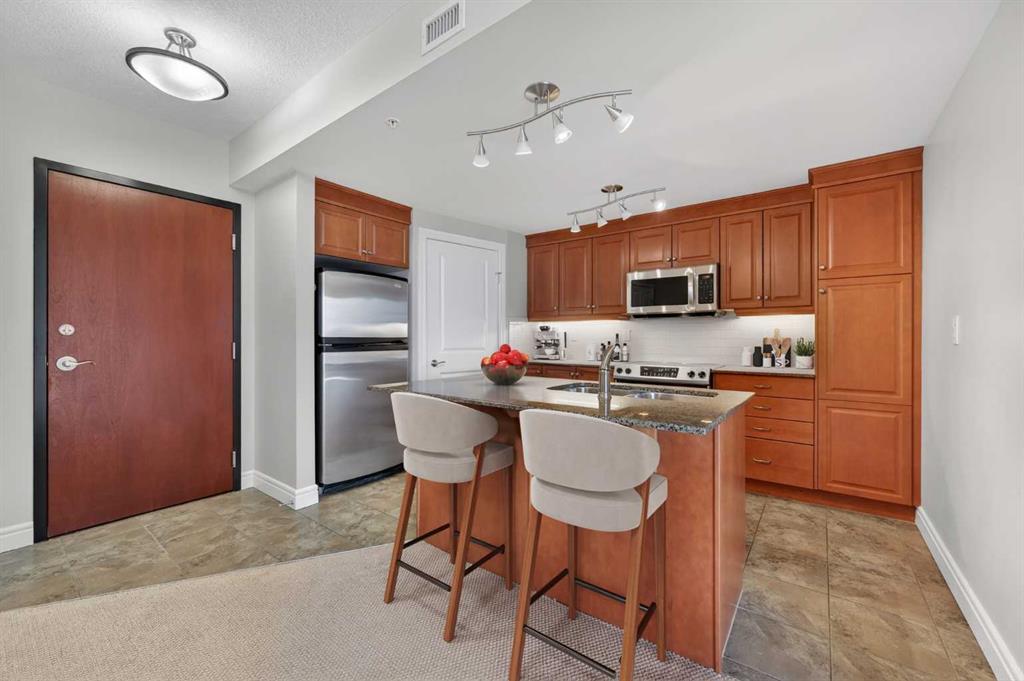 Perched on the 14th floor of Five West Phase II, this sophisticated one-bedroom residence is designed for the young executive who values both momentum and balance. Framed by floor-to-ceiling windows, the space is flooded with natural light and showcases sweeping views of the Bow River and Calgary’s iconic skyline—an inspiring backdrop whether you’re starting your morning or winding down after a full day. The open-concept layout creates effortless flow for entertaining or relaxing. A cozy gas fireplace adds warmth and character, while the private balcony becomes your personal vantage point for morning coffee, golden hour sunsets, or simply taking in the city energy below. The kitchen is sleek and functional, featuring granite countertops, stainless steel appliances, and a versatile island with seating, perfect for casual dining, hosting friends, or catching up on emails before heading to the office. In-suite laundry, central air conditioning, a titled underground parking stall, and even a convenient car wash bay in the building ensure your lifestyle runs seamlessly. Step outside and you’re moments from everything that defines downtown Calgary living. Walk to Prince’s Island Park for a midday run or weekend festival, cycle along the Bow River Pathway, or meet colleagues for dinner in Kensington. With the downtown core at your doorstep, commuting becomes optional—and convenience becomes standard. This is more than a condo. It’s a statement of lifestyle, where career ambition meets riverside tranquility, and every view reminds you why you chose to live at the centre of it all.