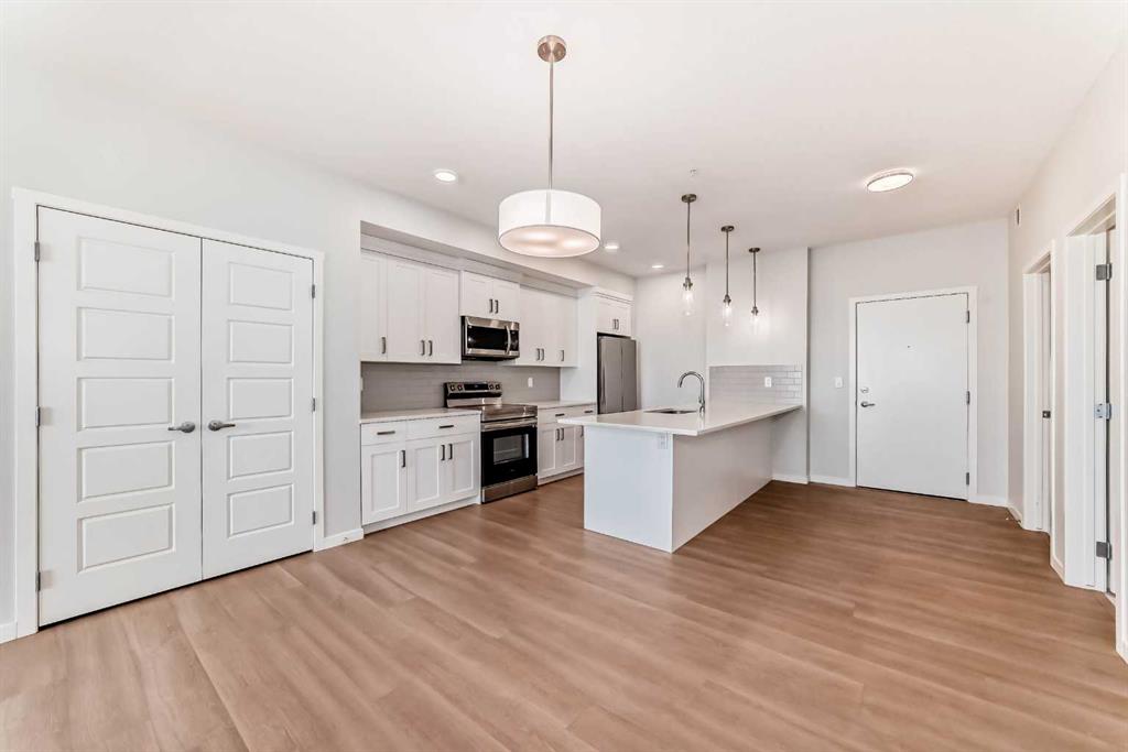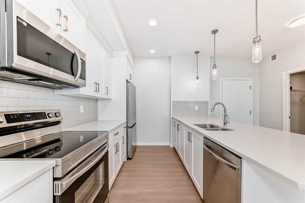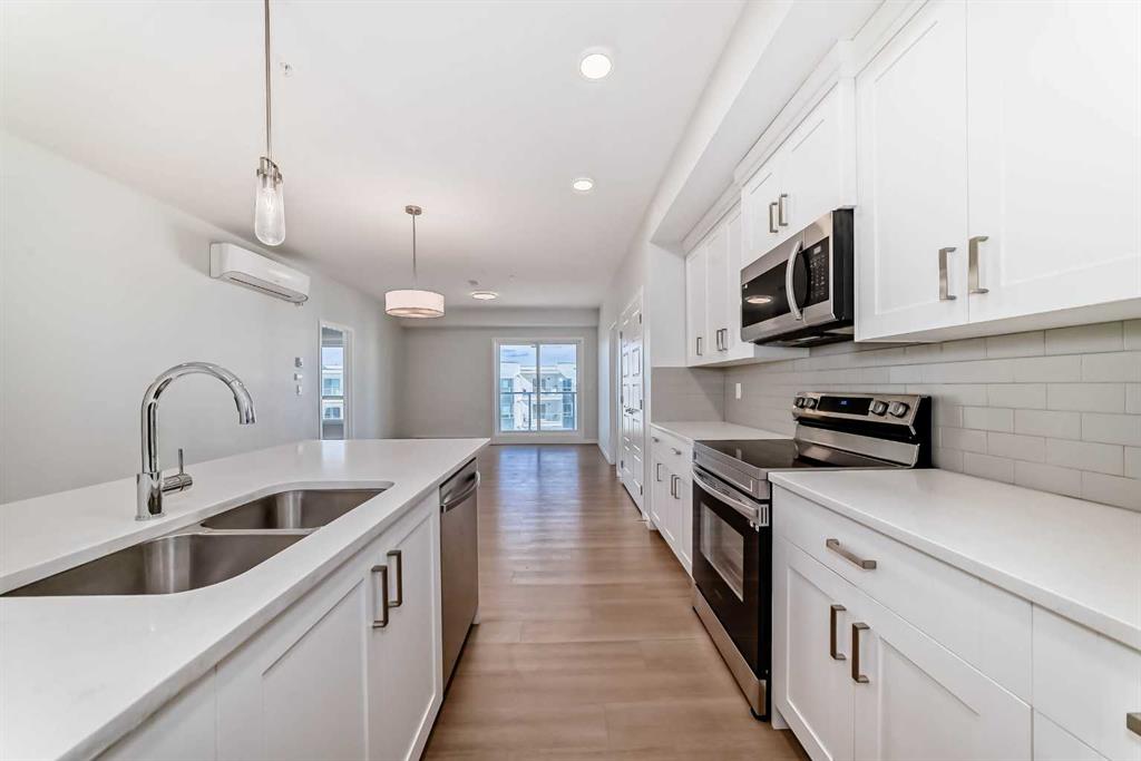 Nestled in the vibrant and growing Seton community, this immaculate 2-bedroom, 2-bathroom condo, built in 2023, offers a combination of contemporary design, luxurious finishes, and unparalleled convenience. Located on the (4th) TOP FLOOR, this condo boasts exceptional panoramic views that can be enjoyed from the spacious private balcony, making it the ideal place to relax and unwind. The interior is thoughtfully designed with high-end finishes, including stunning quartz countertops and stainless steel appliances in the kitchen, which add an elegant touch and provide plenty of space for meal prep and entertaining. The open-concept living and dining area is bright and inviting, with large windows allowing natural light to flood the space, creating a warm and welcoming atmosphere. The two generously sized bedrooms provide the perfect retreat, with the primary bedroom featuring a private ensuite bathroom for added convenience. Both bathrooms are beautifully finished with contemporary fixtures and sleek finishes, creating a spa-like atmosphere. The condo also includes a convenient wall-mounted AIR CONDITIONER to keep you cool during warm summer months, ensuring comfort throughout the year. This condo also offers a titled underground parking that adds to the convenience for the homeowners. One of the standout features of this condo is the expansive private balcony, offering breathtaking views of the surrounding area. Whether you’re enjoying a morning coffee, unwinding after a busy day, or entertaining guests, this outdoor space adds a unique touch to the home, enhancing its overall appeal. Not only is this condo a peaceful retreat, but it also offers exceptional convenience. Located just steps away from a variety of amenities, including a bustling plaza, a nearby gas station, and a lush park directly across the street, you’ll have everything you need right at your doorstep. Whether you’re running errands, enjoying a walk in the park, or grabbing a bite to eat, this location offers it all. This is an ideal home for first-time buyers, small families, or investors looking for a modern and desirable property in one of Calgary’s most dynamic neighborhoods. ***Don’t miss the chance to own this pristine, move-in-ready condo that combines luxury, convenience, and an unbeatable location.***
