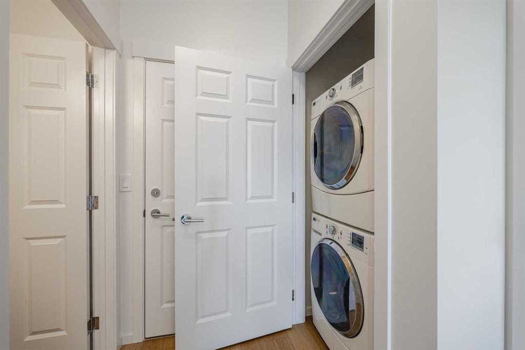 Incredible opportunity! This sunny and bright top floor apartment (no neighbours above) has a huge south facing patio with unobstructed views including stunning mountain views to the West. The new owner will enjoy brand new updates including new flooring (LVP in living area + carpet in bedroom), new lighting and paint through the entire unit including ceilings, gorgeous new stainless steel sink and faucet in the kitchen. More features include ensuite laundry, granite counters, French pocket doors to the bedroom, and a nice soaker tub in the bathroom. Inside the unit you will find two large closets for coats and clothes plus an additional assigned underground storage room. Park in your titled parking stall with plug-ins and enjoy a wonderful lifestyle in this quiet community with close access to ponds, walking paths, parks (just across the street), New Brighton Athletic Park, playgrounds and schools. Incredible amenities are nearby including shopping, restaurants, medical offices, and quick access to the ring road and Deerfoot Trail.