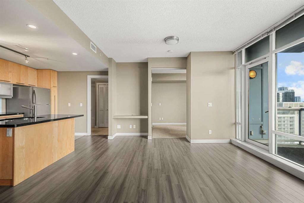 Welcome to refined urban living in Union Square, ideally situated in the heart of Calgary’s vibrant Beltline. This beautifully appointed 1-bedroom, 4-piece bathroom residence offers a seamless blend of modern design and everyday functionality, perfectly suited for professionals, first-time buyers, or investors seeking a premium inner-city lifestyle. Thoughtfully designed with an open-concept layout, the space is enhanced by expansive floor-to-ceiling windows and 9’ ceilings that flood the home with natural light while showcasing dynamic city views. The contemporary kitchen serves as the centerpiece of the home, featuring sleek granite countertops, full-height cabinetry, stainless steel appliances, and a spacious island with breakfast seating—ideal for casual dining or entertaining guests. The living area flows effortlessly onto a private balcony, creating the perfect setting to unwind or take in the surrounding skyline. The generously sized primary bedroom offers comfort and privacy, with convenient access to a well-appointed 4-piece bathroom. Additional highlights include in-suite laundry, central air conditioning for year-round comfort, and a titled underground parking stall, providing both security and convenience. Located just steps from Calgary’s best restaurants, cafés, shopping, parks, and transit, this residence places you at the center of it all—only minutes from downtown and the city’s most desirable amenities. With its modern finishes, functional layout, and unbeatable location, this exceptional condo embodies the very best of sophisticated urban living.