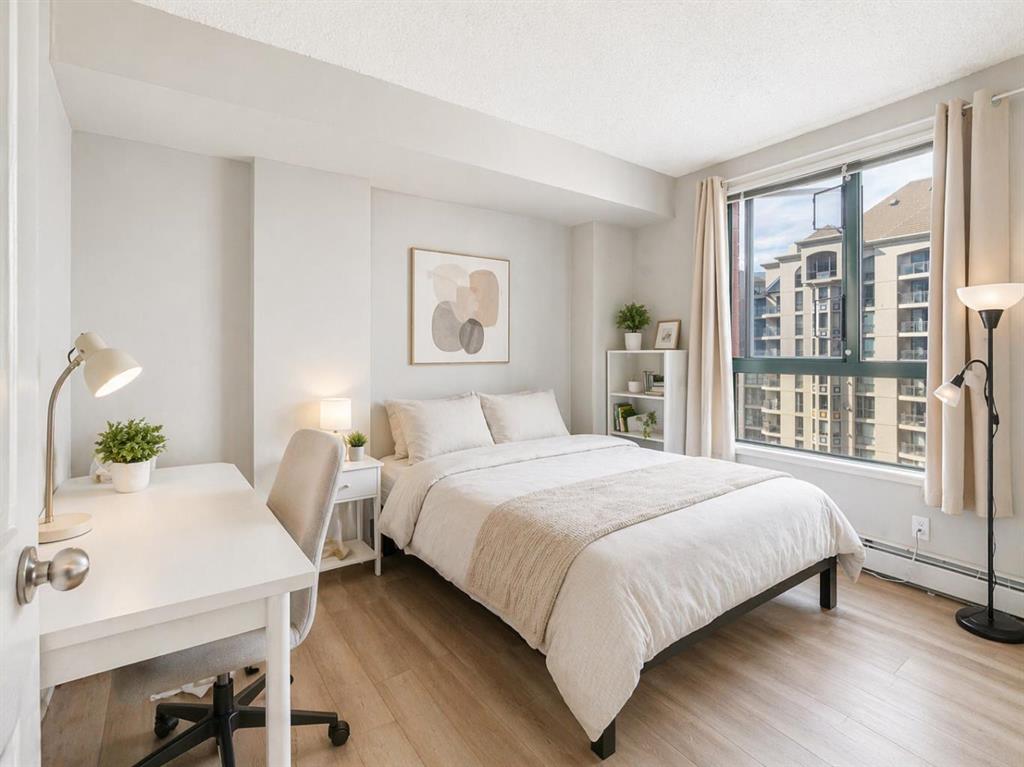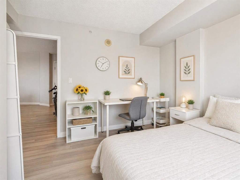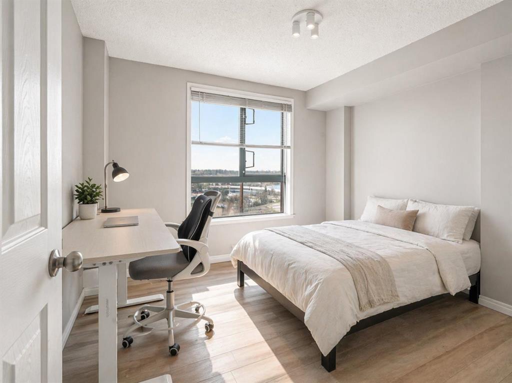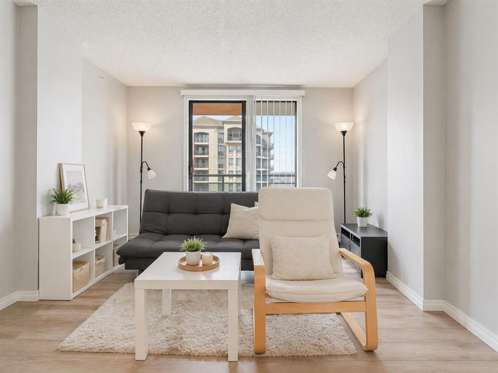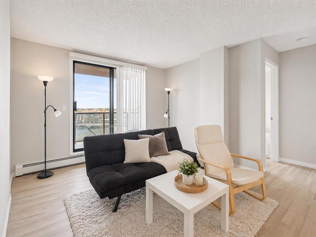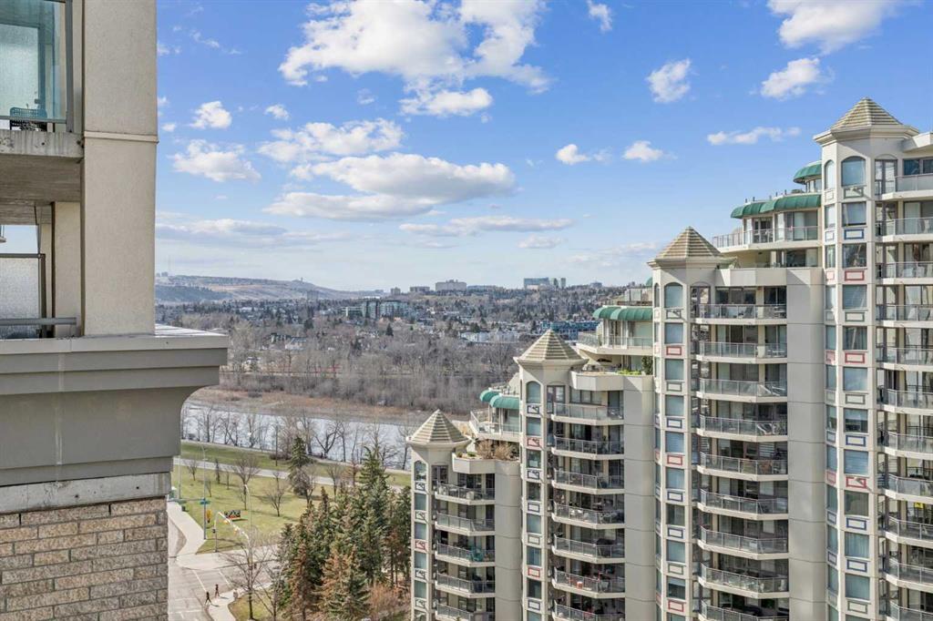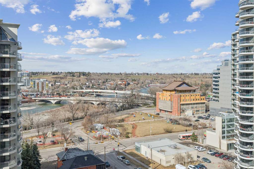 Welcome to downtown living with a view! Perched on the 14th floor in Calgary’s desirable Downtown West End, this beautifully RENOVATED designed 2 bedroom, 2 bathroom condo offers the perfect blend of urban convenience, comfort, and scenery. Enjoy stunning unobstructed views of the river valley and mountains from a bright, open-concept layout filled with natural light. The spacious kitchen features plenty of counter space, an eating bar, and a dedicated dining area, making it ideal for everyday living or entertaining. The primary bedroom includes a large walk-through closet and private ensuite, while the second bedroom offers excellent flexibility for guests, a roommate, or a stylish home office. Located in a solid concrete building with full-time concierge service, this home also includes in-suite laundry, titled underground parking, secure bike storage, and access to a gym facility. Just steps from the LRT, river pathway system, downtown amenities, restaurants, shops, and the Bow River, this is an incredible opportunity to enjoy a low-maintenance lifestyle in one of Calgary’s most connected urban locations. Condo fees include HEAT and ELECTRICITY. UPDATES: FLOORING + TRIMS (2022), KITCHEN CABINETS + BATHROOM VANITY (2022) Book your private showing today!