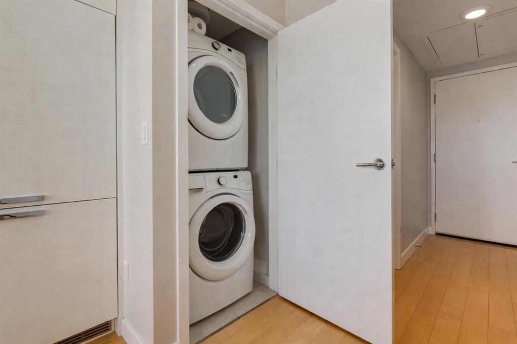 Comfort is elevated with in-suite laundry, in-tile heated bathroom floors, and in-unit air conditioning controlled by a Nest thermostat, allowing you to tailor your environment year-round.