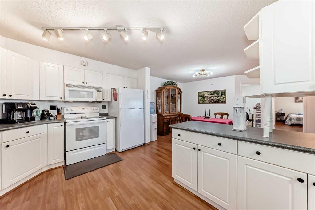 Top floor 1495 sq. ft bungalow (all on one floor) plan. First time offered by this original owner and located in the extremely well managed adult 45+ Millrise Point community. Many upgrades including a large custom kitchen with both the cabinets and pantry featuring pull out drawers for storage and special built in custom spice racks. Note the counters have been lowered 1” to accommodate shorter chefs. All the kitchen appliances plus the washer, dryer and freezer in that massive utility/laundry room are included. Bidets in both bathrooms, extra large walk in customized primary bedroom closet. The 2nd bedroom also features customized his and hers closets. Two underground and secured side by side titled parking with your storage lockers right in front and numerous surface visitor parking for your guests. This building’s amenities include a party/social room with its own kitchen, a library, and a fitness room. Condo fees include professional management, landscape, snow removal, electricity, heat, water, waste/garbage removal and insurance. Pets are welcome with board approval. Must be seen to truly appreciate the forethought of this original owner. Check the location with the LRT and bus routes just across the intersection. Easy walk to Fish Creek Provincial Park. Medical pharmacy and major shopping also just down the street. Check the pictures, the virtual tour, and call your favorite agent right away.