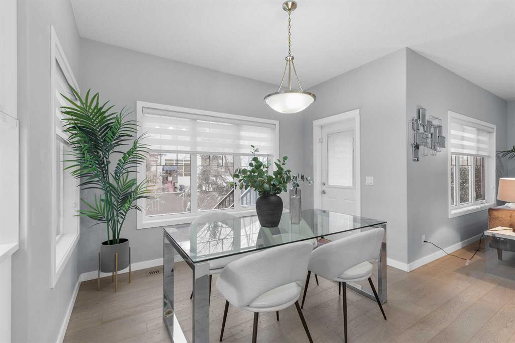 The main floor features 9’ ceilings, a dedicated office, and an open, inviting design with large windows, a gas fireplace, and a truly spacious living and dining area made for gathering. The heart of the home is the beautiful white kitchen (updated in recent years) with a gas stove, timeless finishes, and plenty of room to cook and connect. You’ll also appreciate the updated main-floor flooring completed within the last few years.
