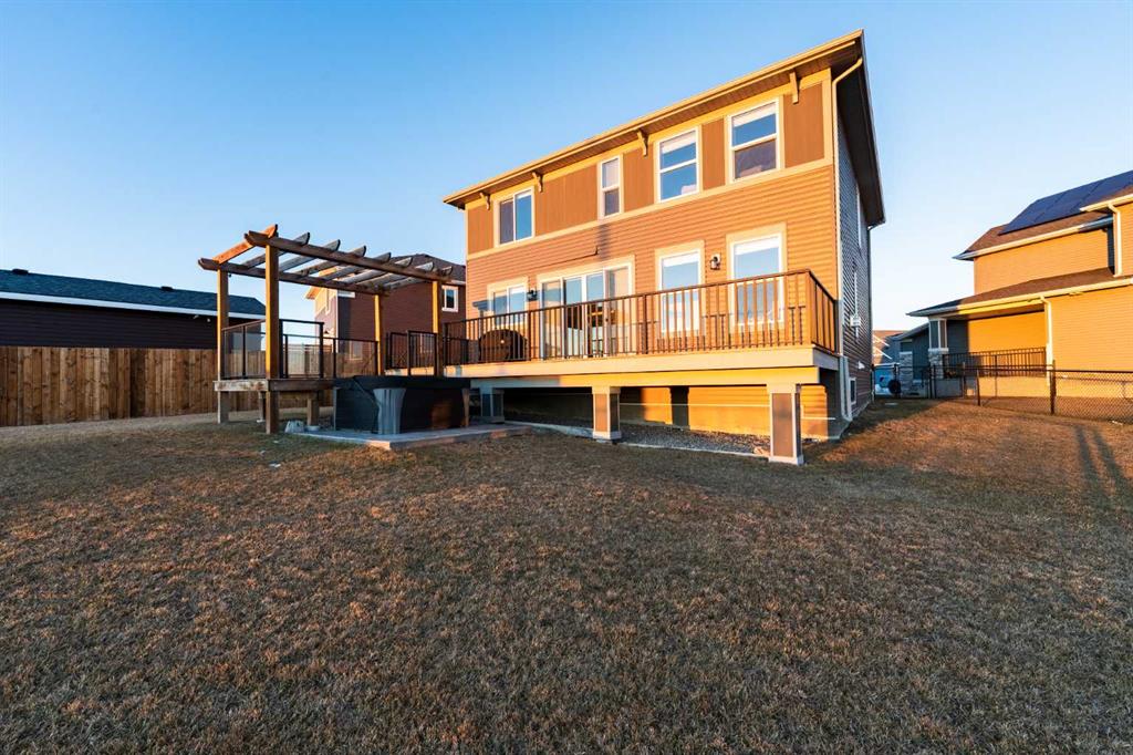 Tucked away on a quiet cul-de-sac and set on an exceptionally large pie-shaped lot, this beautifully maintained home delivers a rare combination of privacy, space, and unobstructed golf course views. This custom property offers over 2,250 square feet of thoughtfully designed living space above grade—ideal for families who value both functionality and style. From the moment you enter, the home impresses with its welcoming layout and refined finishes. Just off the front entrance is a versatile flex room that easily adapts to your lifestyle—perfect as a home office, playroom, or creative space. Moving through the foyer, the heart of the home opens up into a bright and airy open-concept design that seamlessly connects the living room, dining area, kitchen, and backyard, making it ideal for entertaining or everyday family life. The contemporary kitchen is both stylish and practical, featuring quartz countertops, an island with breakfast seating, stainless steel appliances, a gas range, and a spacious corner pantry. A charming farmhouse-style sink sits beneath a window overlooking the backyard, filling the space with natural light and offering peaceful views while you cook. From the kitchen, you can easily keep an eye on family and guests gathered by the fireplace or enjoying the expansive outdoor space. The main level is completed with a convenient powder room and a well-designed mudroom to keep daily life organized. Upstairs, you’ll find a generous bonus room flooded with light and overlooking the backyard—an ideal spot for movie nights or a kids’ retreat. The primary suite is a true sanctuary, featuring a striking custom feature wall, a spa-inspired ensuite, and a large walk-in closet. Two additional spacious bedrooms, a full four-piece bathroom, and a conveniently located upper-floor laundry room complete this level. Step outside and discover your own private backyard escape. The oversized pie lot backs directly onto the golf course and features a multi-tiered deck with gazebo, perfect for entertaining or unwinding. Relax in the hot tub while taking in the open views and tranquil surroundings—this outdoor space is truly something special.