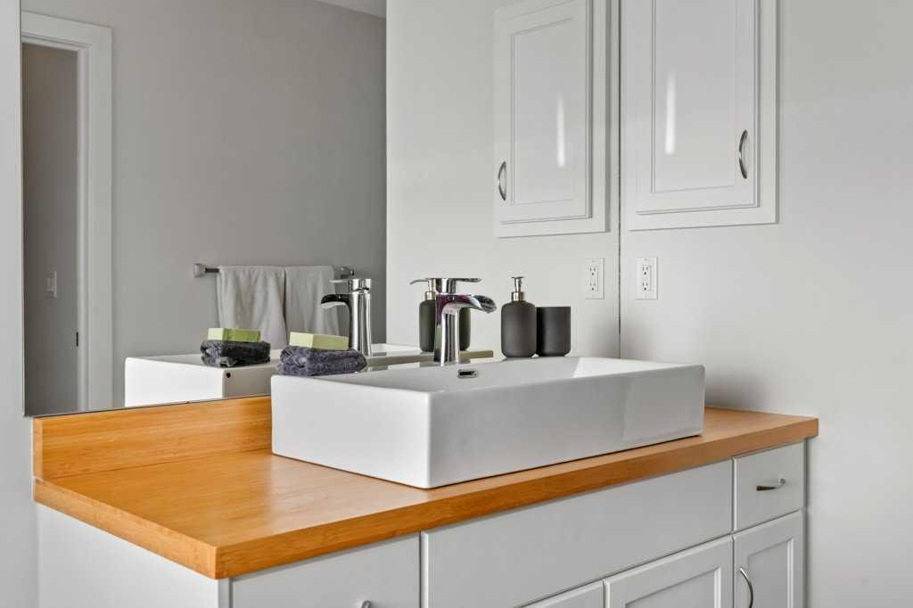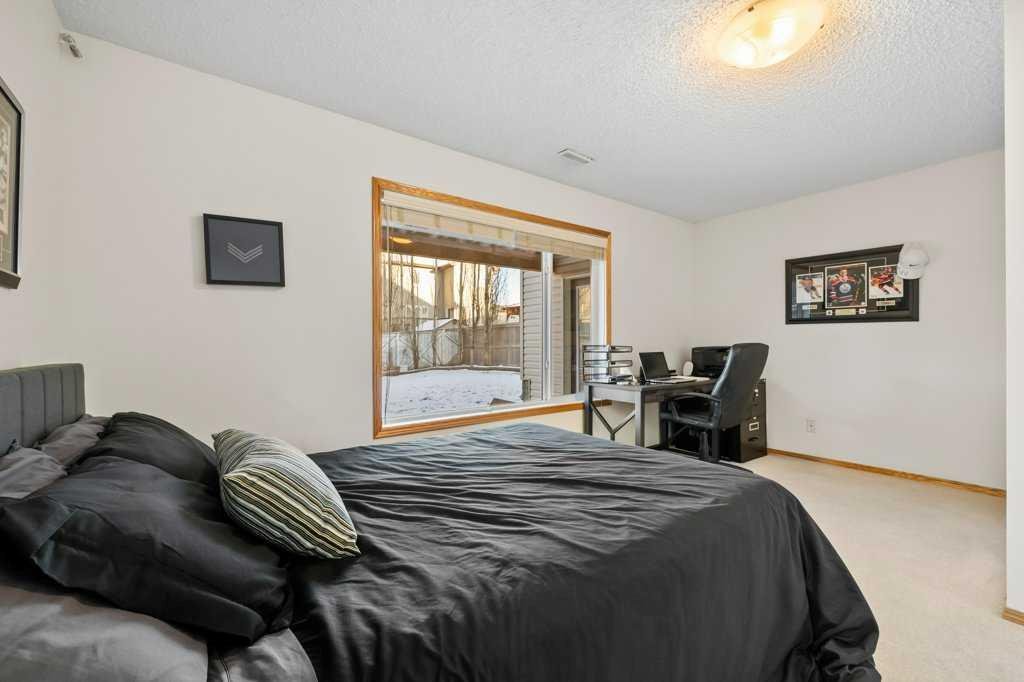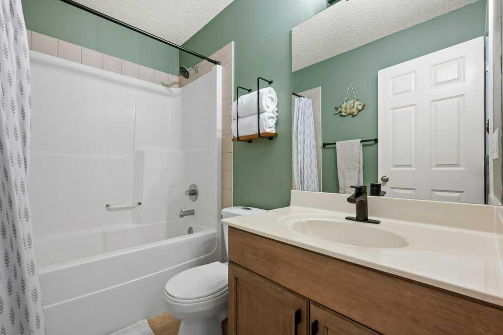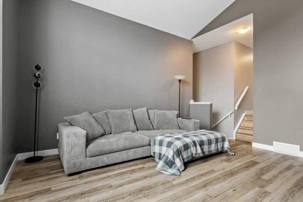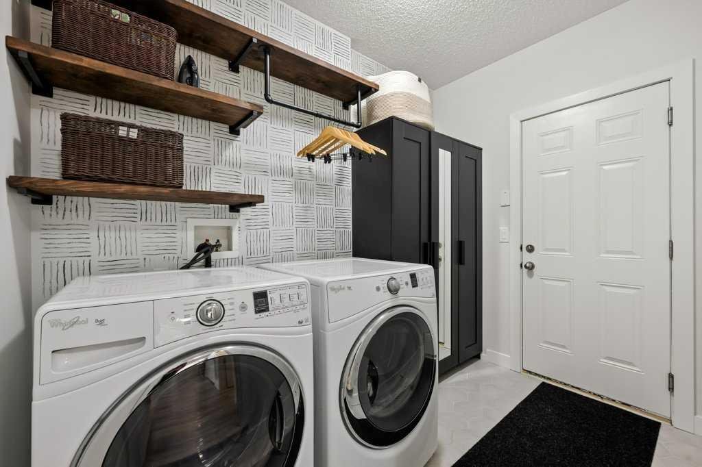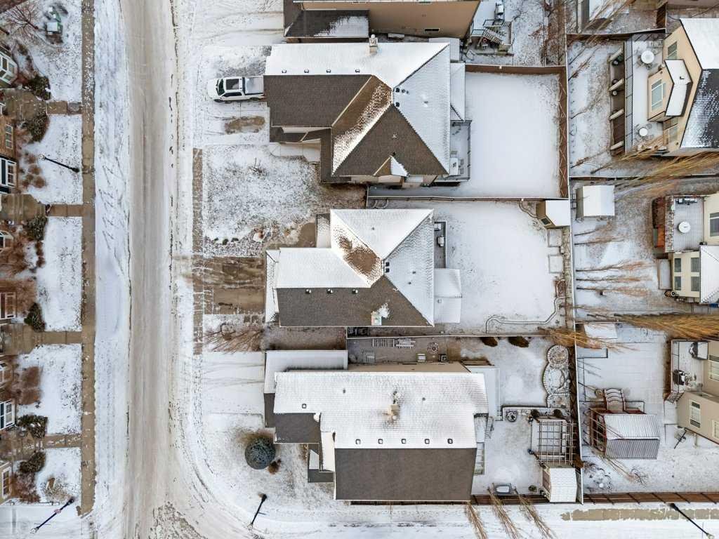 Perfectly situated in a family-friendly location, this beautifully updated home offers the ideal balance of walkability, lifestyle, & thoughtful design. Just steps from Our Lady of Wisdom School and Rainbow Creek Elementary, with nearby commercial amenities close at hand, residents will also enjoy easy access to a nearby bike park & scenic canal pathways. Quick access to Lakeside Golf Greens, Chestermere Lake, & Chestermere Lake Middle School further enhances the appeal of this exceptional location. The main floor welcomes you with fresh vinyl plank flooring, neutral paint tones, & the comfort of central air conditioning. Natural light flows through vinyl windows, while the layout has been carefully curated for both function & style. Direct access from the double attached garage leads into a well-designed mudroom & laundry area finished with hex tile flooring, added cabinetry & raw wood and metal shelving that adds character & warmth. A chic two-piece bathroom completes this level, featuring a counter-height standalone vanity & designer wallpaper. The lifestyle room invites relaxation with a gas fireplace framed by a tiled surround, creating a cozy focal point for everyday living. The heart of the home is the stunning kitchen, designed & renovated by Bjornson Design. White and grey cabinetry with soft-close mechanics, dovetail inlays, extended-height uppers, & a tiled backsplash set a timeless tone, while thoughtful details such as a garbage pull-out, built-in wine rack, beverage fridge, floating shelves, & premium built-in appliances elevate both form & function. The adjoining dining area is highlighted by a vaulted ceiling and opens through a garden door onto the deck, overlooking the the massive backyard & creating a seamless indoor-outdoor connection. Upstairs, vinyl plank flooring continues through a well-planned split-bedroom design. A front bonus room with a vaulted ceiling provides flexible space for a family room, office, or play area. Two additional bedrooms are privately positioned toward the back & side of the home, while the main four-piece bathroom offers a storage vanity, tub surround, & added tile accents. The primary bedroom is a peaceful retreat with backyard views, generous space for a king-size bed, & a walk-in closet. The renovated ensuite showcases a spa-inspired design with a water closet, soaker tub with tiled skirting, counter-height storage vanity in classic white cabinetry with Scandinavian-style countertop, an upper vessel sink, & a full-size stand-up shower accented with tile. The developed walkout basement, expands the living space with 9-foot ceilings, plush carpeting, & a large fourth bedroom. A three-piece bathroom with a storage vanity & corner shower adds convenience, while the recreation room features a second garden door that walks out to a lower concrete patio. Outside, the fully fenced walkout yard is fenced & framed by mature trees, garden beds & includes a corner storage shed for your convenience