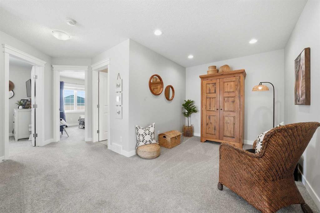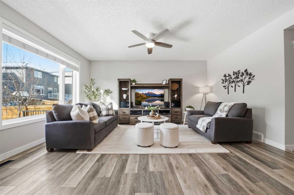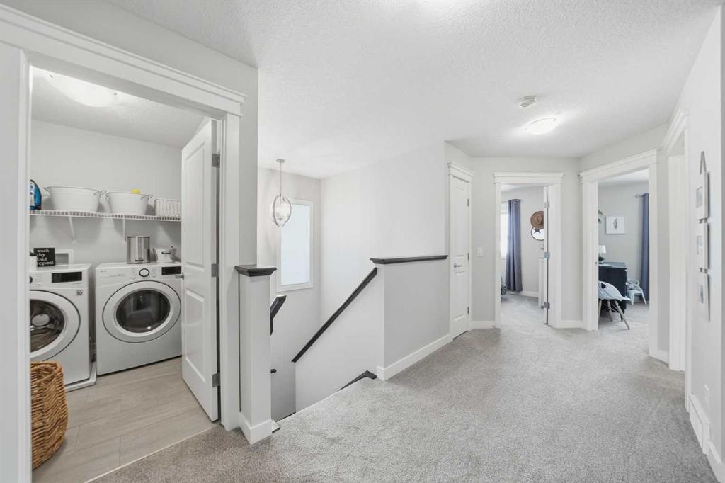 Welcome to this beautifully maintained and well cared for 3-bedroom home offering 1783 sq ft of bright, functional space in one of Cochrane’s most family-friendly communities. Step inside to a warm and inviting main floor, where 9’ ceilings and natural light create an open, airy feel. At the heart of the home, the kitchen is both stylish and practical—featuring quartz countertops, maple cabinetry with 40 1/2″ uppers, stainless steel appliances including a gas stove, a functional island, and a convenient walkthrough pantry that makes daily life just a little bit easier. Upstairs, a centrally located media room offers the perfect space for movie nights, a play area, or a quiet retreat. You’ll also find upper-floor laundry for added convenience, along with a spacious primary bedroom complete with a large walk-in closet and a 4-piece ensuite. Two additional bedrooms and a full bathroom provide room for family or guests.