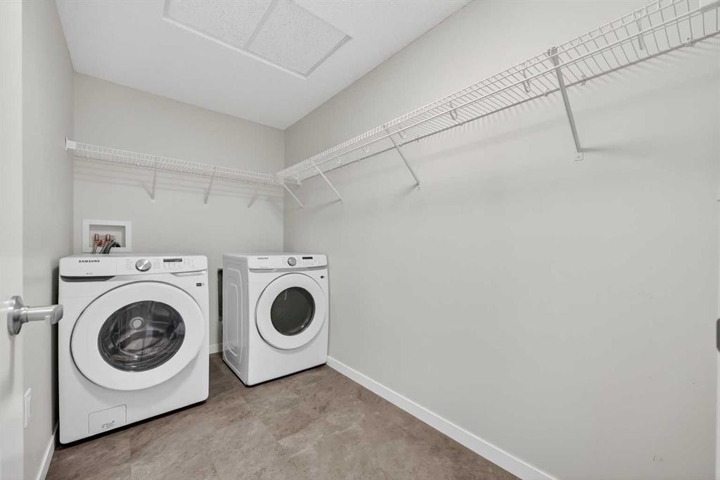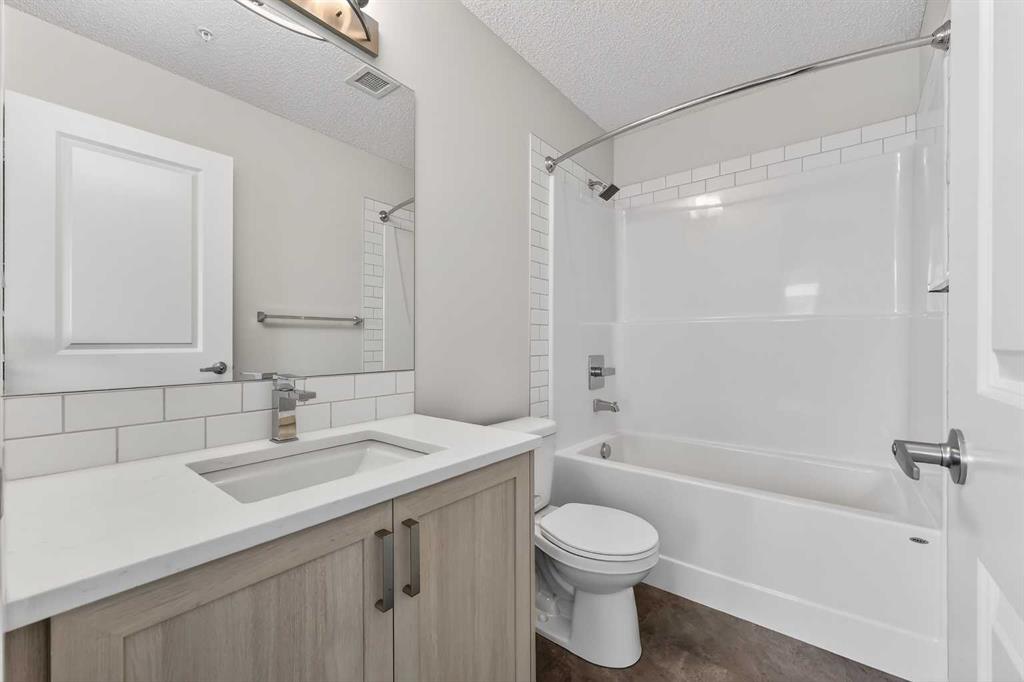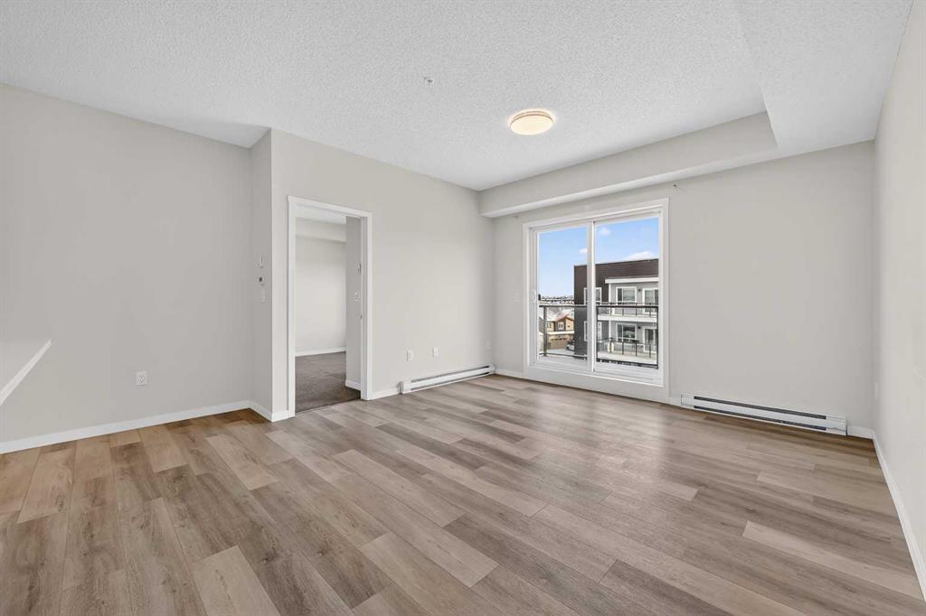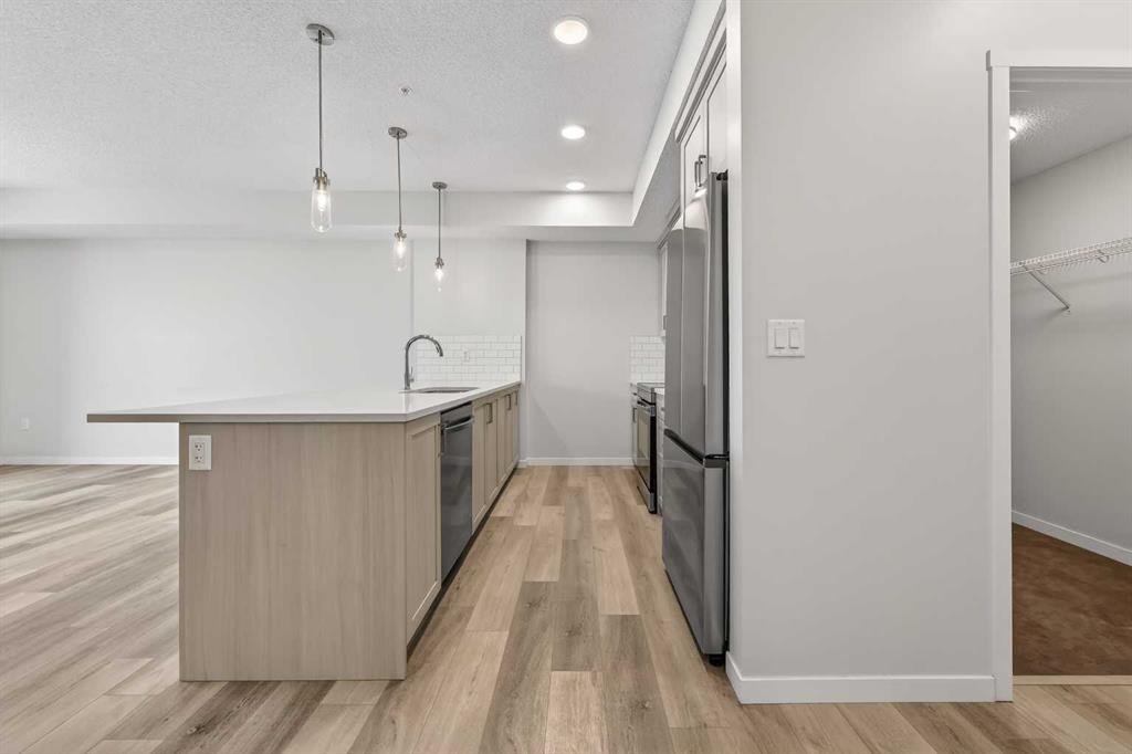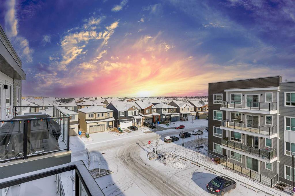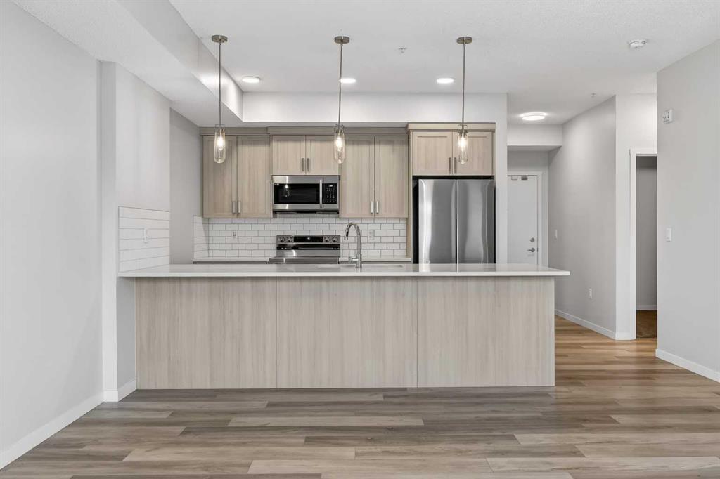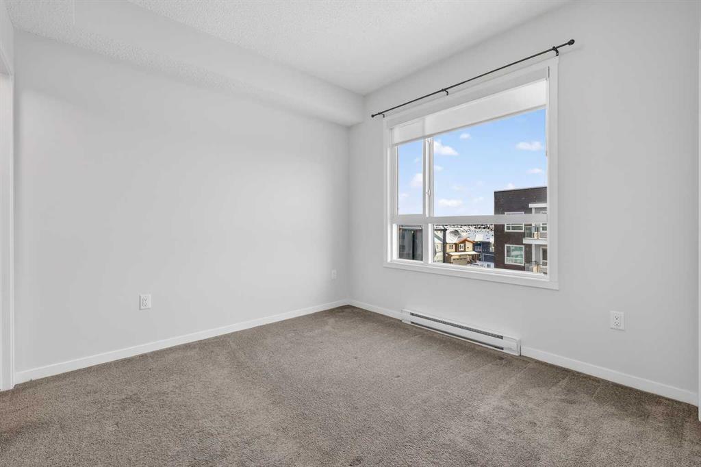 Welcome to this modern fourth-floor condo in the growing community of Carrington, built by Cedarglen in 2024. This bright and thoughtfully designed 2 bedroom, 2 bathroom unit offers approximately 780 sqft of well-used living space, ideal for first-time buyers, downsizers, or anyone looking for a low-maintenance lifestyle in a newer building. The open-concept layout features a stylish kitchen with quartz countertops, stainless steel appliances, ample cabinetry, and a large island that flows seamlessly into the living area. Large windows bring in plenty of natural light and lead out to an east-facing balcony, perfect for enjoying morning sun and fresh air with a bit more privacy and elevation than lower-level units. The primary bedroom includes a full ensuite and generous closet space, while the second bedroom is well-sized and conveniently located near the second full bathroom, making it ideal for guests, a home office, or roommates. Neutral finishes throughout make the space feel clean, modern, and easy to personalize. Located in a well-planned new community with easy access to parks, pathways, shopping, and major routes, this unit offers a great balance of comfort, convenience, and value in northwest Calgary.