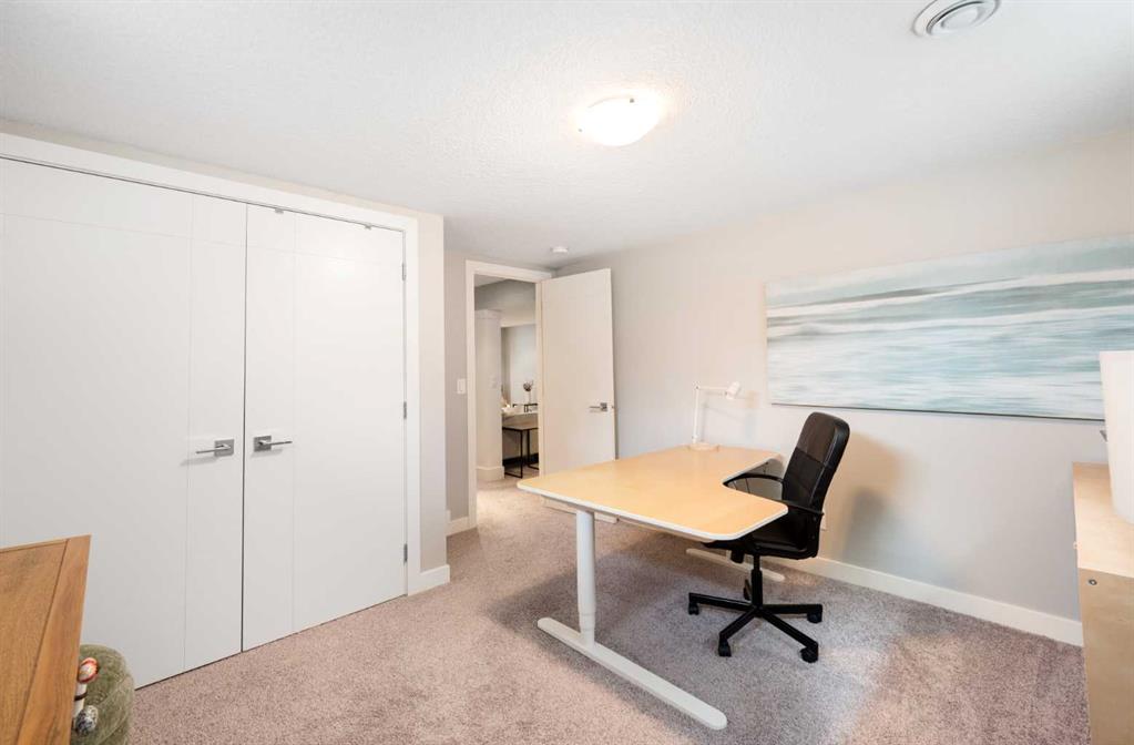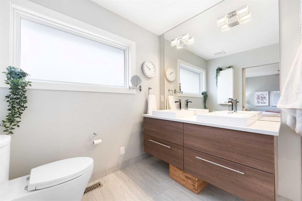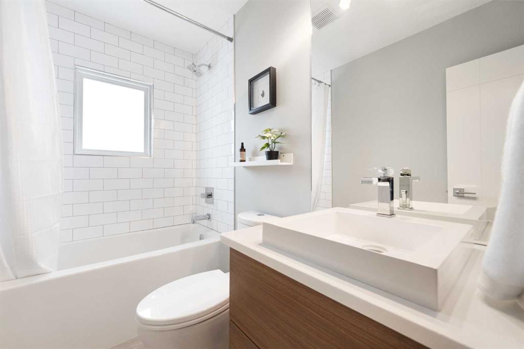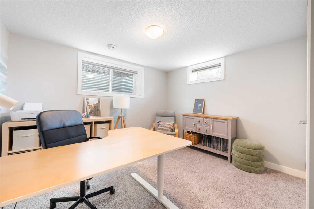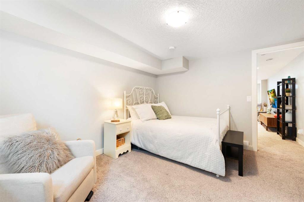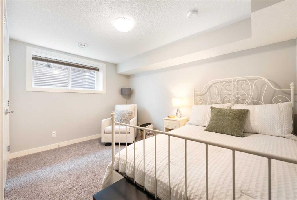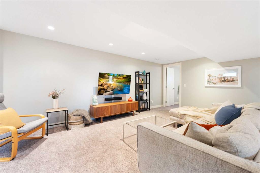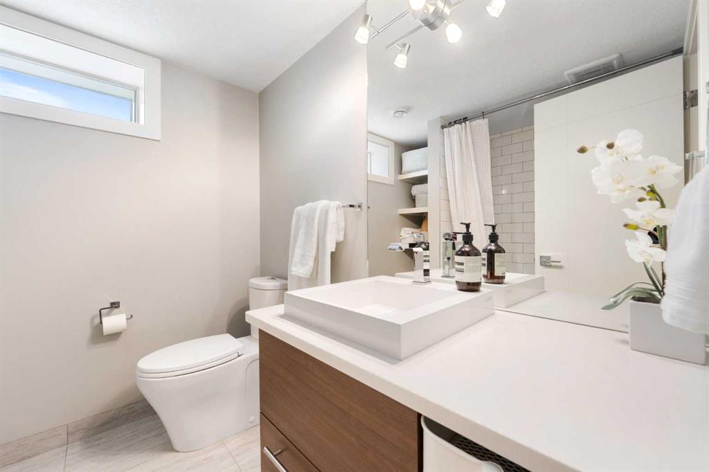 The fully finished basement offers incredible versatility with two additional large bedrooms, a spacious recreation area, and a cozy nook—perfect as a kids’ play space, reading corner, or extra storage zone. You’ll also find a beautifully finished 4-piece bathroom with tiled shower and built-in shelving, along with a convenient laundry area featuring a sink. A split-level landing between the main and lower floors provides direct access to the backyard, adding both function and flow to the home.