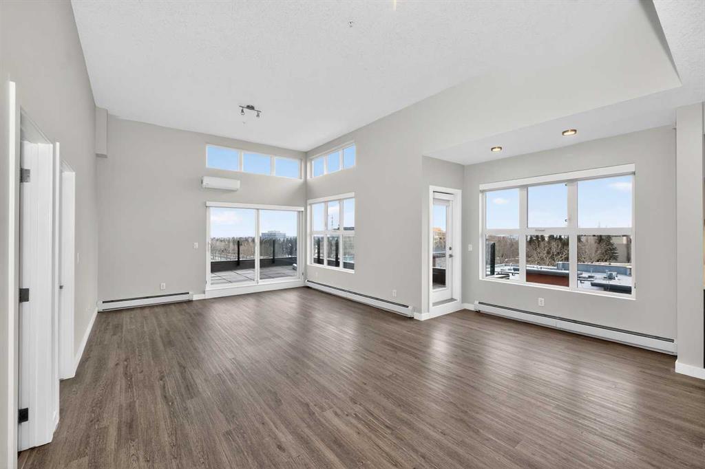 Discover this exceptional penthouse nestled in the heart of Currie Barracks, offering unparalleled elegance and comfort. Located on the top floor of a stunning four-storey building, this residence features soaring ceilings and an expansive open-concept living and dining area perfect for both relaxing and entertaining. Step outside onto the massive terrace, where breathtaking views and seamless indoor-outdoor living await. With dual balconies, you will enjoy stunning views from every direction, including mountain views from the primary bedroom balcony. Every detail of this penthouse exudes sophistication, from the sleek quartz countertops in the modern kitchen and bathrooms to the thoughtfully designed layout that maximizes space and natural light. For year-round comfort, the home is equipped with dual air conditioning units, one in the living room and one in the primary bedroom. Enjoy the convenience of two titled parking stalls in the heated underground parkade, along with two dedicated storage unit and secure bike storage. The parkade also offers 26 visitor stalls and a car wash for added convenience. The beautifully landscaped surroundings provide easy access to numerous nearby parks, creating a serene and inviting atmosphere. Experience the pinnacle of refined living in this one-of-a-kind penthouse where luxury truly meets lifestyle.