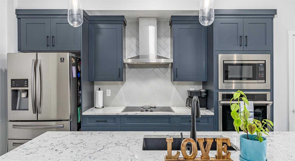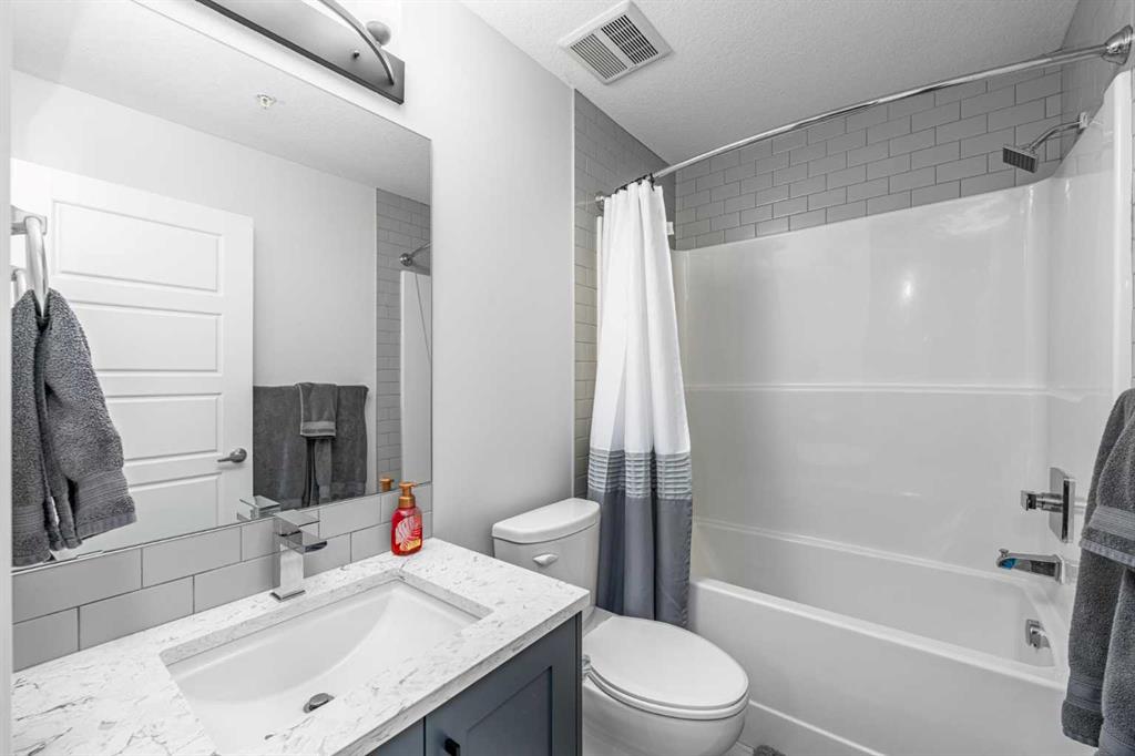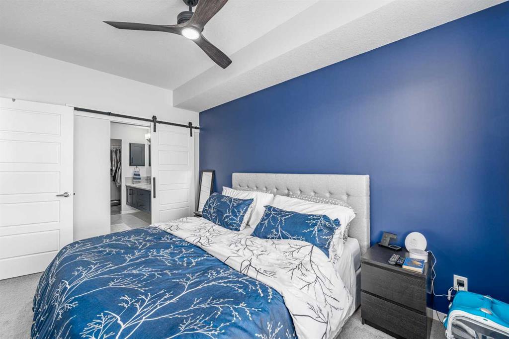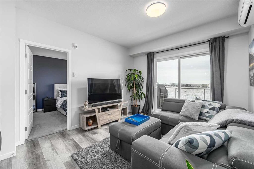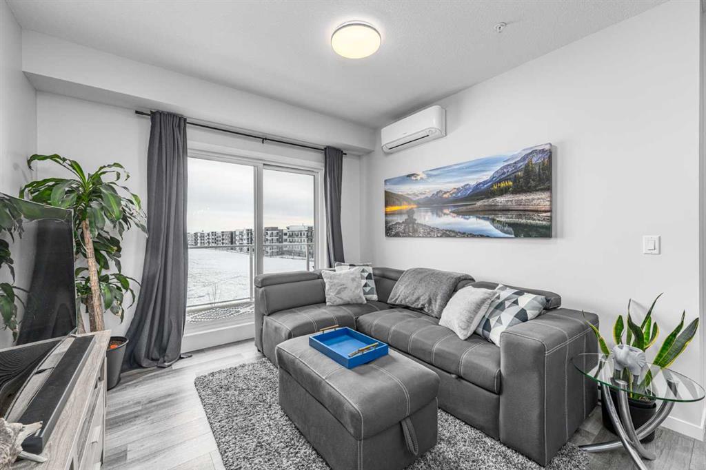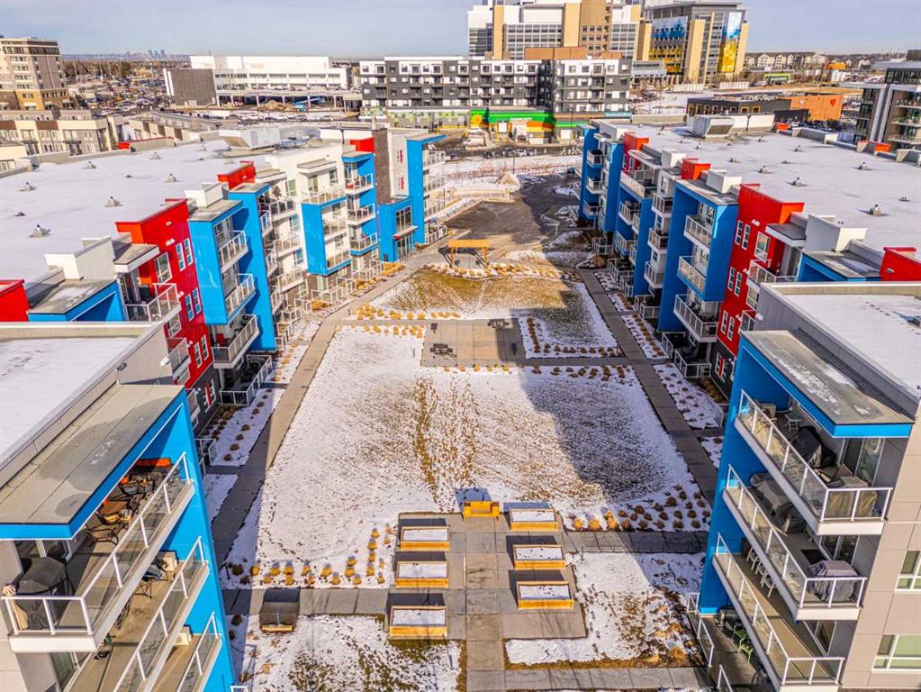 Welcome to this stunning top floor two bedroom, two bathroom condo, flooded with natural light and offering east facing views over an expansive green space. This home includes two titled underground parking stalls, wall unit air conditioning, and the quiet comfort of a well managed, low density complex. Inside, you’ll be impressed by the bright, open layout with high ceilings and a showstopping full length quartz island that comfortably seats six or more, perfect for hosting dinners or casual gatherings. The chef inspired kitchen features stainless steel appliances, an in wall oven, elegant herringbone tile backsplash, upgraded pull out cabinetry, and abundant storage to keep everything effortlessly organized. The spacious living area strikes the perfect balance. Large enough for entertaining yet cozy enough for relaxed evenings at home. The primary bedroom easily accommodates a king size bed and is complemented by a large walk-in closet and a stylish four piece ensuite featuring dual quartz vanities, modern finishes, and a beautiful herringbone tiled shower. A second bedroom offers excellent flexibility for guests or a home office, while an additional four piece bathroom is conveniently located just off the kitchen. Completing the interior is a generous in-suite laundry and storage room, large enough to double as a den or office space. Step outside through the sliding doors to your oversized balcony, where you can enjoy morning coffee and sunshine while overlooking the peaceful green space. At the heart of the complex is a unique central courtyard featuring pergolas, seating areas, manicured lawns, and community garden boxes, a true extension of your living space. The location is exceptional, just steps from South Health Campus, and surrounded by restaurants, cafés, shopping, entertainment, parks, and the world’s largest YMCA, offering swimming, fitness facilities, a public library, and learning programs. All moments from your door. Additional highlights include side-by-side titled underground parking, bike storage, low condo fees, and a quiet, pet-friendly (with board approval) complex with only 78 total units. This is a rare opportunity to enjoy style, space, and unbeatable convenience. A must see!