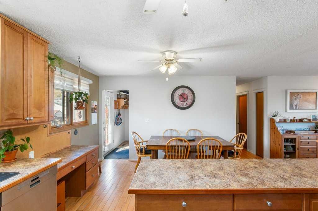Welcome to this fully finished BUNGALOW located on a mature street in Carstairs. Offering 4 bedrooms (3 up and 1 down) and 2.5 bathrooms. You are greeting by a spacious living room that is filled with natural light, which flows effortlessly to the dining area open to the U-Shaped kitchen with CORNER PANTRY, STAINLESS STEEL appliances, and desk for added convenience and your weekly meal planning. The Primary suite is complete with a 2-piece ENSUITE and the added convenience of MAIN FLOOR LAUNDRY. There are two other generous sized bedrooms, with IKEA built-in Wardrobe systems that includes drawers. And, 4-piece bathroom on this floor makes one-level living easy. The basement offers a LARGE REC/FAMILY SPACE complete with a wet bar area, GAS FIREPLACE with flanking shelves, and a 3-piece bathroom. A massive bedroom / office with double doors completes this floor. Several rooms have seen FRESH PAINT & the Furnace & Hot Water Tank have both been replaced in the last 10 years. Outside in the SOUTH FACING BACKYARD you will find a two-tiered deck, raised garden beds, MATURE TREES/SHRUBS and loads of space to enjoy the outdoors. Features a 24×24 DOUBLE DETACHED HEATED GARAGE with RV parking potential (2 gates: 1 at the front & 1 at the back off the alley). This property is situated in an excellent location close to schools, shopping, parks & recreation. Do not miss your opportunity to own this great property located on a sought after street in this great community. Engineers Report is available upon request.