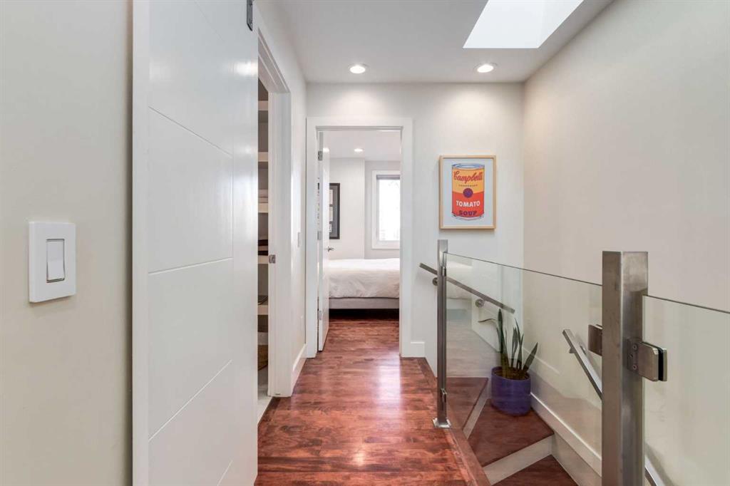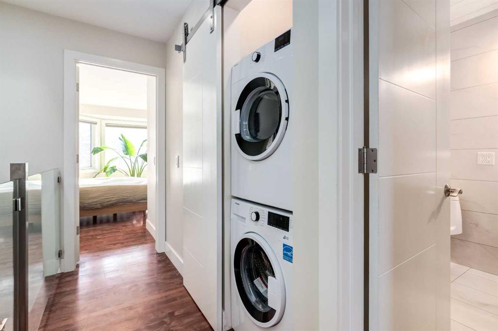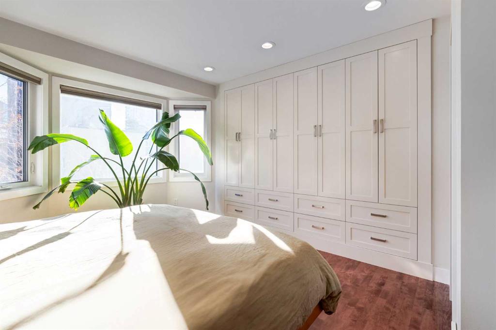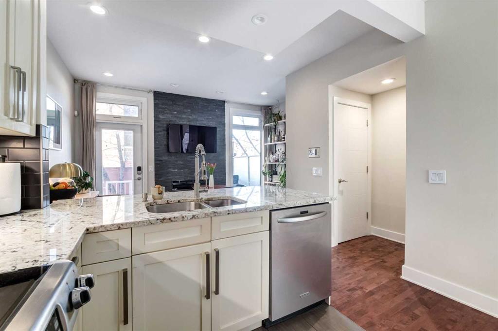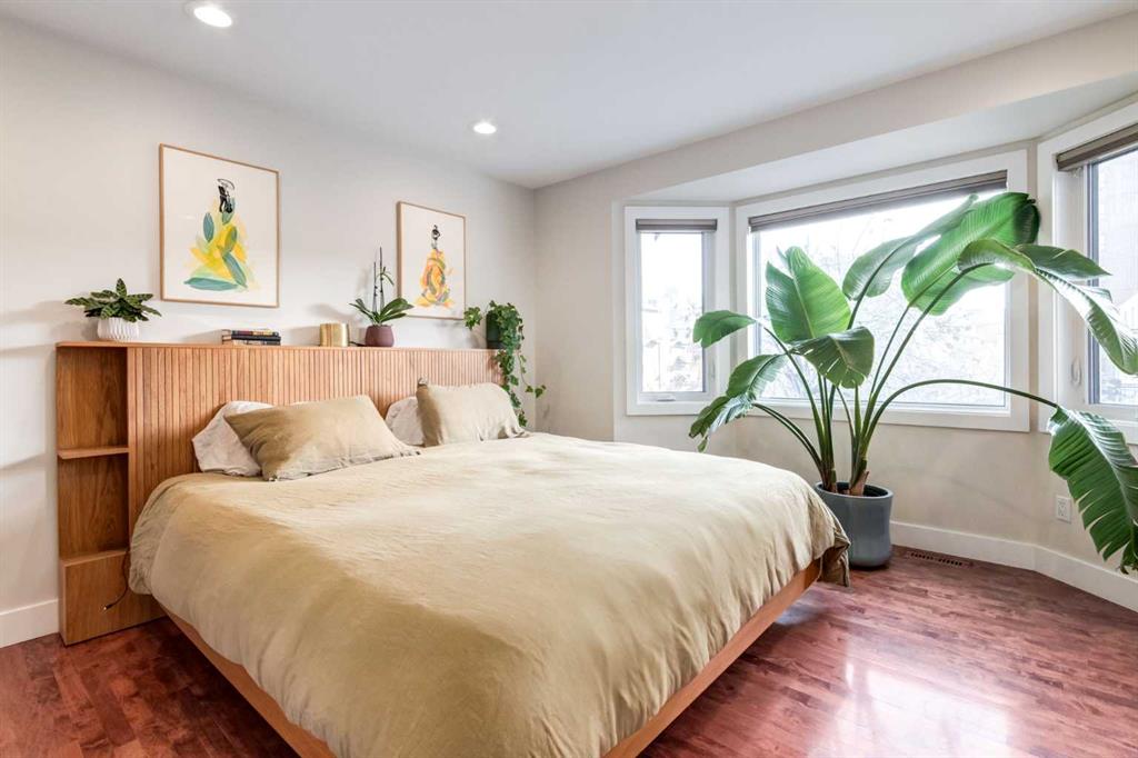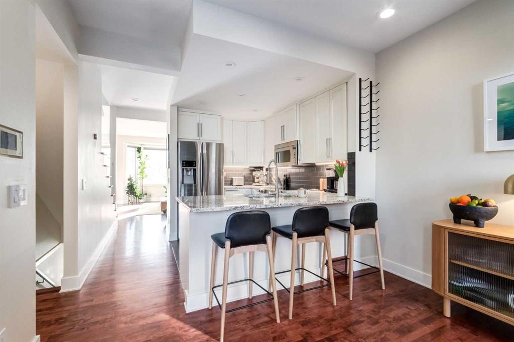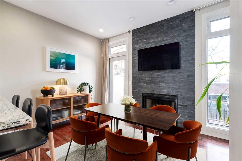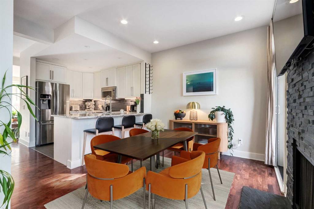 Rarely does a home so seamlessly blend sleek modern luxury with a warm, sun-drenched atmosphere—welcome to 1419 10 Street SW, a refined inner-city sanctuary in the heart of Calgary’s vibrant Beltline. From the moment you ascend from the foyer, you are greeted by an expansive, light-filled open-concept main floor designed for contemporary urban living. Soaring 9-foot ceilings and rich hardwood flooring create a sense of scale and sophistication throughout. The chef-inspired kitchen anchors the space, featuring premium granite countertops, stainless steel appliances, and thoughtful functionality, flowing effortlessly into an elegant dining area. Bathed in natural light, the dining space is perfect for both everyday living and entertaining, centered around a rare and charming wood-burning fireplace that adds warmth and character. The spacious living room completes the main level, offering a comfortable yet refined setting with custom built-in TV cabinetry and integrated shelving—ideal for relaxing or hosting guests. Upstairs, the same refined finishes continue into a thoughtfully designed layout prioritizing comfort and privacy. The primary retreat is exceptionally well-appointed, showcasing an expansive wall of custom built-in cabinetry and a luxurious 4-piece ensuite featuring a steam shower (updated in 2023), double vanity, and bidet for a spa-like experience. The second bedroom is impressively sized with room for a dedicated home office area—perfect for today’s flexible lifestyle. A second 4-piece bathroom with a jetted tub and quality finishes serves this level, while centrally located stacked laundry adds everyday convenience. Step outside to your private, newly re-stained deck—an inviting outdoor retreat complete with a natural gas line, ideal for effortless summer entertaining. A standout feature of this property is the oversized, fully heated single-car garage. Currently utilized as a professional home office, this versatile space is equipped with a high-end hydronic heating system and a brand-new door, offering endless flexibility—whether as a workspace, studio, or secure parking. This home has been meticulously maintained and enhanced for year-round comfort, including triple-pane windows, premium Hunter Douglas window coverings, and numerous system updates, along with a newer roof for added peace of mind. Located in the heart of the Beltline, this home places you within walking distance of Calgary’s best amenities. From the boutiques, restaurants, and patios of 17th Avenue to nearby green spaces, the lifestyle here is truly unmatched. Enjoy the convenience of a walkable, car-optional lifestyle without compromising on luxury, space, or design.