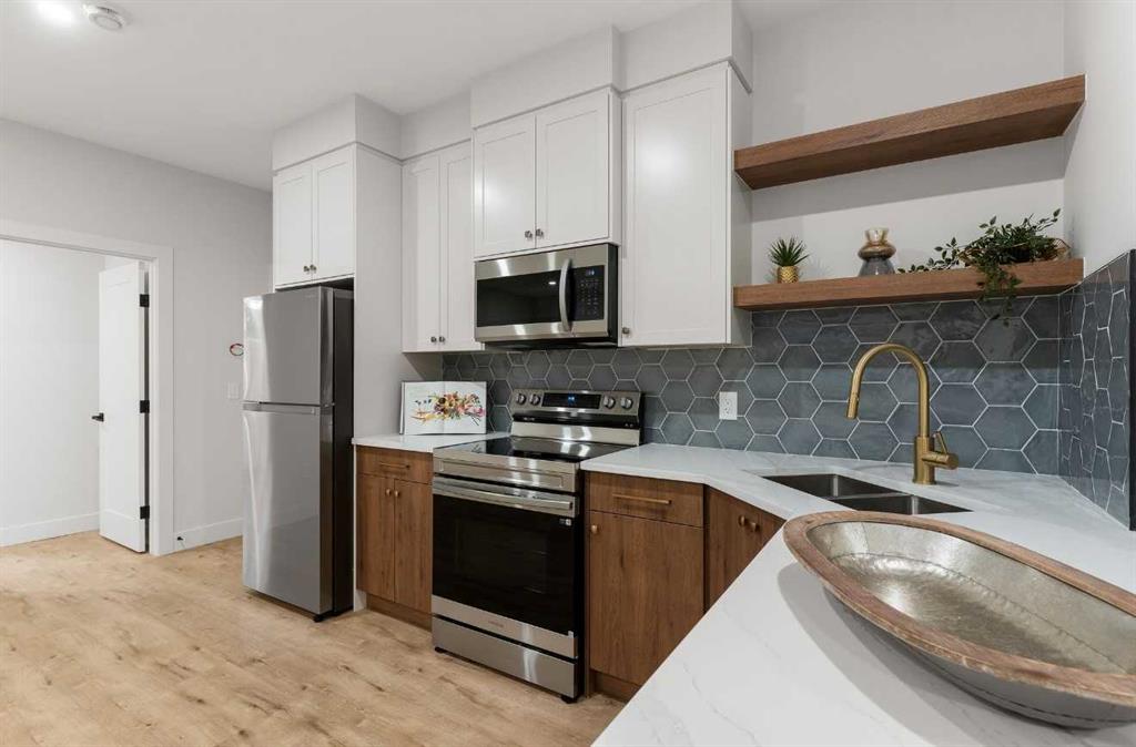 SO MANY UPGRADES!! ~ Welcome to the epitome of urban elegance!! Construction is now complete on this stunning semi-detached inner city infill nestled in a charming and highly sought after inner city community. As an added advantage – this home comes with a LEGAL BASEMENT SUITE (pending final approval and permits from the City of Calgary), which provides an excellent opportunity for additional income or an ideal space for hosting guests!! Located in the heart of the city, this residence offers the best of both worlds – a tranquil neighbourhood setting, while being in close proximity to the vibrant pulse of downtown life, local shops, parks and schools. Designed with meticulous attention to detail, this luxury home boasts a contemporary aesthetic. Upon entry you will appreciate the open floor plan which is perfect for entertaining. The heart of the home is a chef’s delight! A state-of-the-art kitchen equipped with a beautiful quartz island, and striking pendant lights. Premium finishes will inspire culinary creativity. The main floor office is also an incredible addition. The patio doors at the rear of the home lead you to your backyard sanctuary where you can entertain late into the SUMMER EVENINGS. The upper bedrooms are designed for tranquility, featuring ample space, ceiling details, and large windows that invite the outdoors in. The primary, with a large walk-in closet is GORGEOUS with its elevated window line and aesthetic dormers. The ensuite rivals the prettiest spa space with it’s classic finishings, soaker tub and massive shower, with a roughed in steam system. The upper two levels are also wired for sound and the home is prepped and ready for A/C install. The lower level features a full kitchen, spacious living area, bathroom + two bedrooms at opposite ends of the home for added privacy. Enjoy the convenience of being just moments away from popular amenities, entertainment options, and a quick drive out to the mountains. With unrivalled finishings this home is not one to miss!!