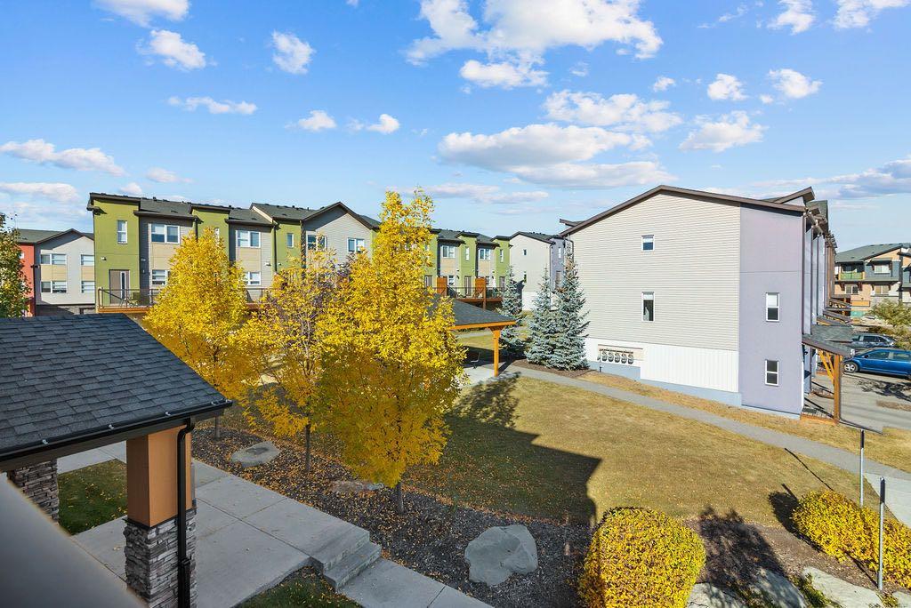 Welcome to this beautifully maintained and stylish 2-bedroom townhouse in the desirable community of Baysprings, Airdrie. Offering 820 sq ft of thoughtfully designed living space, this unit combines modern finishes, functional design, a nd a bright open layout that feels warm and inviting from the moment you step inside. The spacious kitchen is the heart of the home, showcasing quartz countertops, full-height cabinetry, a subway tile backsplash, stainless steel appliances, and a large central island with seating perfect for morning coffee or entertaining friends. The open-concept living and dining area is filled with natural light from the large windows and flows seamlessly to the private balcony, an ideal spot to BBQ or relax outdoors. Both bedrooms are generous in size with ample closet space, while the 4-piece bathroom features contemporary finishes and convenient access to the in-suite laundry area. Vaulted ceilings add a sense of openness and style, while the neutral palette complements any décor. This pet-friendly complex offers assigned parking and is perfectly located close to walking paths, playgrounds, schools, and shopping. With quick access to major routes, this is an excellent opportunity for first-time buyers, downsizers, or investors seeking low-maintenance living in a growing community. Move-in ready and sure to impress!