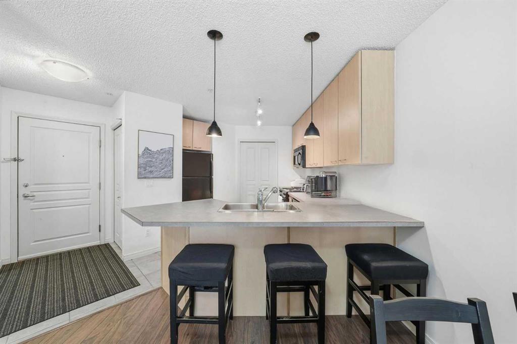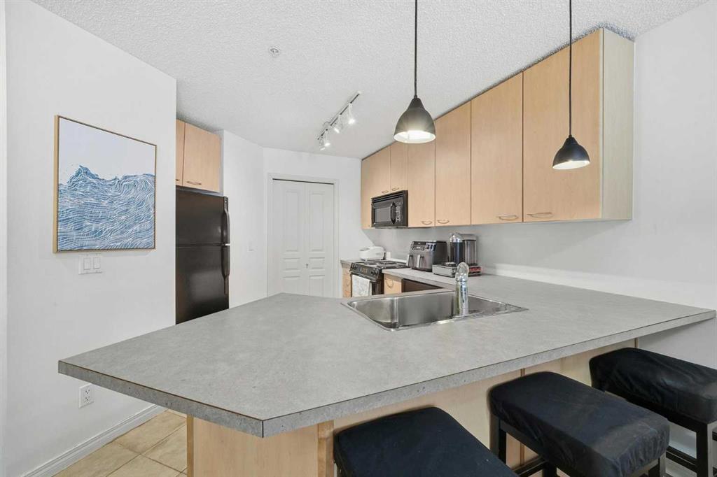 Welcome to Trafalgar House, just STEPS FROM MOUNT ROYAL UNIVERSITY, and minutes to Marda Loop, North Glenmore Park, public transit, and a quick commute downtown. Whether you’re a first-time buyer, student, or looking for a solid investment, this 1-BEDROOM + DEN unit offers real value in a well-desired area. Inside, you’re greeted by a functional open-concept layout that actually makes sense. The living room is bright and inviting, complete with a cozy gas fireplace for those colder Calgary evenings. The kitchen offers plenty of cabinet and counter space, a convenient breakfast bar, and a clean black appliance package that ties it all together.