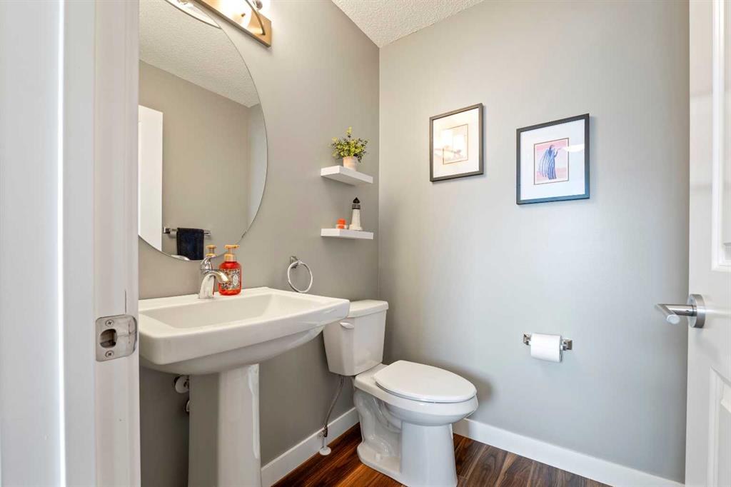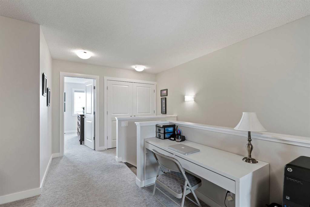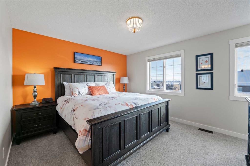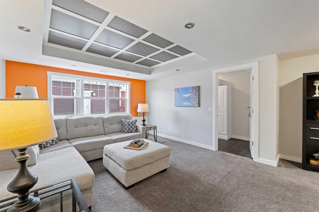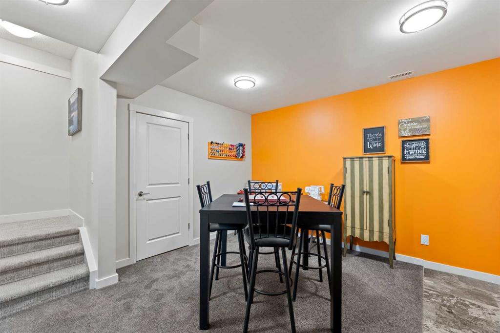 Welcome to 143 Baysprings Terrace! This Brookside built home with a fully developed WALKOUT basement is sure to impress from the moment you arrive. As you approach, you’re welcomed by a large west-facing porch, the perfect spot to relax after a long day and watch the setting sun. Step inside to soaring 9-foot ceilings, abundant natural light, and upgraded laminate flooring throughout the main level. The spacious dining area flows seamlessly into the living room and onward to the chef’s kitchen, featuring quartz countertops, a massive central island, a coffee bar, and ample cabinetry with soft-close drawers. A convenient two-piece bathroom and access to the second-level deck with a gas line complete this floor. Upstairs, you’ll find a highly functional layout with two primary bedrooms, each offering a walk-in closet and a private four-piece ensuite. Separating the bedrooms is a generous bonus/family room with a dedicated computer station, along with a conveniently located laundry area. The fully finished walkout basement is designed for entertaining, boasting two separate games/TV areas and a stylish dry bar. A dedicated storage room and a functional mudroom with custom built-ins provide access to the fully fenced backyard, complete with low-maintenance artificial turf. The yard leads to an oversized double detached garage with space for two vehicles. Additional highlights include central air conditioning and underground sprinklers. Located in the best self managed town home complex in Airdrie. Enjoy nearby paved waterfront walking paths, summer paddleboarding, and winter skating or hockey on the Canals. Conveniently located within walking distance of parks, playgrounds, Nose Creek School (K–4), shopping, dining, and medical offices. Book your showing today!