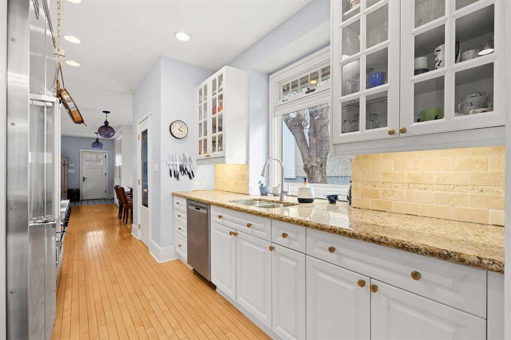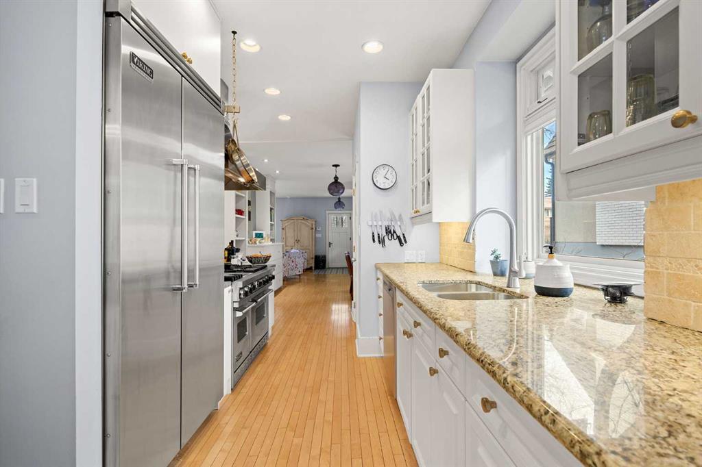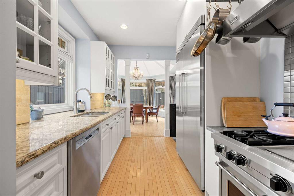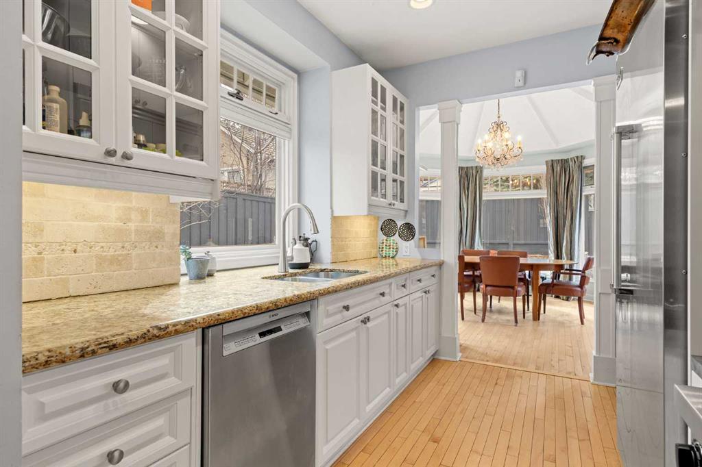 Open House Saturday March 28, 12pm – 2pm. Nestled on a quiet and meandering street in the heart of Scarboro, this Arts and Crafts bungalow reflects the charm of the community with its inviting front porch and graceful details. With only 300 homes, Scarboro offers welcoming neighbours and a close-knit community feeling. Inside, the home has been lovingly updated to enhance its original character, while offering a newer roof, electrical and plumbing and air conditioning. Natural light pours into the home from every angle, with beautiful south exposure along the side and a sunny west facing backyard. The custom crafted front door and tiled entryway leads into a space rich with charm – featuring custom built-ins, original hardwood, the original brick column and a timeless wood burning fireplace. The thoughtfully designed kitchen is a true standout, with a 6-burner Viking gas range, Viking fridge, walk-in pantry with an original stained-glass window and the sink perfectly beneath a window. Just beyond, an opulent dining room addition is surrounded by elegant windows, making it perfect for everyday life and entertaining loved ones. Double doors lead seamlessly to the backyard oasis. Completing the main floor are two well-sized bedroom with spacious closets fit with built-ins and a 5-piece bathroom. The thoughtful design extends to the lower level offering a cozy family room, flexible living space, LED lighting, abundant storage and the perfect laundry area with a sink and hanging space. Additionally, there is a well-appointed third bedroom with large windows, custom built-ins, a walk-in closet and a 5-piece bathroom. Outside, the yard is picturesque and private with a paved stone patio area with a pergola, quaint garden boxes, raised perennial beds and even space for a trampoline. The exterior of the home has been updated with beautiful paint and a newer fence. Located just steps from it all – a stone’s throw to the dog park, Tennis Club, river walking pathways, skating rinks with firepits and the vibrant energy of downtown. Families will love being just a walk away to the beloved Sunalta School, known for its high ranking and community feel. With nearby amenities and neighbourhood social groups, this home offers a cherished way of life. A truly special opportunity to live in one of Calgary’s most treasured neighbourhoods.