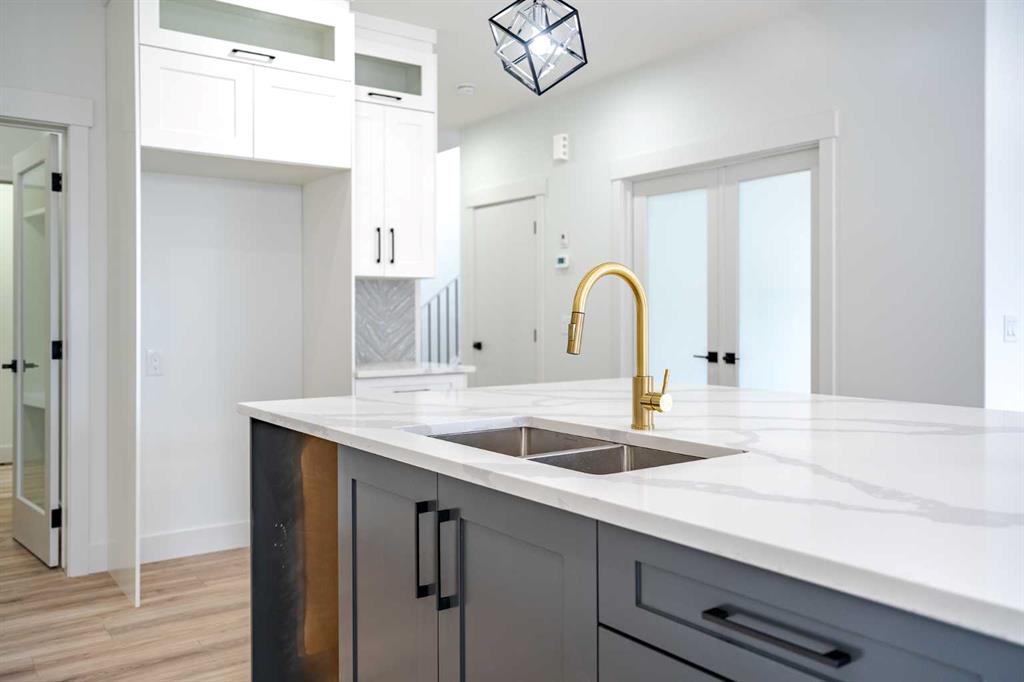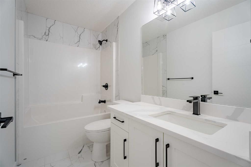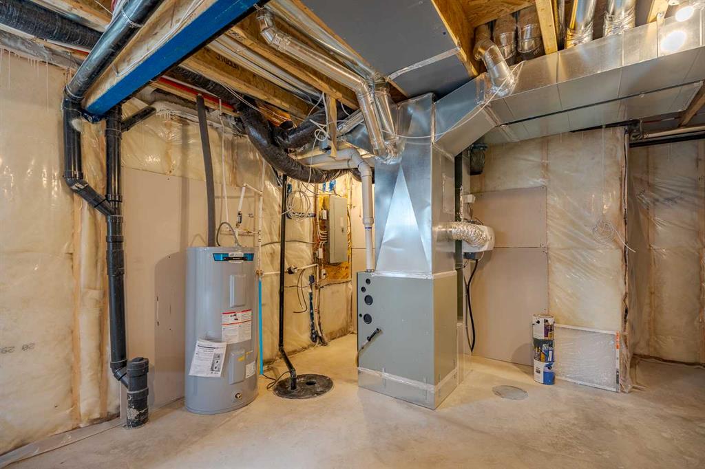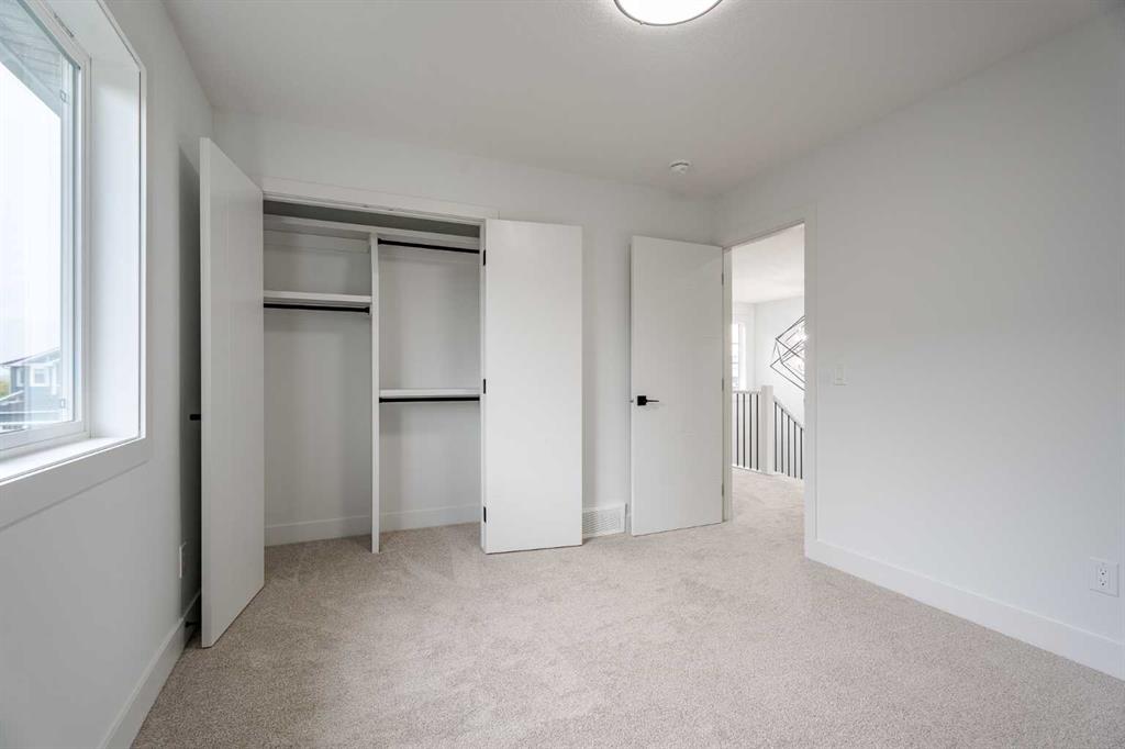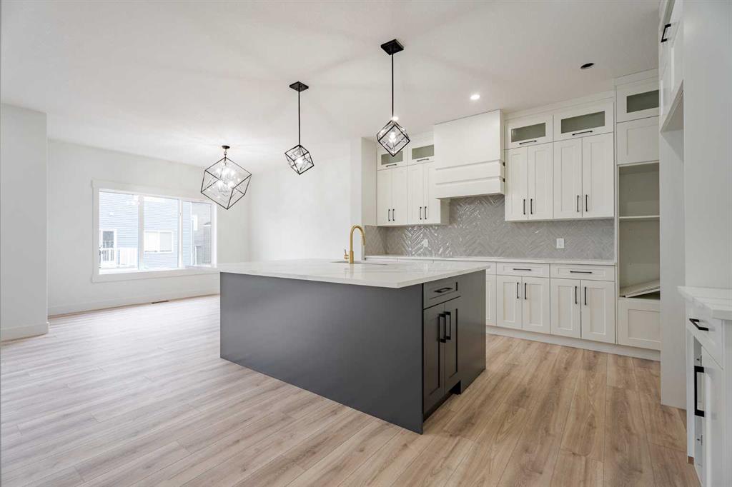 Quick Possession and Brand New with Triple Garage on a spacious lot with 51′ frontage and 120′ deep. Quick possession is available, and a Fall Special allows buyers to inquire about discount pricing to add a complete basement development. 2,372 sq.ft. two story with attached triple garage (28′ x 23′) and side access walk-up basement. Bright, open plan with spacious main level dining nook, kitchen with island and walk-through pantry (wood shelving) to spacious mud room (wood bench + shelves), family room with built-in shelves and fireplace, private Work From Home Office, two piece bath and spacious open cathedral front entry. Three bedrooms on the upper level including 15’9″ x 14′ Primary suite with raised tray ceiling and large walk-in closet (wood shelving), 5 piece Ensuite, bonus room with raised tray ceiling and fireplace, laundry room and 4 piece main bath. Bright undeveloped side access basement has high efficiency mechanical, roughed-in bath plumbing, and large windows for lots of natural light. Will be nicely appointed with ceiling height cabinets, quartz counter tops, upgraded lighting, vinyl plank, tile + carpet flooring, wood shelving in all closets, upgraded exterior and stonework. Includes GST (rebate to builder), new home warranty, rear deck with vinyl cover, front sod + tree, and $5,000 appliance allowance. Great family community with school, park and pond nearby, recreation facilities, and a quick commute to Airdrie, Balzac Mall, Calgary, or hospital nearby at Didsbury. A little drive, a lot of savings!
