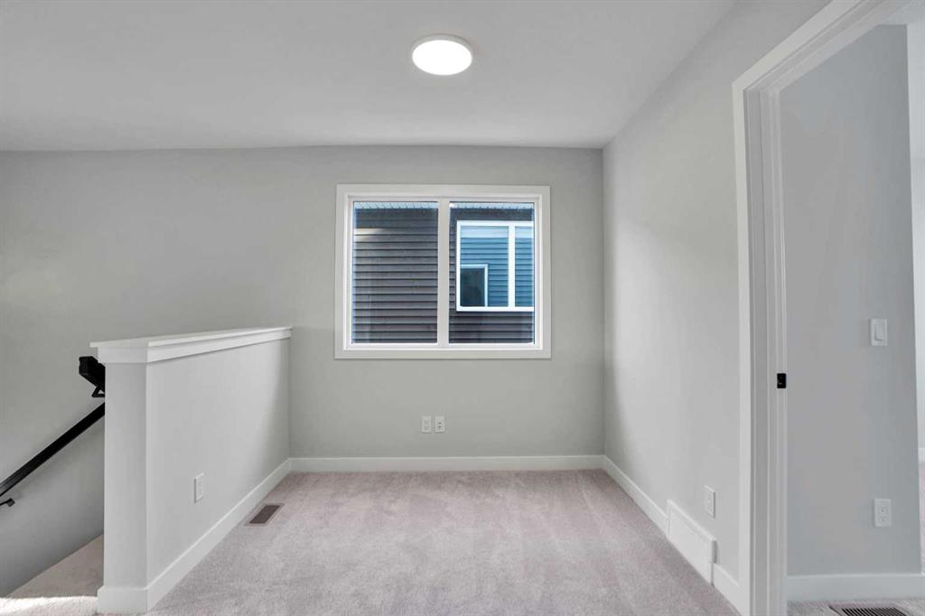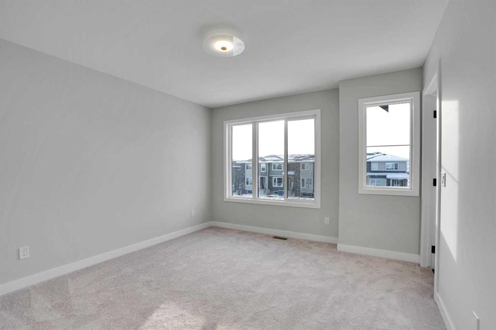 Discover modern elegance in the highly sought-after community of Cobblestone Creek! This brand-new, end-unit townhome offers over 1,525 sq. ft. of thoughtfully designed living space, perfect for families, first-time buyers, or those looking to downsize without compromise.The open-concept main floor impresses with 9’ ceilings, expansive windows for maximum natural light, and a seamless flow between the spacious living area and dining zone. The chef-inspired kitchen is a standout, featuring quartz countertops, a large central island, stainless steel appliances, and sleek cabinetry—ideal for both daily life and entertaining. Upstairs, retreat to a luxurious primary suite complete with a private ensuite and a generous walk-in closet. Two additional well-sized bedrooms offer flexibility for guests or a home office, complemented by the convenience of upper-level laundry. A separate side entrance leads to the basement, providing excellent potential for future development. Outside, you’ll find a detached double garage (under construction) with paved lane access. Enjoy a low-maintenance lifestyle with NO CONDO FEES in a growing neighborhood close to schools, parks, and shopping. With quick access to major routes, commuting to Calgary or heading to the mountains is a breeze. Quick possession available—move in today!