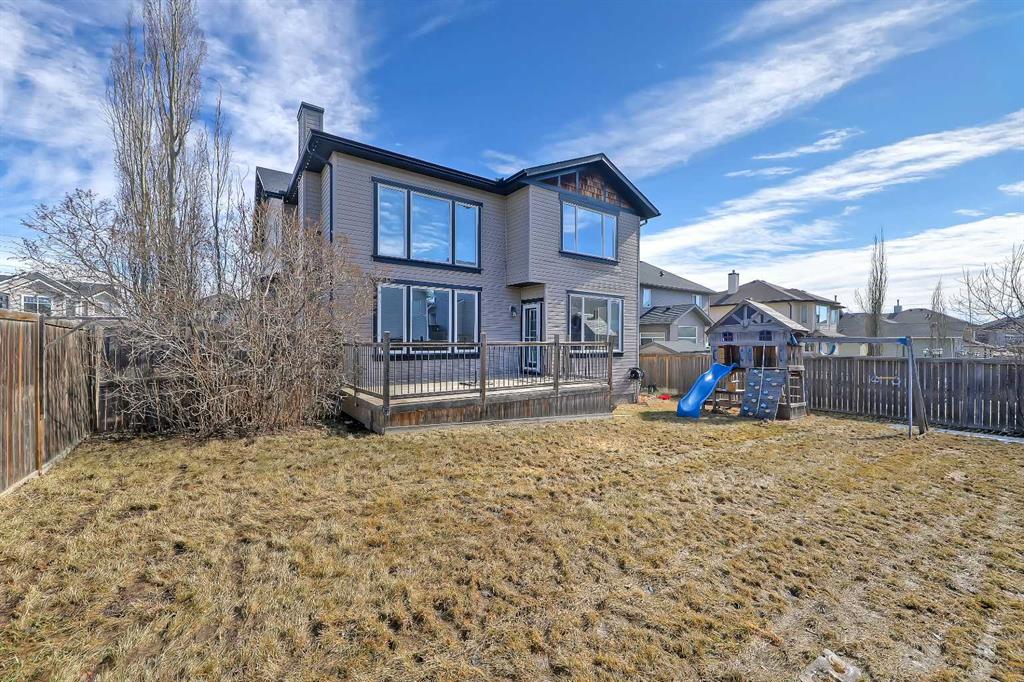 Located on a corner lot with a West-facing backyard in the established lakeside community of Chestermere, this spacious two-storey home features over 3,900 sq. ft of total living space, including 6 bedrooms (4 beds up!), a fully developed basement, and an enormous triple heated attached garage with epoxy floors! This home is ideal for large or multi-generational families, professionals working from home, or buyers seeking generous space both inside and out. The main floor features 9-ft ceilings and tiled flooring throughout. A bright front office with double glass doors and LVP flooring provides a dedicated workspace. The open living area features an 18-ft vaulted ceiling and a gas fireplace with a tile surround and mantel. A large formal dining room with a feature ceiling detail and hidden lighting sits nearby. The kitchen includes maple cabinetry, stainless steel appliances, black quartz countertops, a large walk-in pantry, and a secondary eating area overlooking the backyard. A discreet powder room and a dedicated laundry room with built-in cabinetry and sink complete the main level. From here, easily access the oversized heated triple garage with epoxy flooring. Upstairs, LVP flooring continues throughout. The spacious primary bedroom features a 6-pc ensuite with a tiled walk-in shower with a bench and dual shower heads, a jetted soaker tub with a waterfall feature, dual vanities with a built-in makeup station, a skylight, and a separate water closet. The ensuite connects to a large walk-in closet with built-in shelving. Three additional bedrooms, a full bathroom, a large bonus room, and extra linen storage complete the upper floor. The fully finished basement expands the home’s versatility with a large recreation room and a wet bar featuring quartz countertops and a full-height tile backsplash. Two additional bedrooms with walk-in closets and large windows are located on this level, along with a full bathroom featuring a custom-tiled shower with body jets, a rainfall showerhead, and a glass enclosure. Mechanical features include two furnaces, two hot-water tanks, and two air-conditioning units. The sunny West-facing backyard includes a large deck with a gas line for a BBQ. Chestermere offers a unique lakeside lifestyle just minutes from Calgary. Residents enjoy year-round access to Chestermere Lake, including beaches, walking pathways, water sports, and winter recreation. Families benefit from nearby schools, including Prairie Waters Elementary School and Chestermere Lake Middle School. Chestermere Public Library is just close by. Everyday amenities, including grocery stores, restaurants, and services, are available within the city, while quick access to Calgary makes commuting simple. Multiple parks, playgrounds, and recreational facilities throughout the community support an active and family-friendly lifestyle.