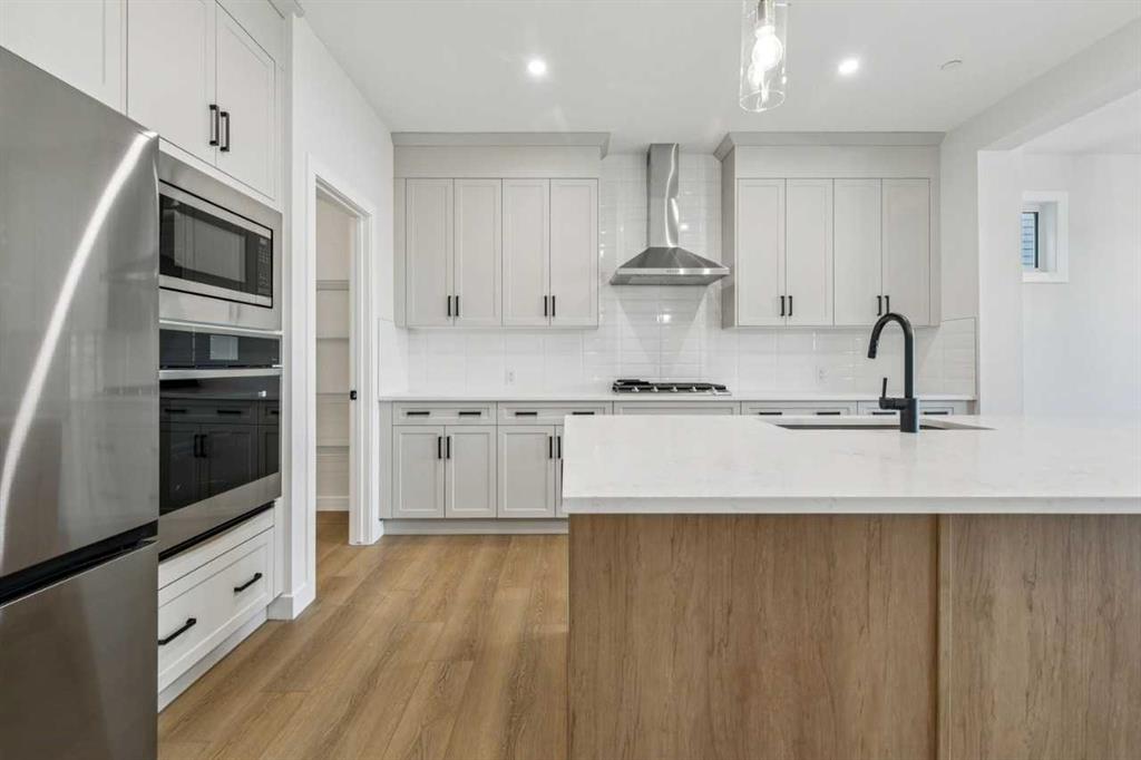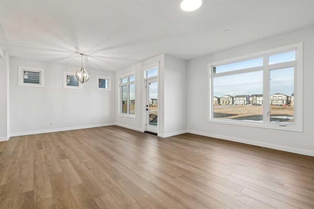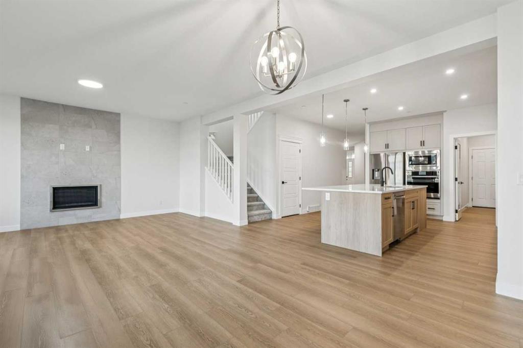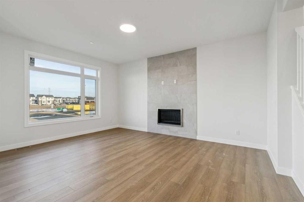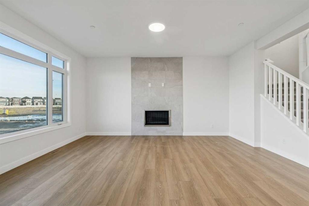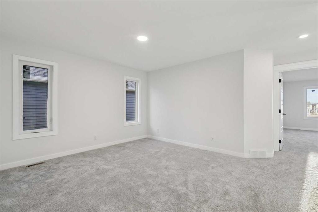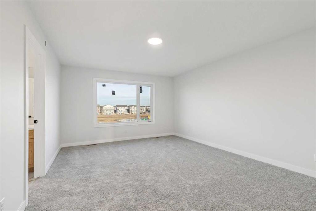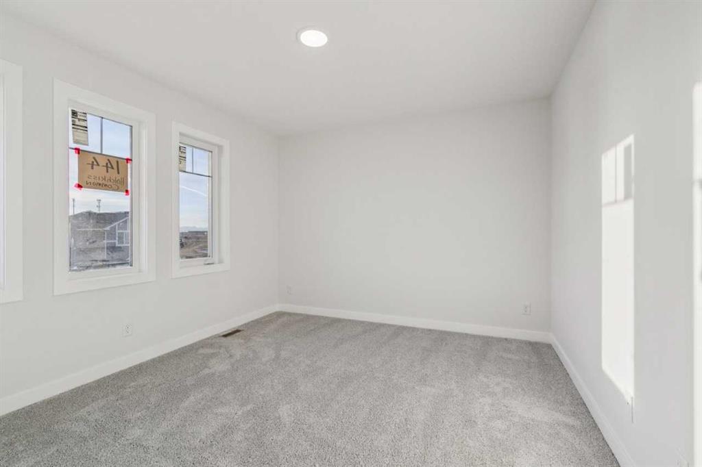Welcome to The Sutton by NuVista Homes, located at 144 Hotchkiss Common SE in the growing community of Hotchkiss. This well-appointed 2,554 sq ft home offers 4 bedrooms and 2.5 bathrooms with thoughtful upgrades throughout. The main floor features 9’ ceiling heights, luxury vinyl plank flooring, a flex room, and a bright open-concept great room with a natural gas fireplace finished with tile to the ceiling. The kitchen includes quality cabinetry with taller upper cabinets, quartz countertops, a walk-through pantry, and excellent flow for everyday living and entertaining. Upstairs, the spacious primary bedroom features a five-piece ensuite and walk-in closet, complemented by three additional bedrooms, a full bathroom, a central bonus room, and a laundry room with built-in shelving. A side entrance, 9’ foundation, two extra feet of garage width, and basement rough-ins provide excellent future development potential. Photos are representative.