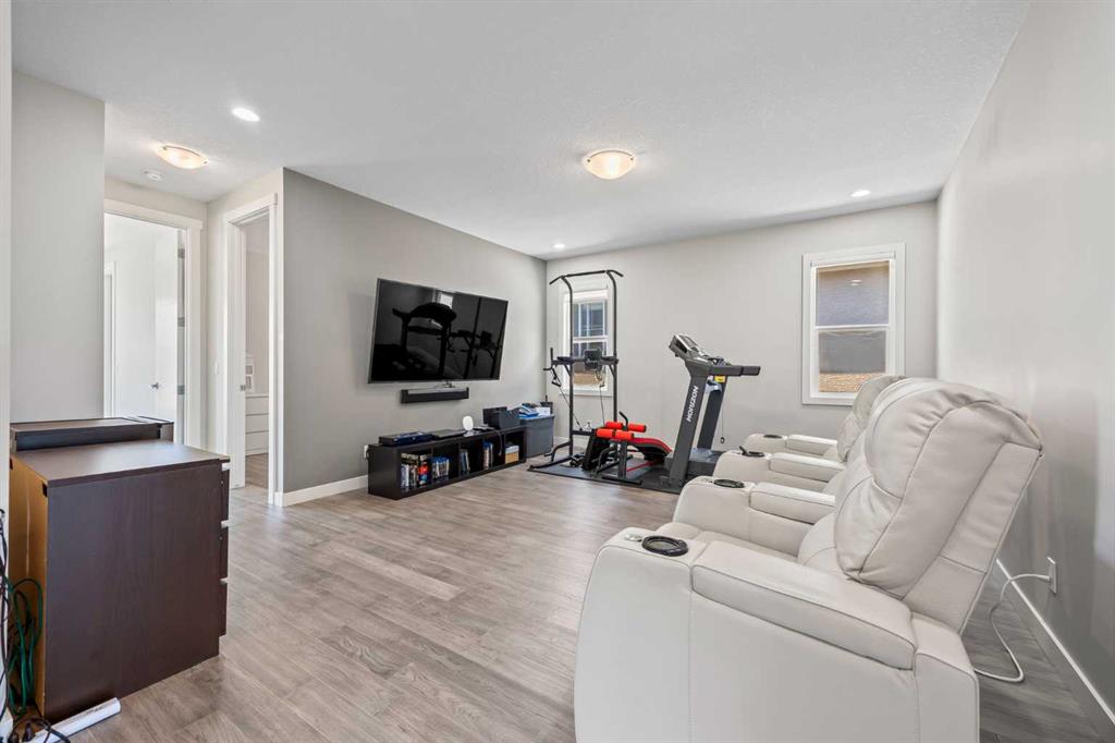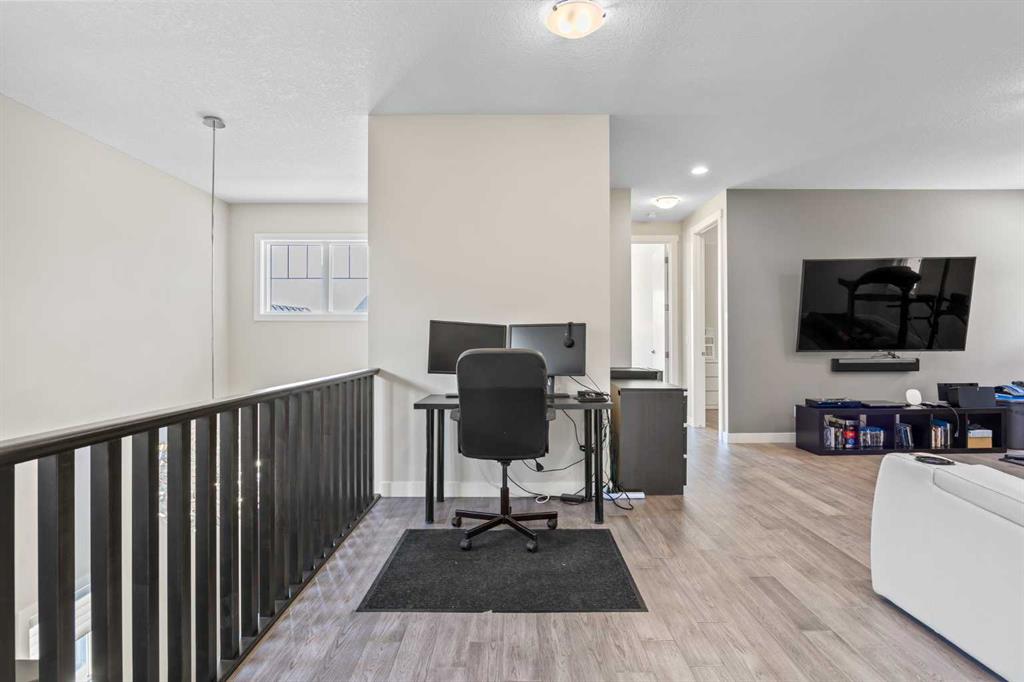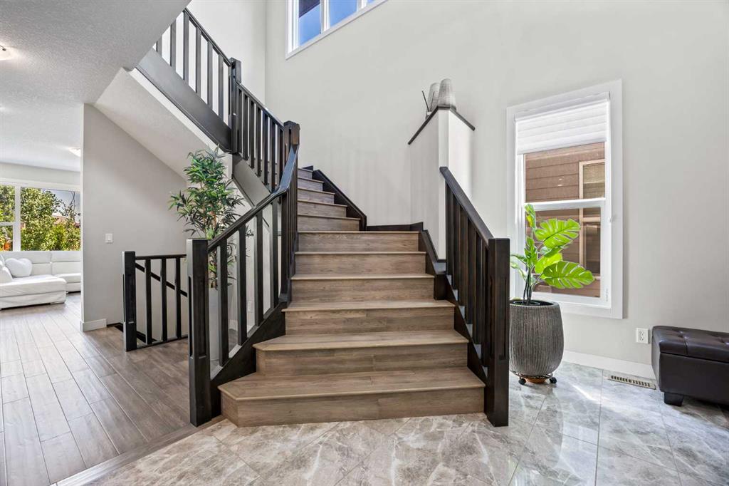 Welcome to 144 Legacy Mount SE an exquisite 2824 sq. ft. detached home in one of Calgary’s most sought-after and family-friendly communities: Legacy. Ideally located across from prestigious Legacy Estate Homes and backing onto a tranquil green space with a playground, this stunning property seamlessly blends elegant design, upscale finishes, and everyday functionality to create the perfect forever home. Step inside and experience a true sense of grandeur. From the moment you enter, you’re greeted by 9-foot ceilings, upgraded 8-foot doors, and a show-stopping curved staircase with stylish railings and an open-to-below layout, all illuminated by an abundance of natural light streaming through oversized windows. Throughout the home, hardwood and tile flooring ensure a carpet-free, low-maintenance lifestyle with timeless appeal. At the heart of the home is a two-toned designer kitchen that’s both beautiful and functional. It features ceiling-height white cabinetry, quartz countertops, under-cabinet lighting, and premium appliances including a gas stove, chimney-style hood fan, wine fridge, and a fridge with a water line. Thoughtful touches like hidden sponge storage, a built-in soap dispenser, and strategically placed electrical outlets highlight the attention to detail. The massive central island and walk-in pantry provide exceptional storage and prep space, while the kitchen flows effortlessly into the dining and living areas, offering sweeping views of your private backyard oasis. The cozy living room is anchored by a modern gas fireplace and features built-in speakers, perfect for relaxed nights or entertaining. Step outside to enjoy your 2-tiered cement deck with a BBQ gas line—the ultimate summer setup. Finishing off the main level is a bright home office with double French doors, ideal for remote work, and a spacious mudroom with built-in lockers, leading to the finished double garage, complete with smart storage solutions. Upstairs, a central bonus room smartly separates the luxurious primary retreat from two generously sized bedrooms, offering optimal privacy. The primary suite is a true retreat with a spa-like ensuite featuring dual vanities, ample counter space, medicine cabinet, soaker tub, stand-up shower with built-in bench and dual nooks, a private water closet, and extra linen storage. The expansive walk-in closet comes fully outfitted with custom built-ins and drawers. The two secondary bedrooms each offer walk-in closets with windows and share a beautifully appointed 4-piece bathroom. The upper-level laundry room adds everyday convenience with its utility sink, abundant counter space, lower cabinetry, and ample hanging options. Additional upgrades that are worth noting are central air conditioning, Hunter Douglas Window Coverings Throughout, Built-in Speakers, Ethernet Cat6 Cable in Every Room and Smartphone-Controlled Underground Irrigation System. Don’t miss your opportunity to own this elegant and highly upgraded home!