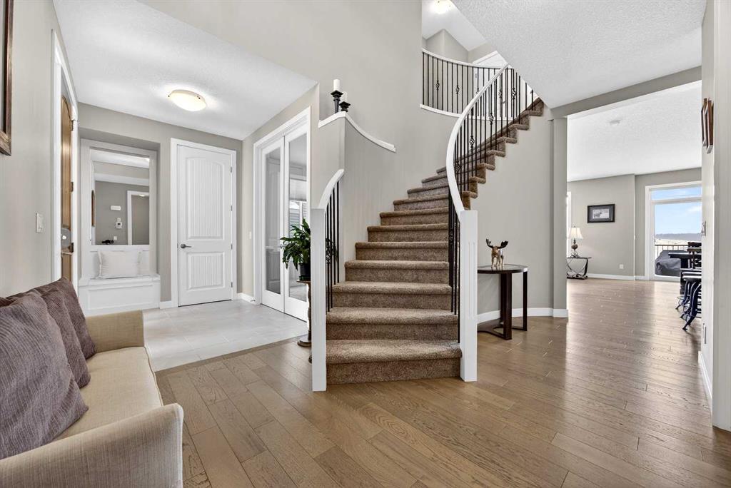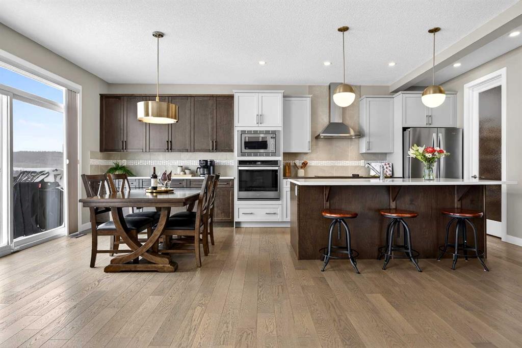 **COME JOIN US AT OUR OPEN HOUSE THIS SATURDAY FEBRUARY 21ST FROM 12-3PM**Welcome to the best value in Sunset Ridge! As you step into this beautiful home, you’re welcomed by gleaming hardwood floors and an abundance of natural light. The open-concept floor plan is perfect for entertaining and extends seamlessly to an east-facing balcony and a fenced, irrigated backyard that backs onto expansive green space—offering the privacy of no rear neighbours. The main floor features a private den with glass French doors, ideal for working from home. The chef-inspired kitchen showcases a large island with quartz countertops and bar seating, a stainless steel French-door refrigerator, and built-in microwave and oven. Extended cabinetry into the dining area provides exceptional storage, while the convenient walkthrough pantry connects the mudroom directly to the kitchen. The inviting living room features a cozy gas-burning fireplace, and a two-piece powder room completes the main level. Up the elegant curved staircase with wrought-iron spindles, is the primary bedroom This retreat offers a luxurious five-piece ensuite with dual sinks and a stand-alone soaker tub, along with a walk-through closet that leads directly to the laundry room for ultimate convenience. Two additional bedrooms, a generous bonus room and a four-piece bathroom complete the upper floor. The fully finished walkout basement is designed for entertaining, featuring two additional bedrooms, a four-piece bathroom, and beautiful views of the backyard and surrounding green space. Additional highlights include a double attached garage and central air conditioning. Ideally situated close to schools, parks, scenic walking trails, and shopping, this exceptional home combines comfort, style, and an unbeatable location.