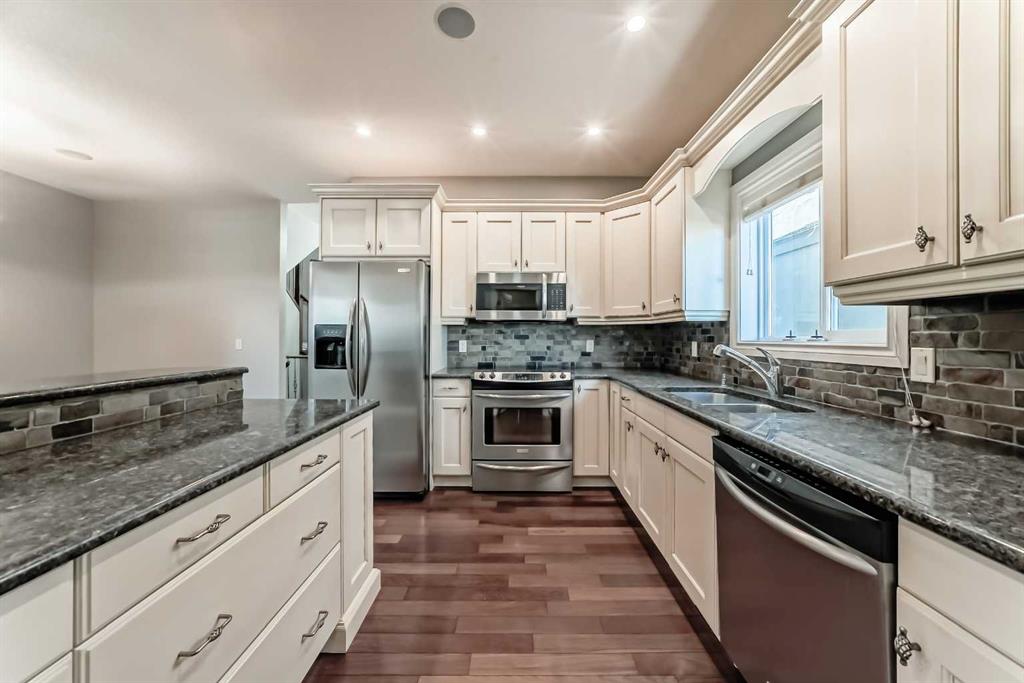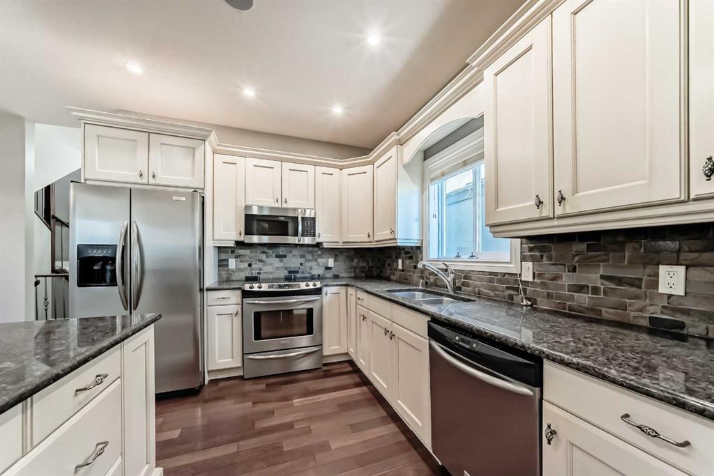Outside, enjoy a private yard, rear deck with projector setup and gas fireplace, and a double detached garage. Ideally located just minutes to downtown, with quick access to shopping, schools, transit, and major routes.