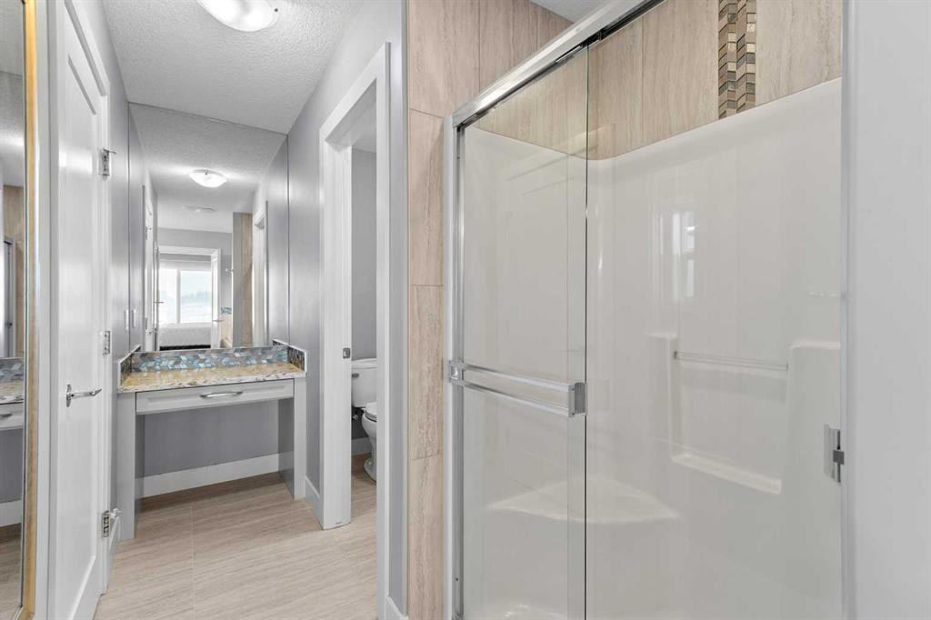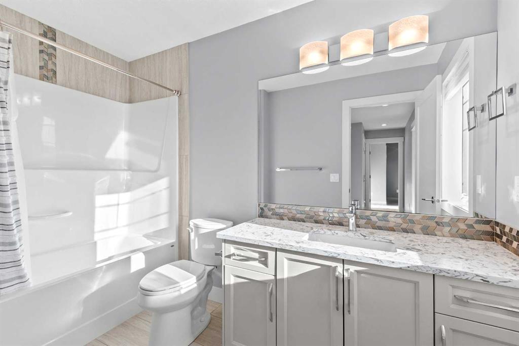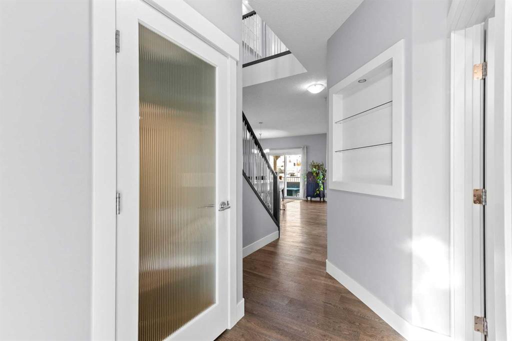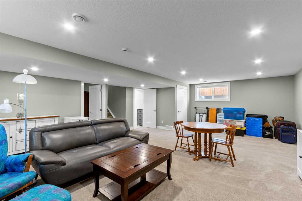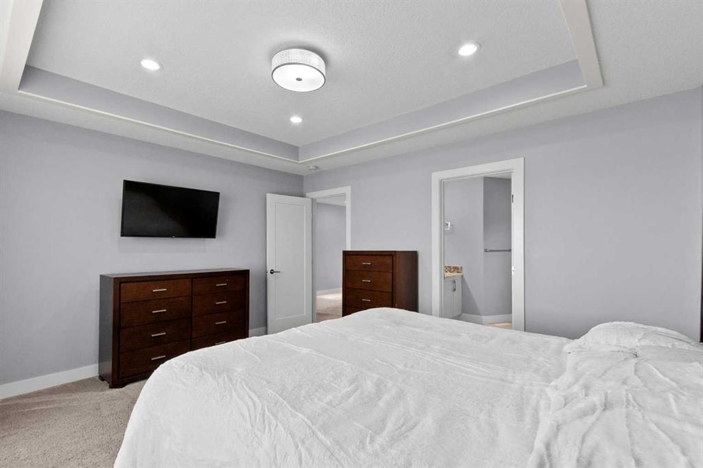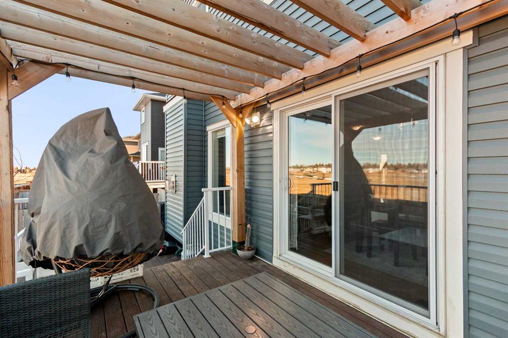 Welcome to this fully developed, 4 bedroom home backing onto a greenspace, located in the family-friendly community of Carstairs, known for its small-town charm, great schools, and easy access to everyday amenities. A large front porch invites you inside to a spacious foyer, leading into a bright, open-concept main floor. The large living room with a gas fireplace and engineered hardwood floors creates a warm, welcoming space for relaxing or entertaining. The chef’s kitchen offers a generous island with ample storage, gas stove, and a walk-through pantry that connects seamlessly to a large mudroom. The spacious dining area opens onto a private deck where you can enjoy peaceful views of the greenspace behind. A main floor office and 2-piece powder room complete this level. The upper level offers 3 generously sized bedrooms, including 2 large secondary bedrooms perfect for a growing family. You will also appreciate the convenience of upstairs laundry and a spacious bonus room complete with a second gas fireplace. The primary suite is a true retreat, featuring a 5-pc ensuite with a makeup area and a large walk-in closet. The fully developed basement adds even more living space with a very large bedroom, generous family room, and an additional bathroom, ideal for guests or teens. Central air conditioning will ensure summer comfort. Set in a welcoming community and backing onto greenspace, this is a home you will enjoy for years to come.
