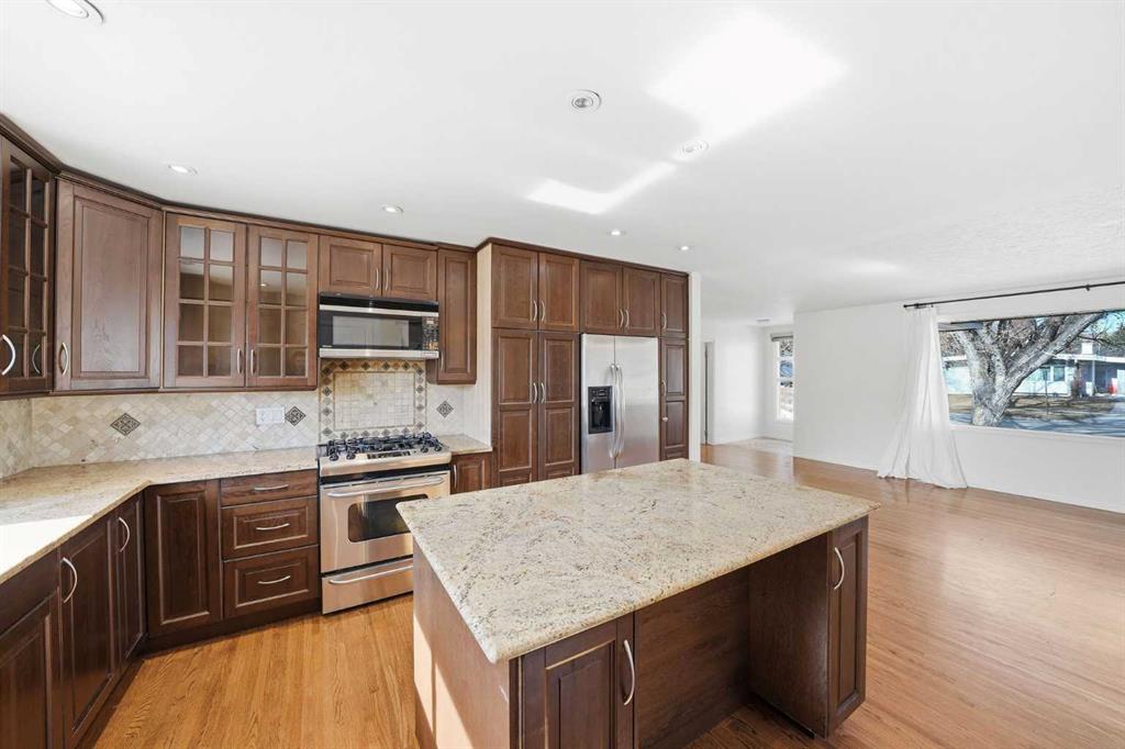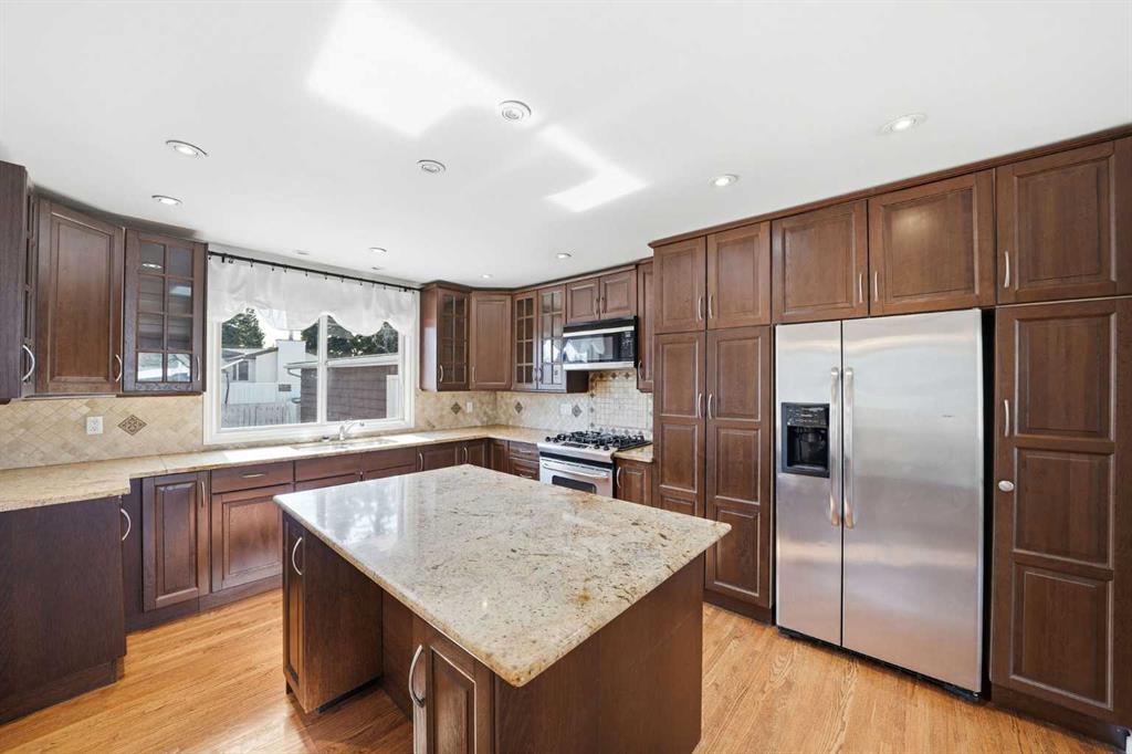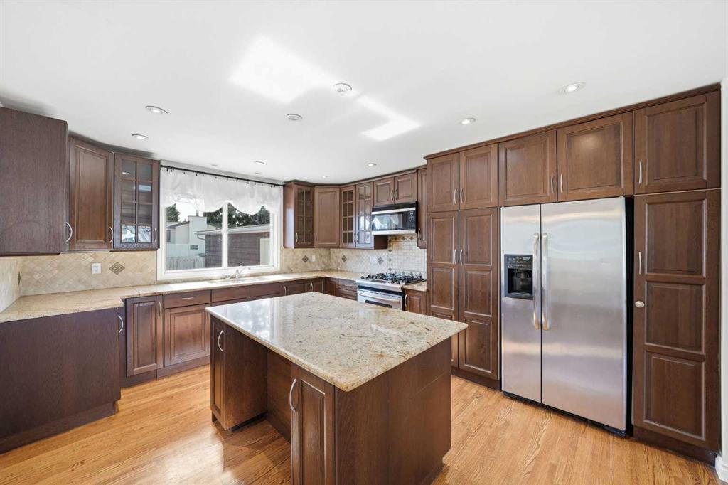Offering over 2,500 sq. ft. of developed living space, this well maintained bungalow presents a functional layout with flexibility for families and investors alike. The main floor features three spacious bedrooms, two full bathrooms, and a bright kitchen complete with upgraded countertops, stainless steel appliances, a gas range, and quality cabinetry. Hardwood flooring throughout the main living areas adds warmth and continuity.