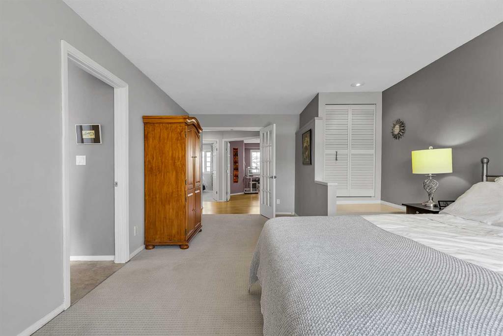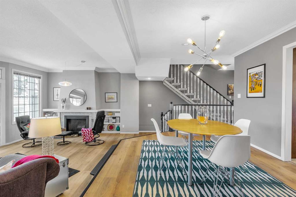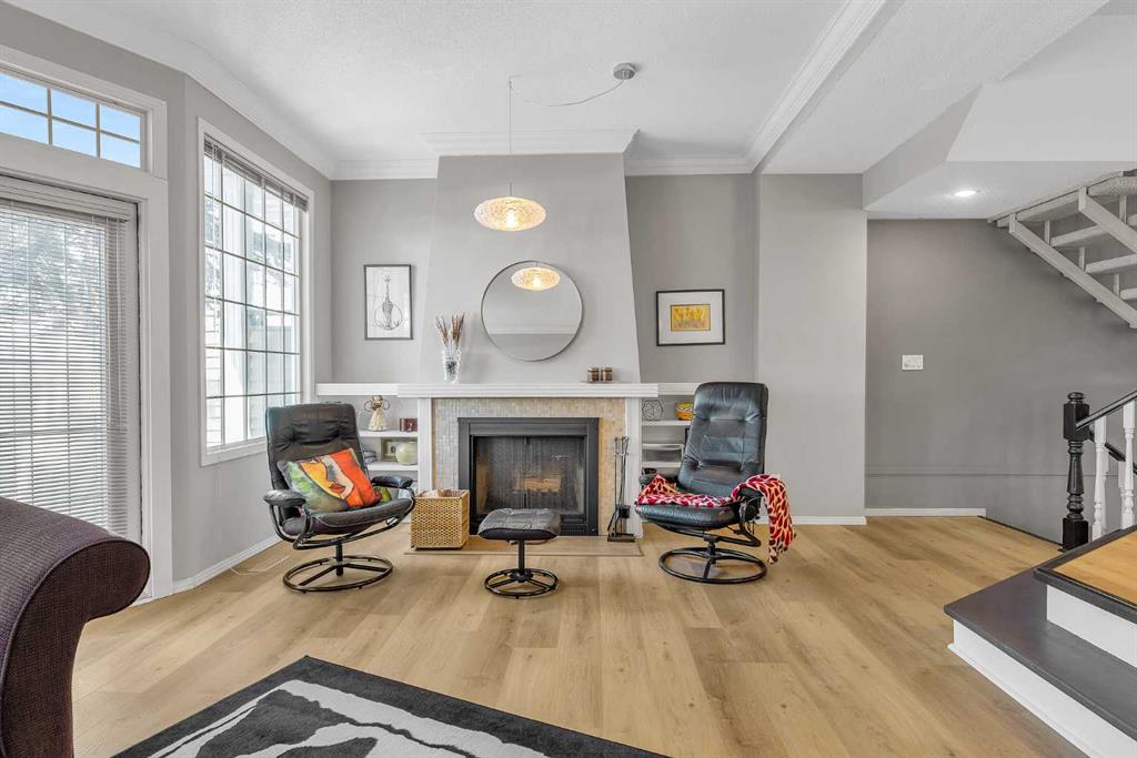 Enjoy spacious living in sought-after Varsity with this beautifully updated 3-bed , 2.5-bath townhouse. You will find the perfect blend of comfort and convenience in an unbeatable location, with over 2,100 sq ft of living space across three finished levels. A spacious foyer with a large closet and laundry, storage, and mechanical room. Upstairs, the bright, open-concept living and dining area offers a seamless flow into a large, private patio with a gas line for BBQ—ideal for indoor/outdoor living during the summer. An inviting living room featuring a wood-burning fireplace with a gas starter and custom built-in cabinetry. Large windows allow an abundance of natural light to pour in. Luxurious vinyl plank flooring flows through the main living areas, complemented by updated modern lighting and newer windows throughout (except living room bay window is original). French doors lead to a west-facing deck with no rear neighbours—perfect for relaxing or entertaining under the shade of mature trees. The kitchen offers ample cabinetry, a pantry, updated stainless steel appliances including a brand new dishwasher, gas stove with 220 V outlet , and a large window over the sink that brings in plenty of morning sunshine. A casual eating area sits adjacent, with a conveniently located bathroom on the main floor. Upstairs, the spacious primary suite features French doors, a Juliet balcony, a walk-in closet, and an updated ensuite with a jetted tub. The second bedroom is generously sized, while the third bedroom comes with French doors, making it ideal for a home office or guest room. A second full bathroom completes the upper level. The heated tandem double garage accommodates two vehicles plus a driveway for an extra parking. Additional features: triple-pane windows for the upper west windows, newer patio doors, newer furnace, hot water heater (2013), and all hinges are soft close. Landmark Estates features serene walking paths, picturesque ponds, and charming seating areas, creating a tranquil retreat in the heart of the city. Pets friendly with board approval (Units can house a maximum of: one (1) dog; one (1) dog and one (1) cat; or two (2) cats). Ideally located within walking distance to Market Mall, the University of Calgary, and public transit, and just minutes from Foothills Medical Centre, Alberta Children’s Hospital, and the scenic Bow River Pathway System. A rare opportunity to own a spacious townhome in one of northwest Calgary’s most convenient locations. Call to book your private viewings today!
